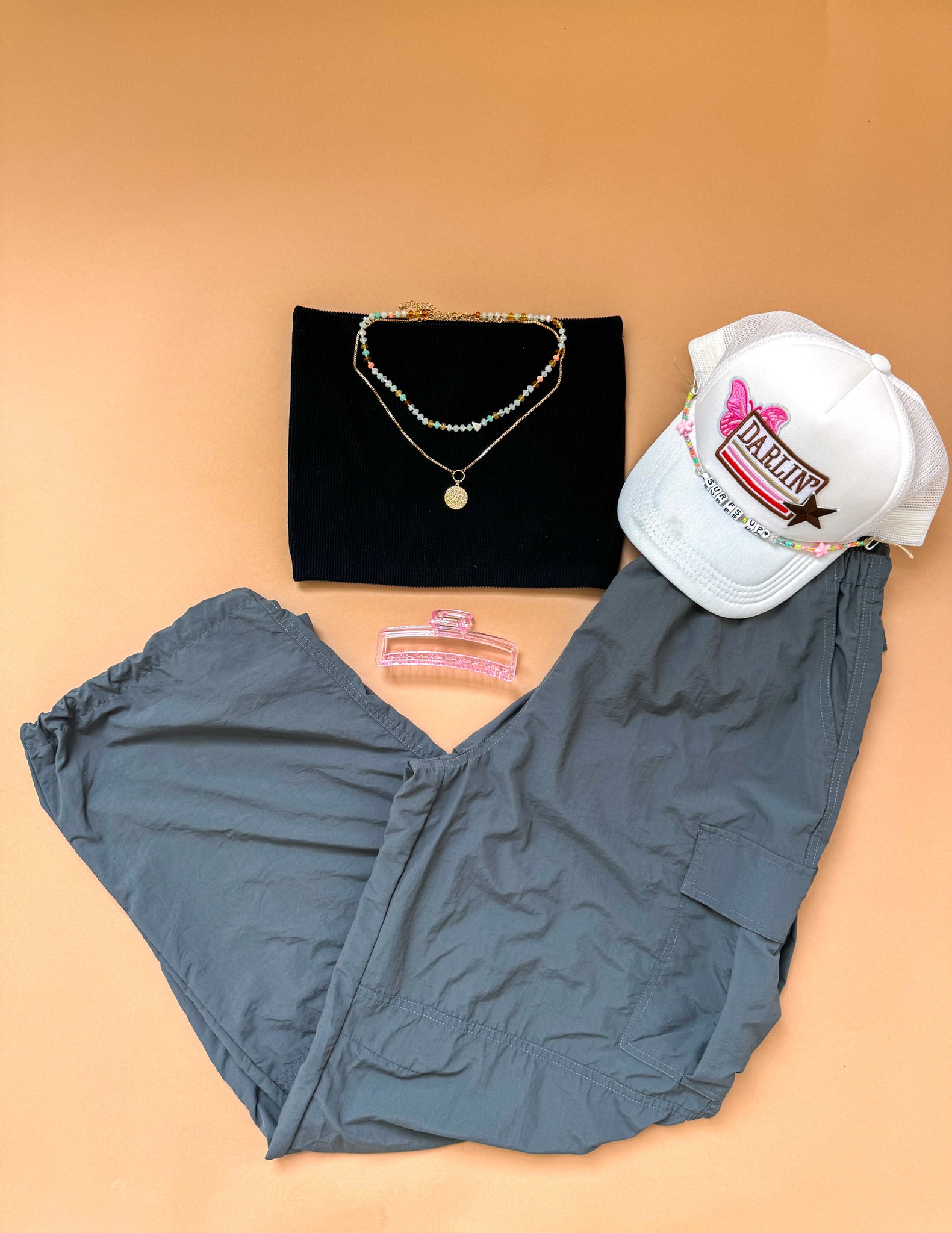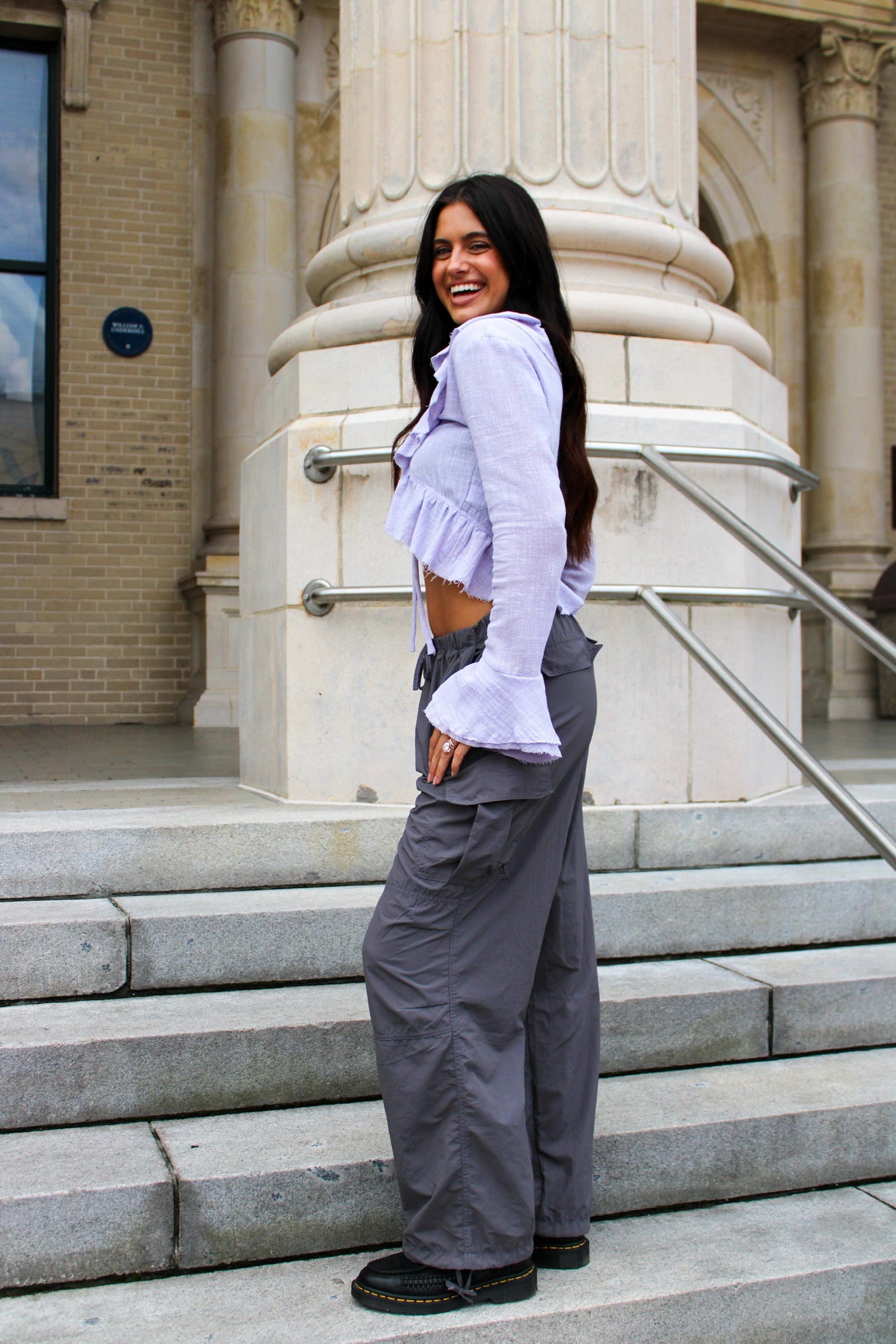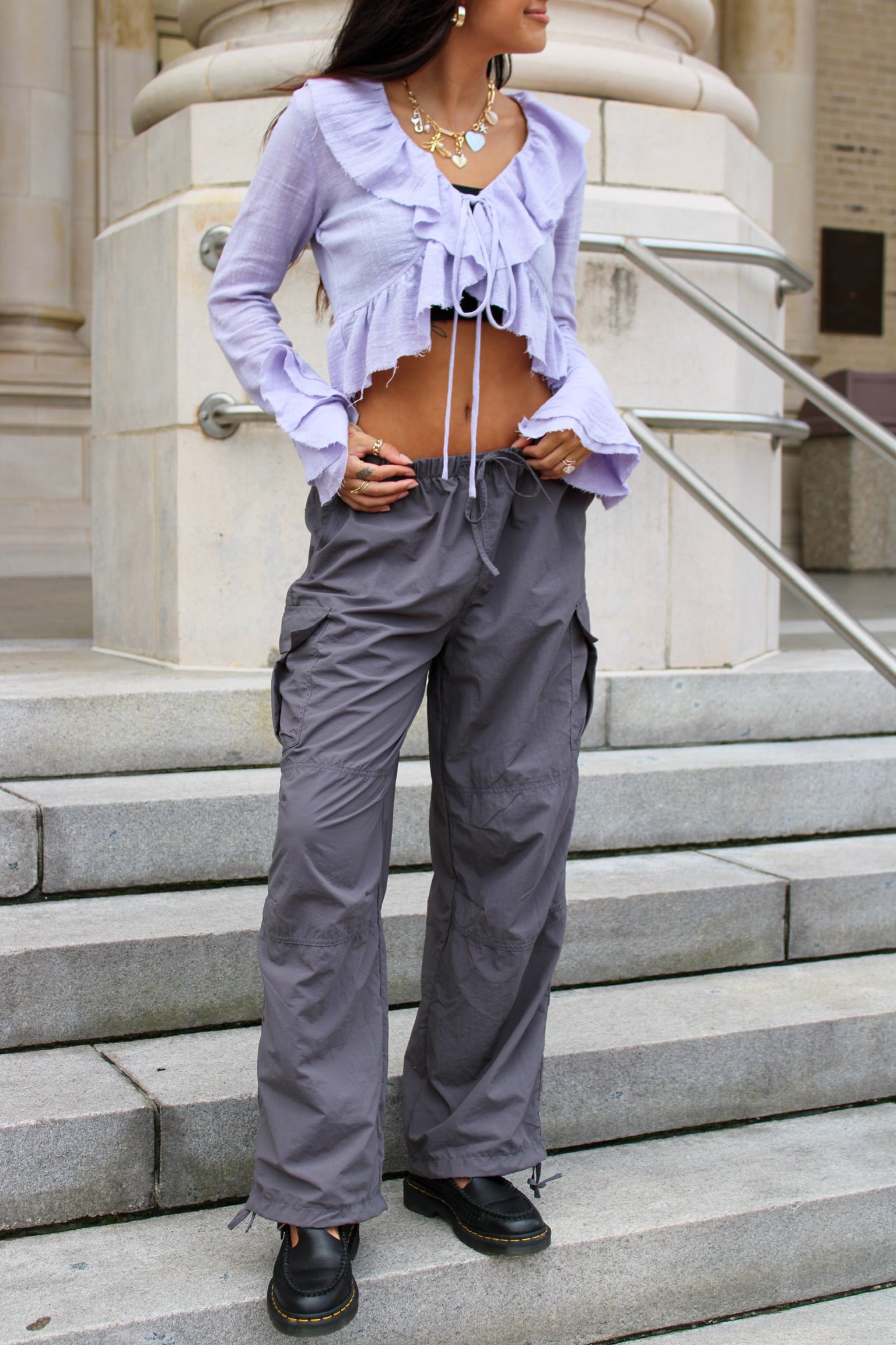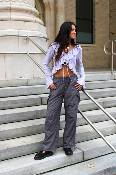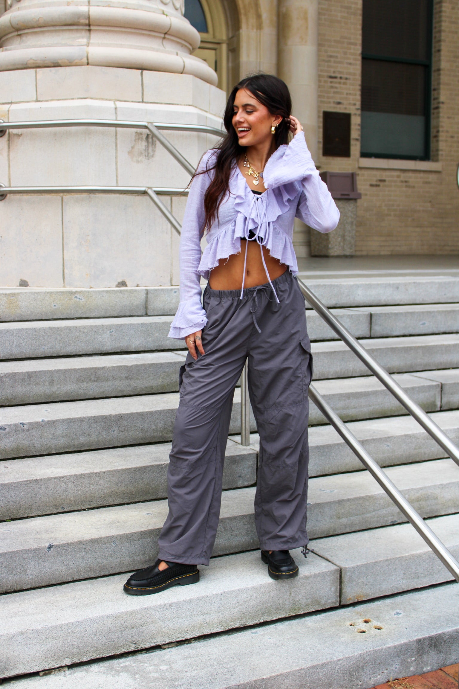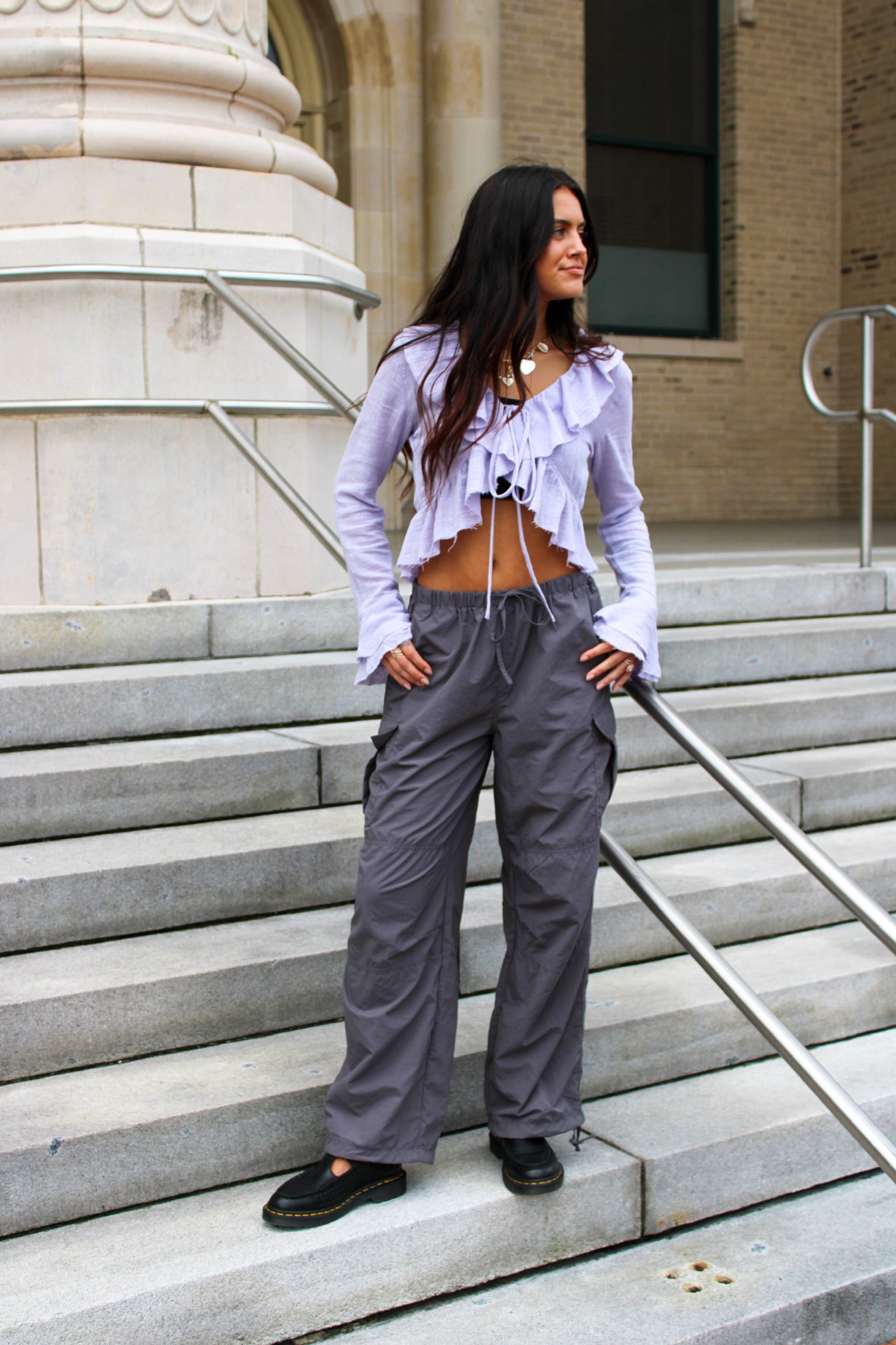 Our Ziggie Pants feature a swishy parachute texture, elastic drawstring waist, mid/low rise, adjustable elastic cinch ankles (make them wide leg or jogger!) and a super comfy fit. Wear with a corset tank and heeled boots for an edgy look or pair with sneakers and a tee for a comfy vibe.