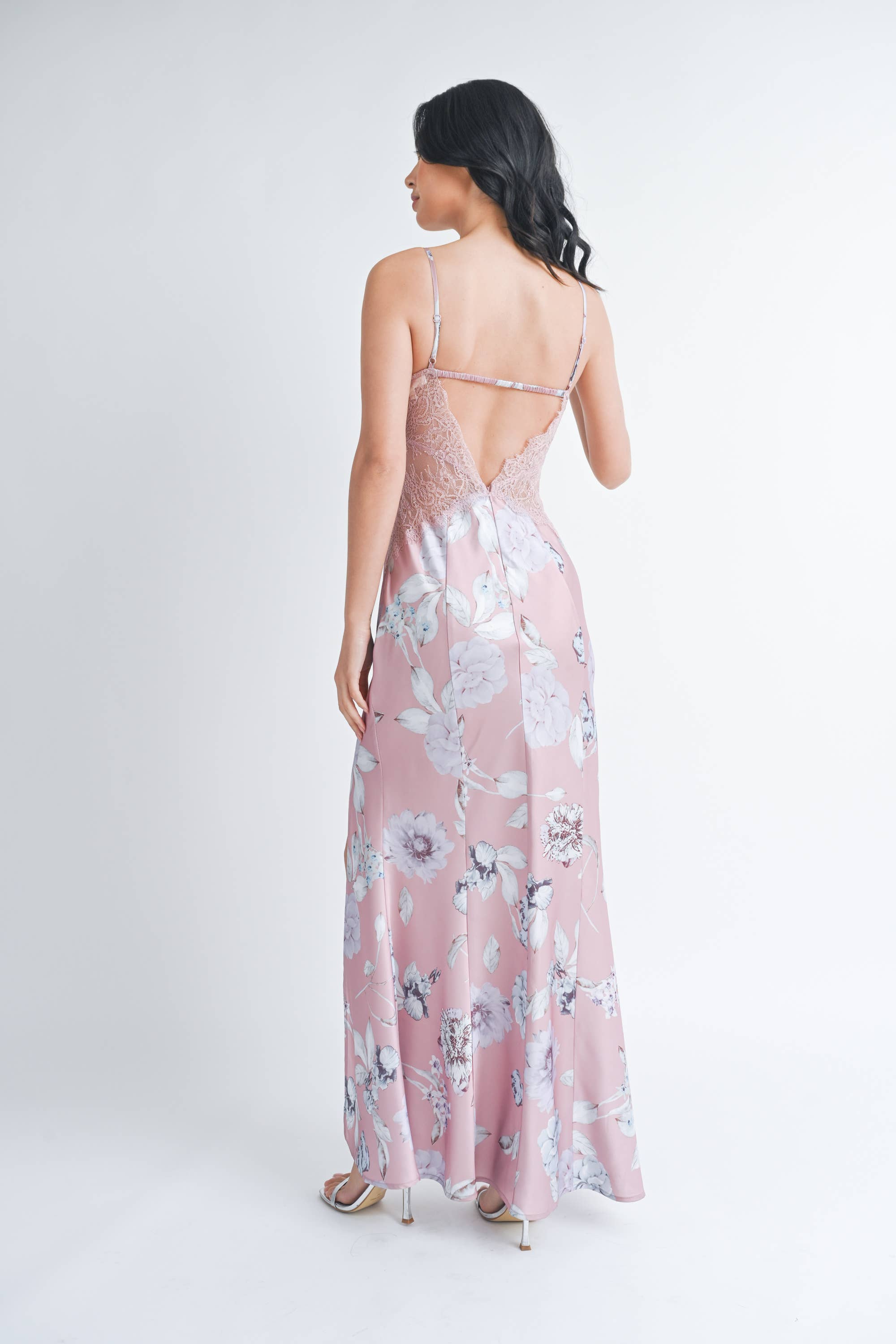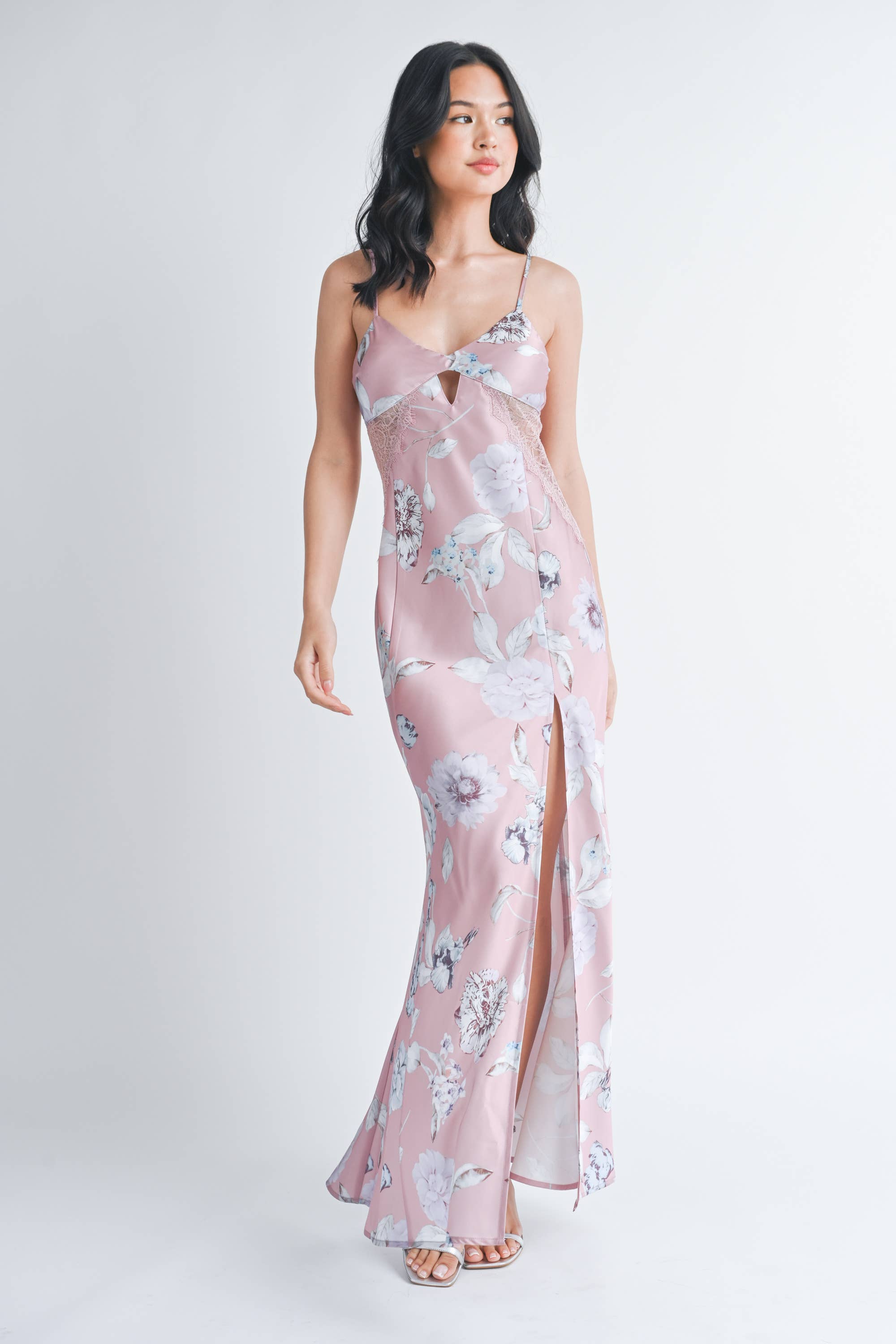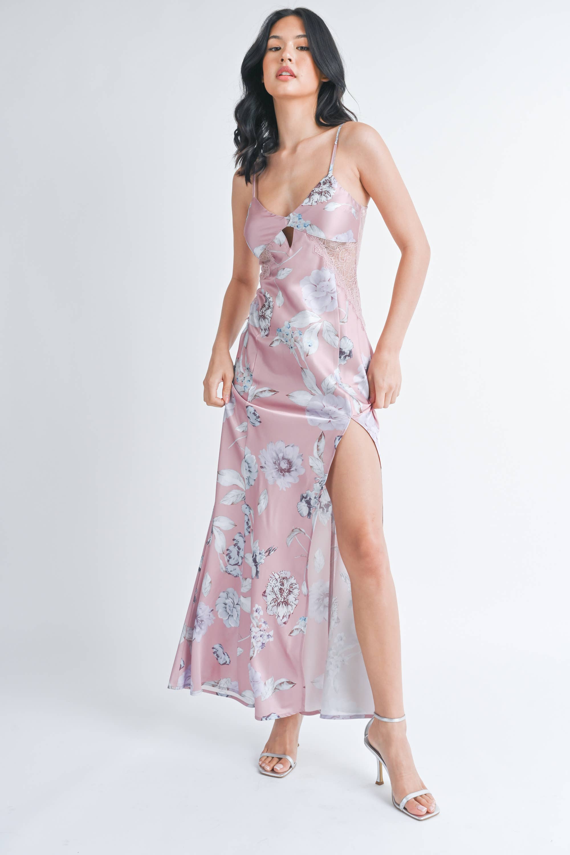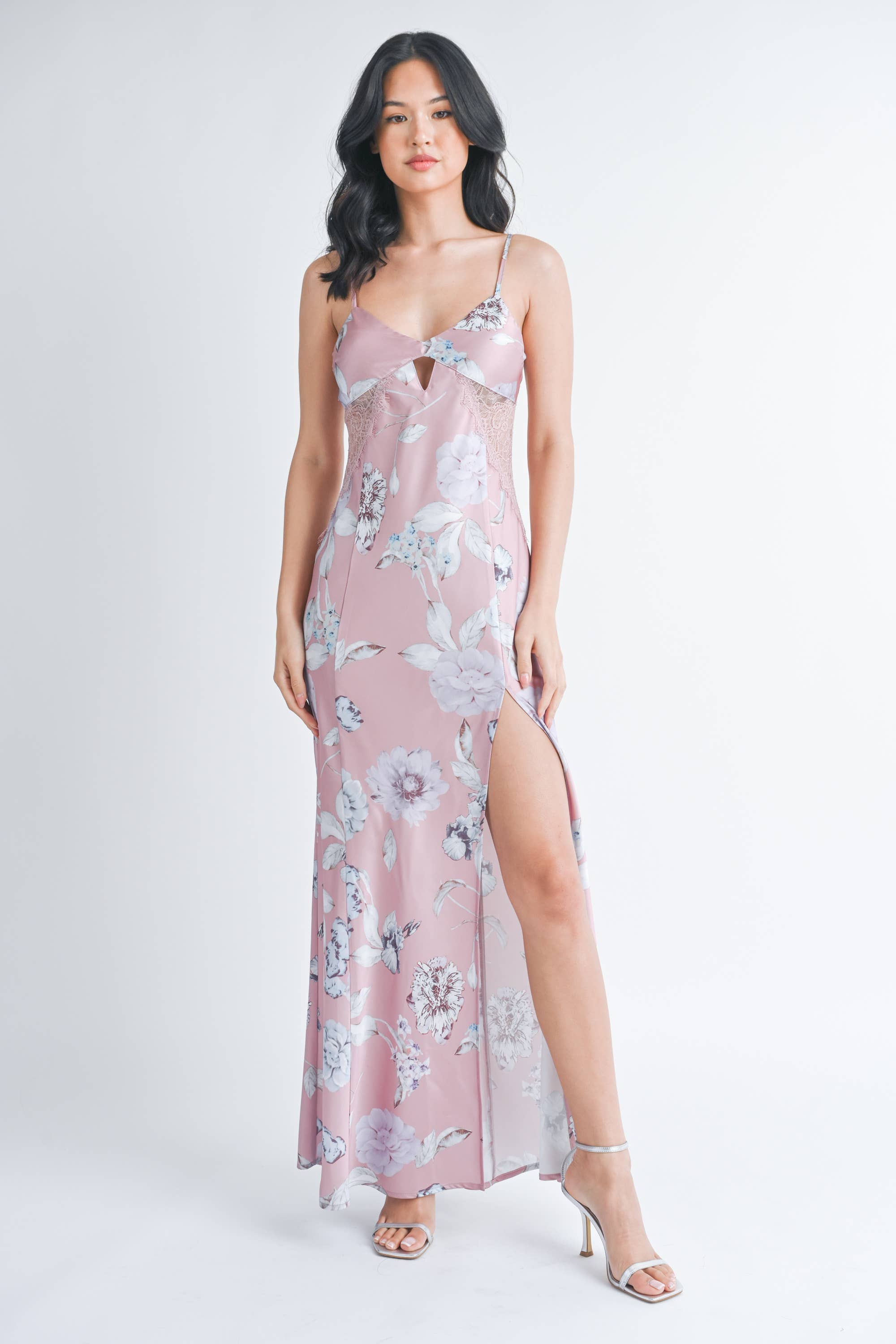 Romantic with a hint of drama, La Vie en Bloom Dress is made for slow strolls, candlelit dinners, and springtime getaways. This floral maxi dress features a graceful front slit and delicate lace contrast detailing that adds just the right amount of softness and intrigue. The silhouette flows effortlessly while still flattering your shape, making it a standout piece for both special occasions and elevated everyday wear.