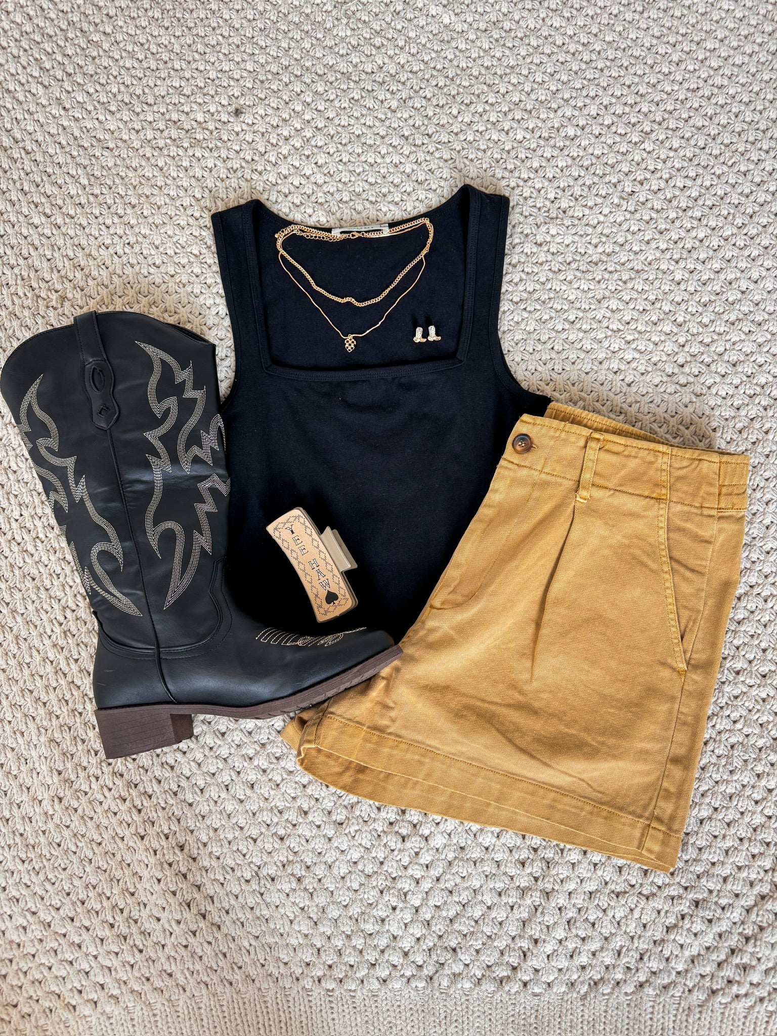 Looking for a good alternative to a true denim short? Look no further. Our Shawn Shorts feature a sturdy canvas fabric, longer-length inseam, high rise waist, full sized pockets, belts loops, elastic waistband and tapered fit.