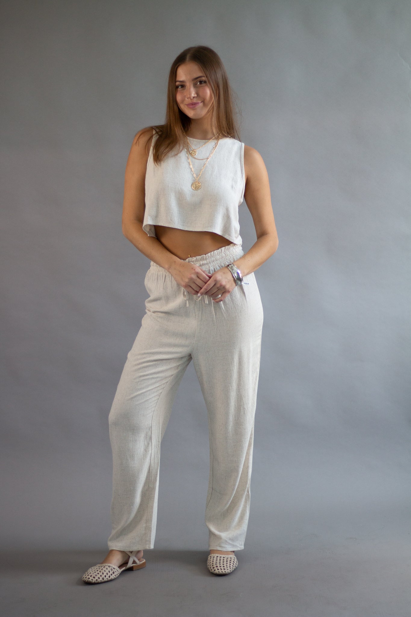• Elastic high waist pants