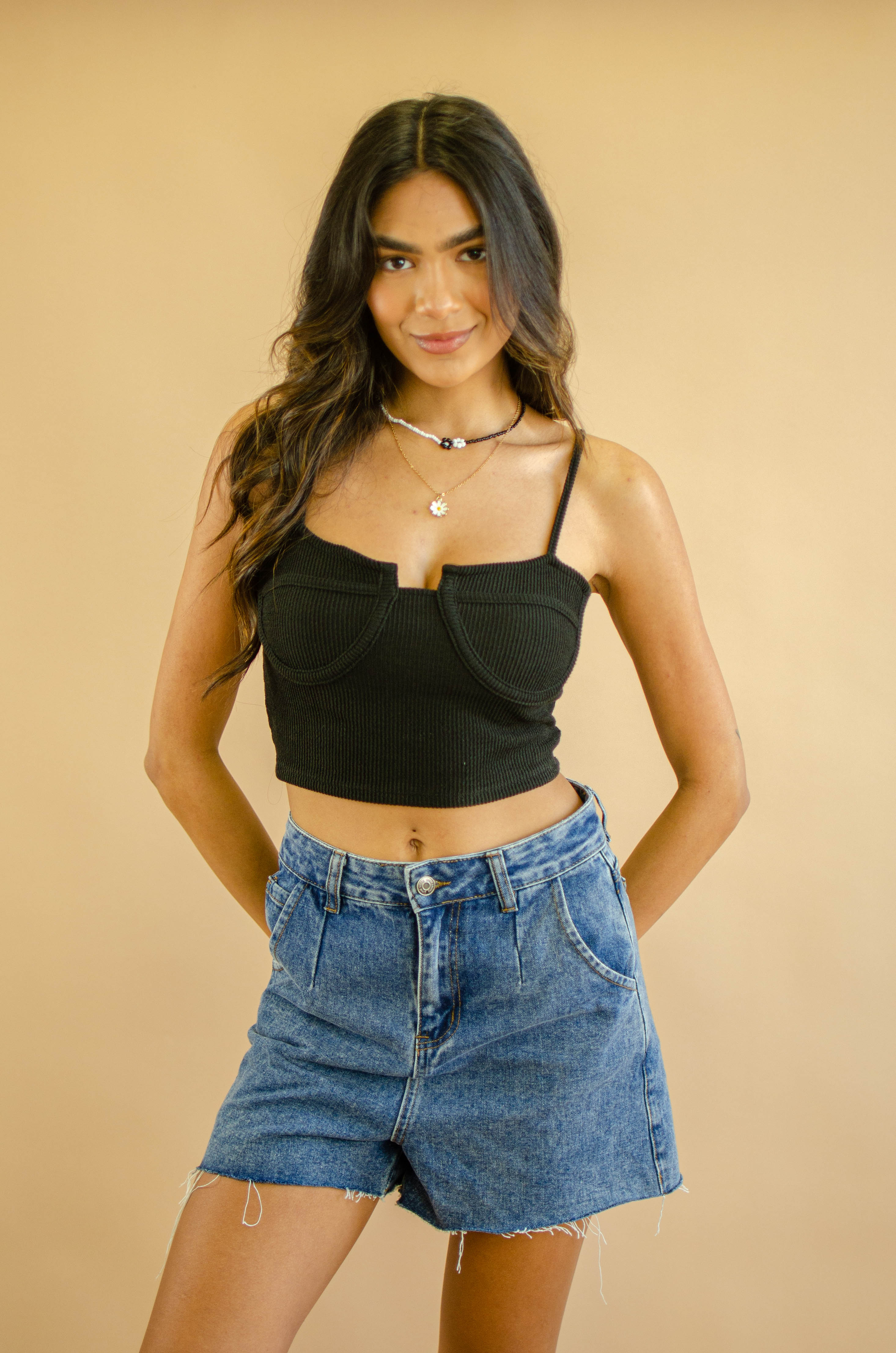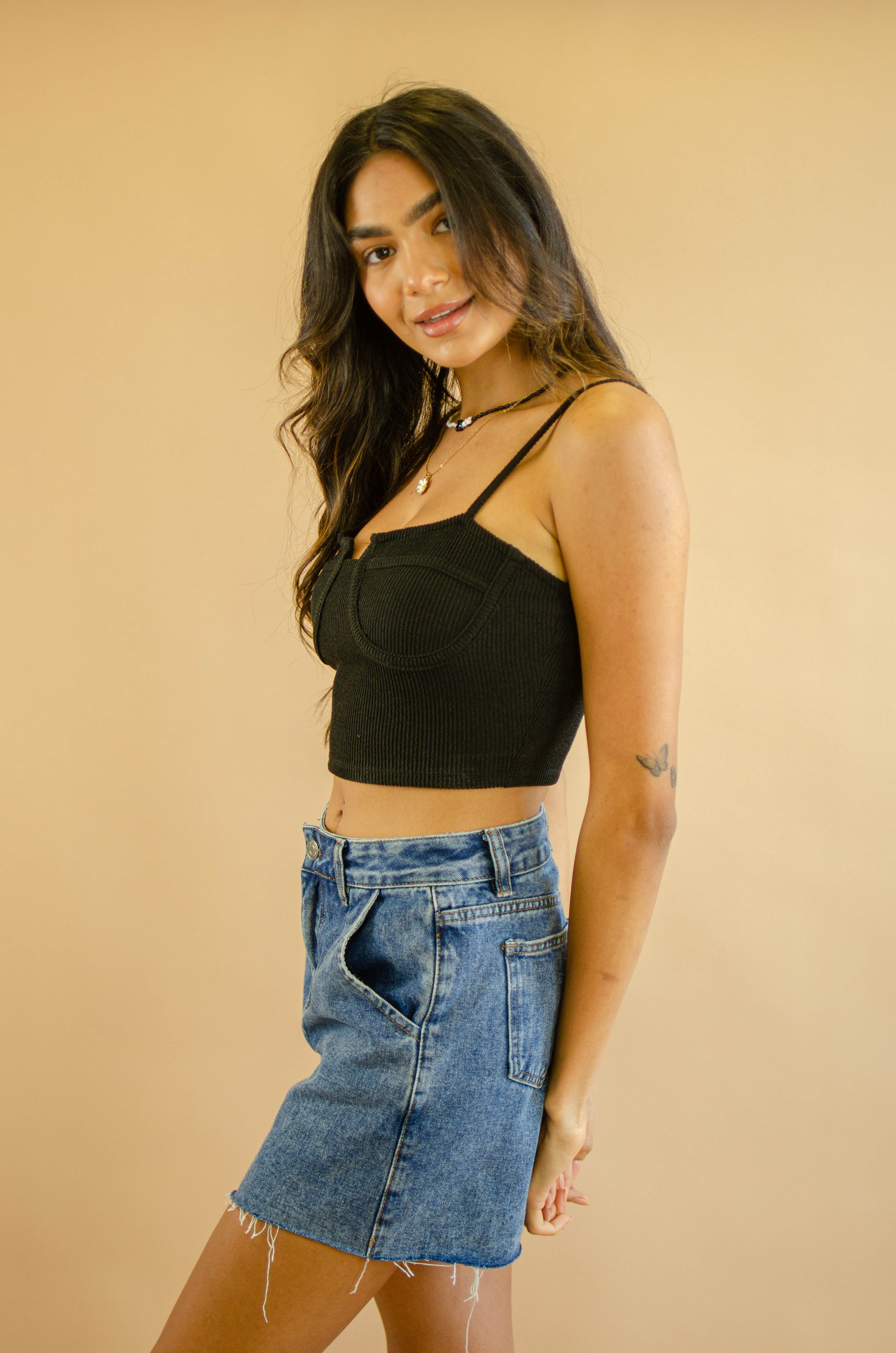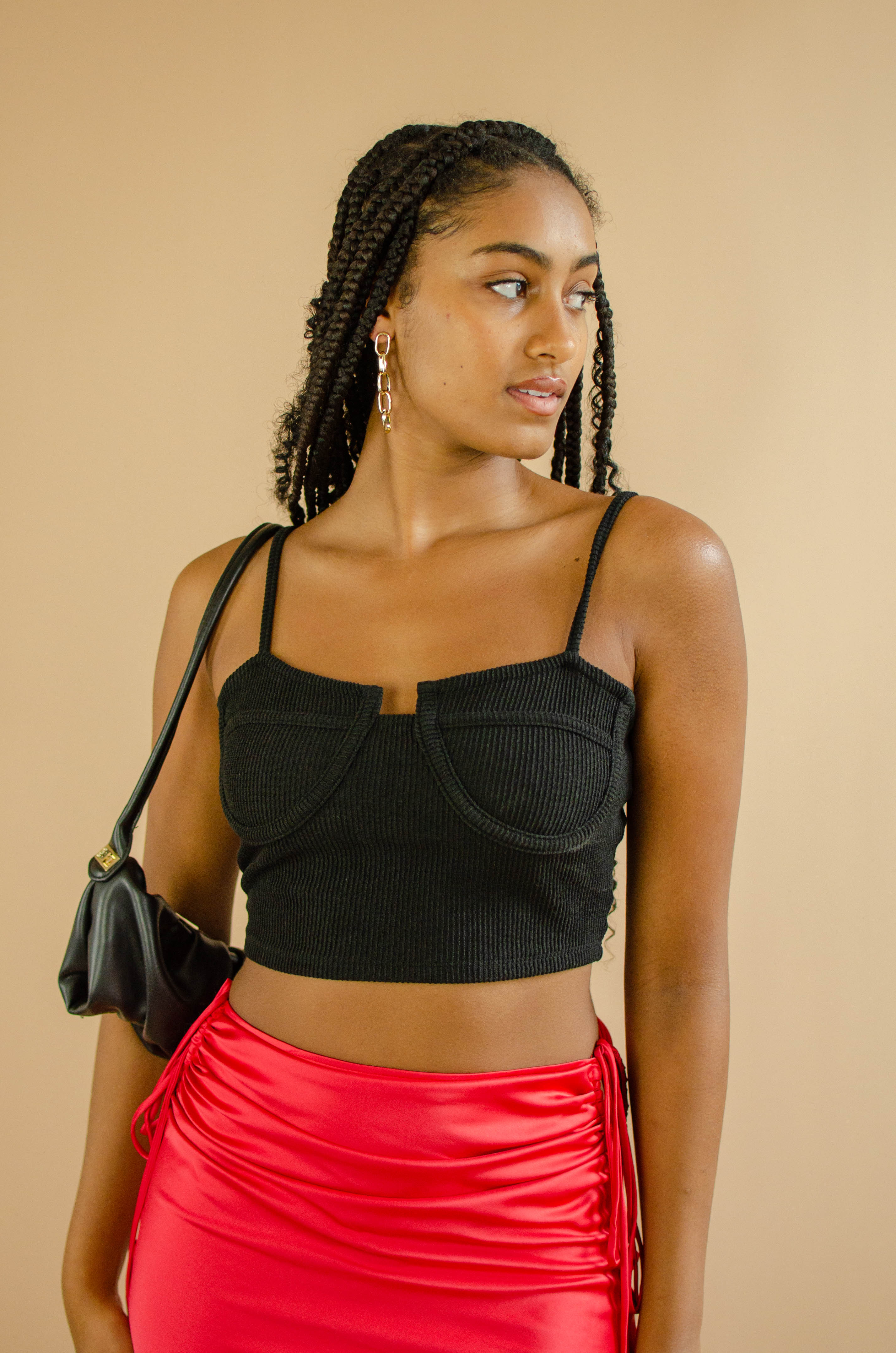 The bustier of your dreams, our Lynn Tank features a plush ribbed texture, adjustable mini straps, cropped hem, supportive underwire and bold seam bustier cups for a cool corset inspired look. Wear alone as a crop or layer over your favorite white button down.