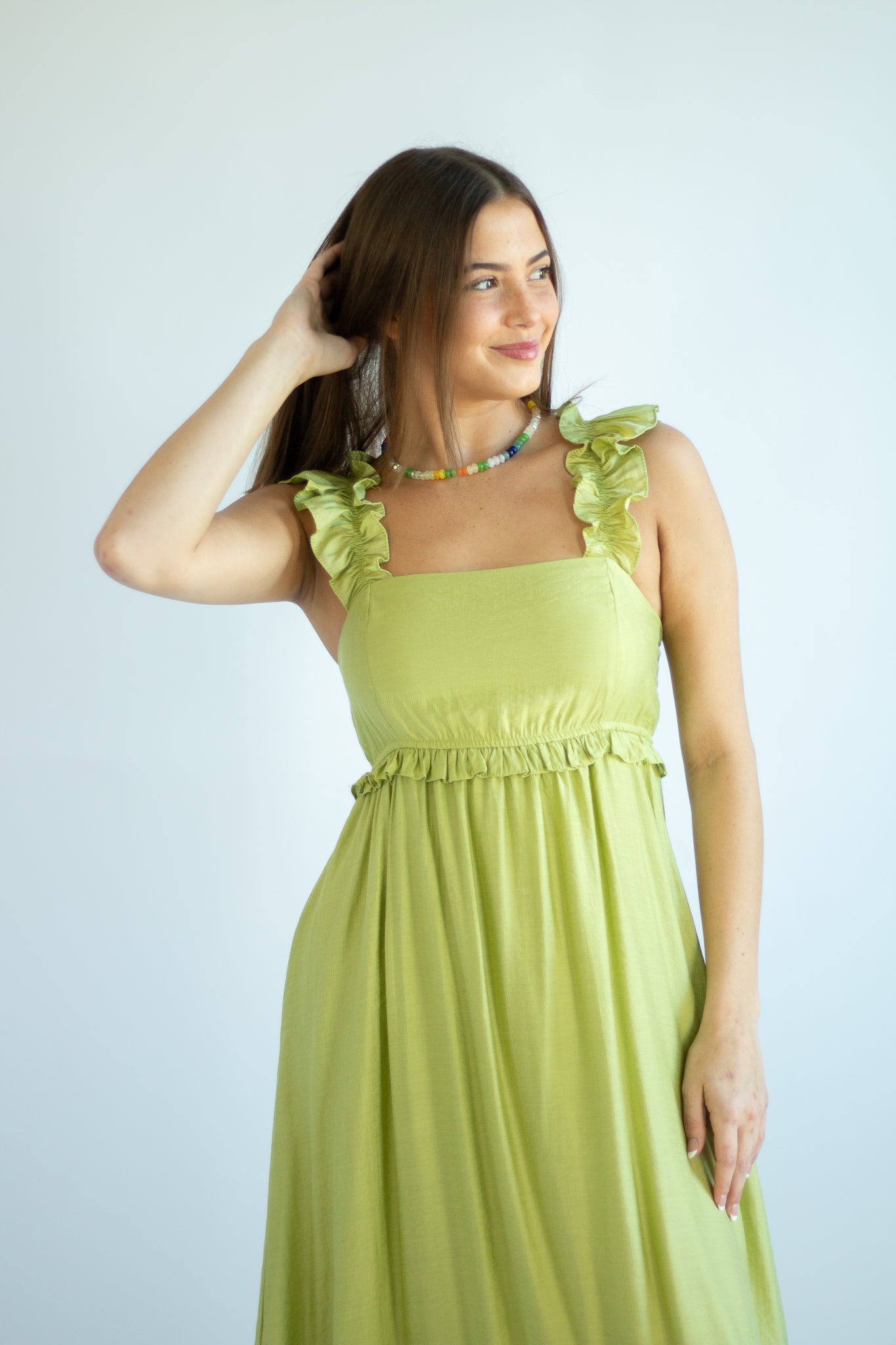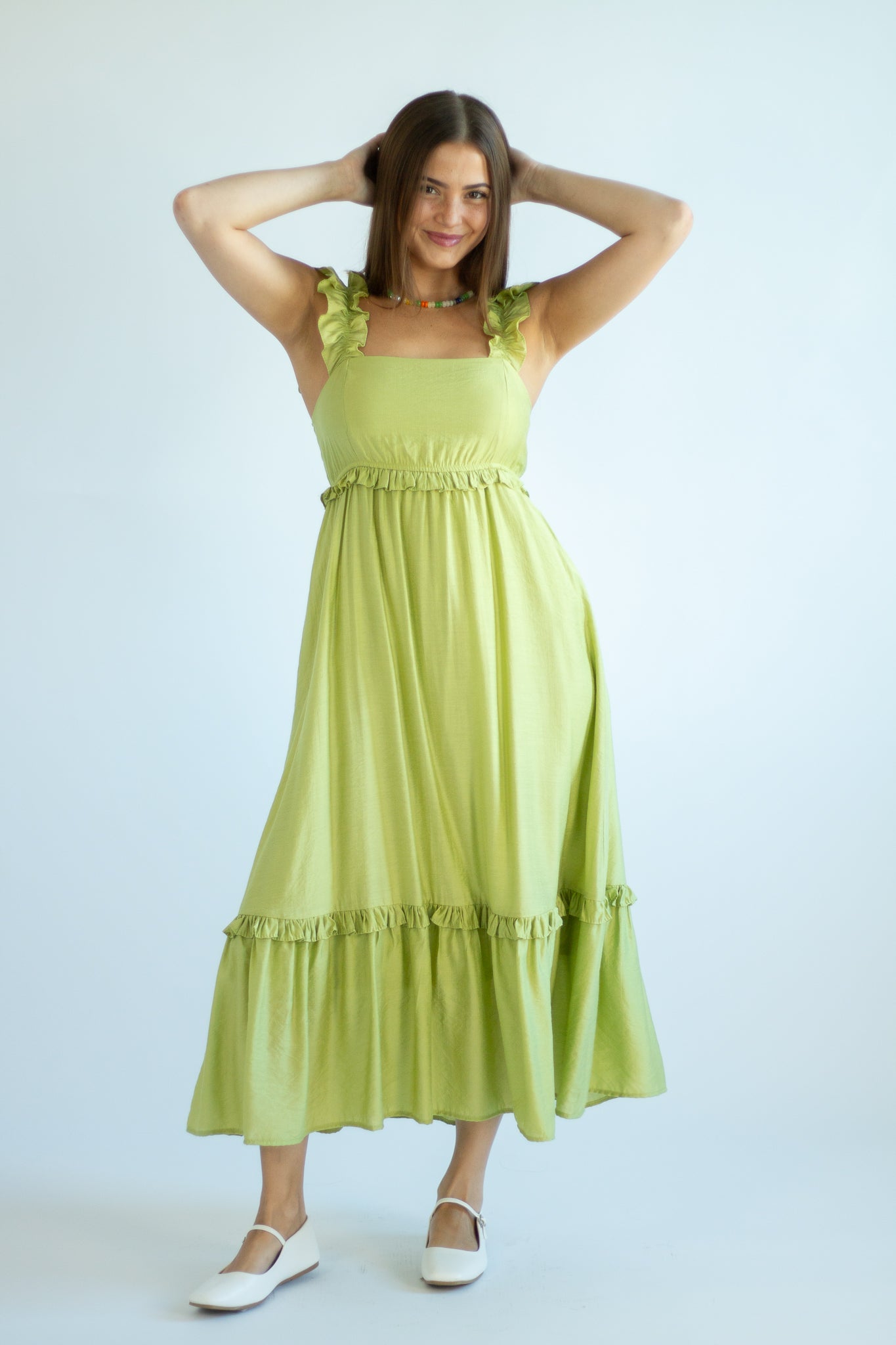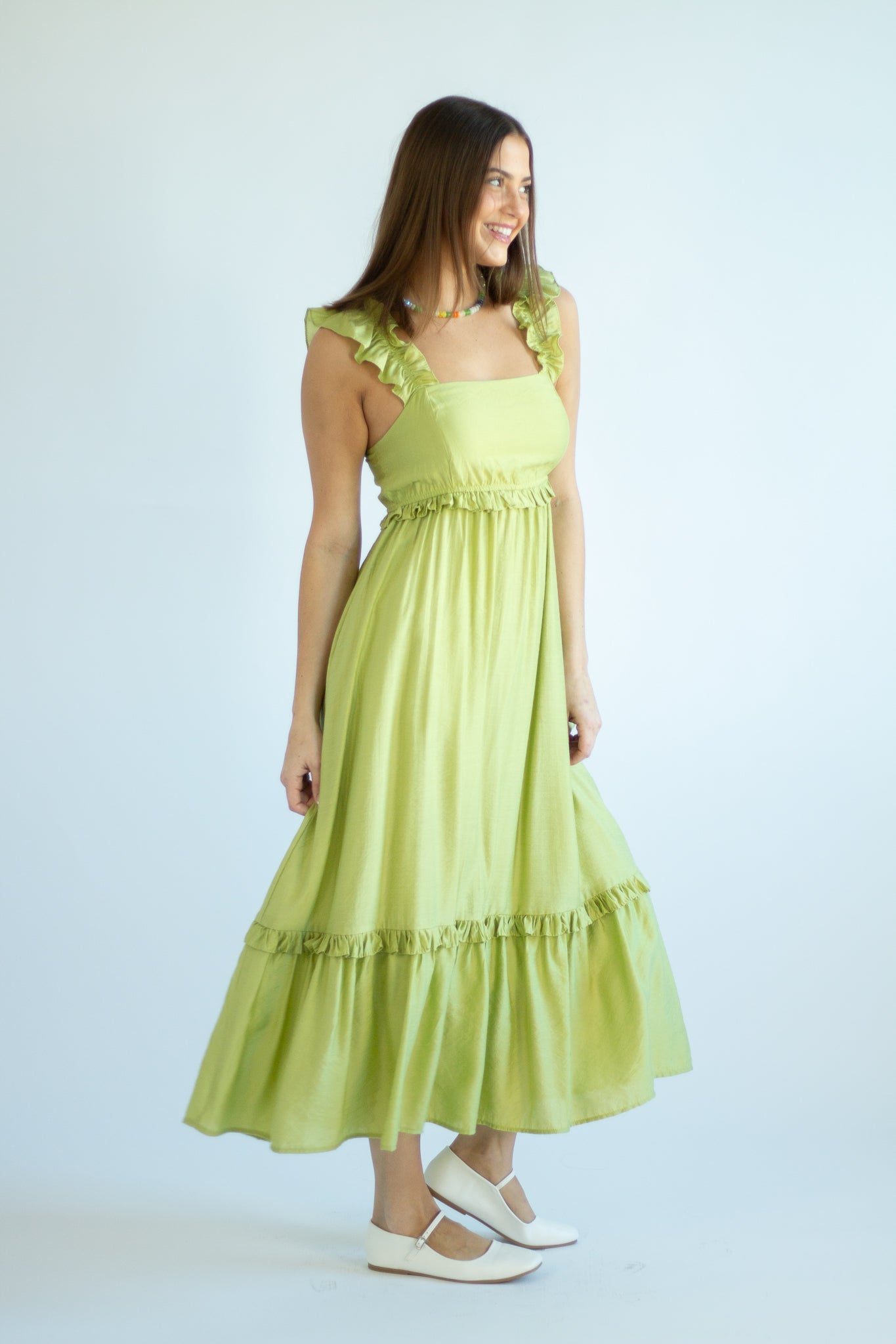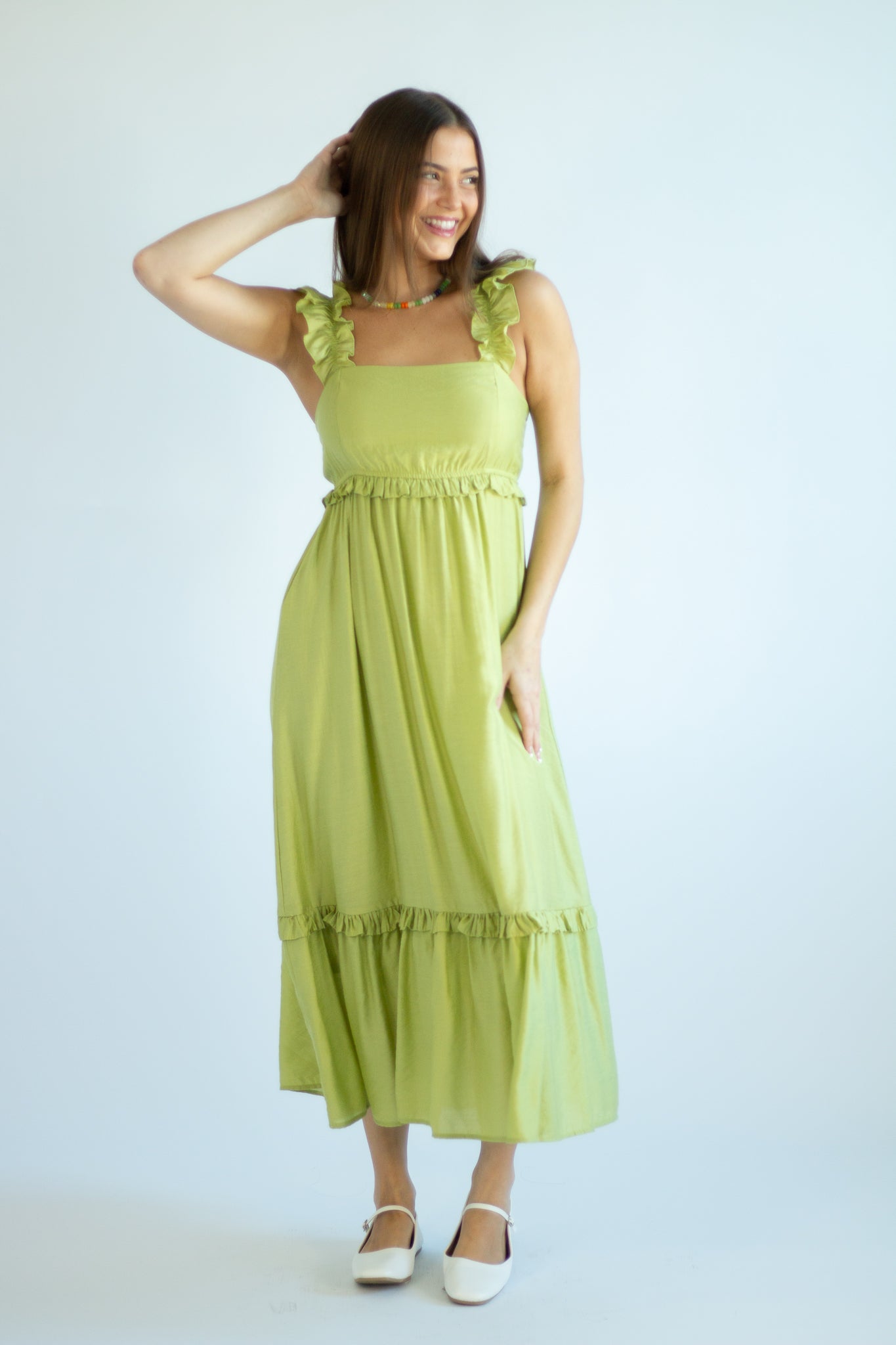 - RUFFLE HEM SOLID LINED MIDI DRESS