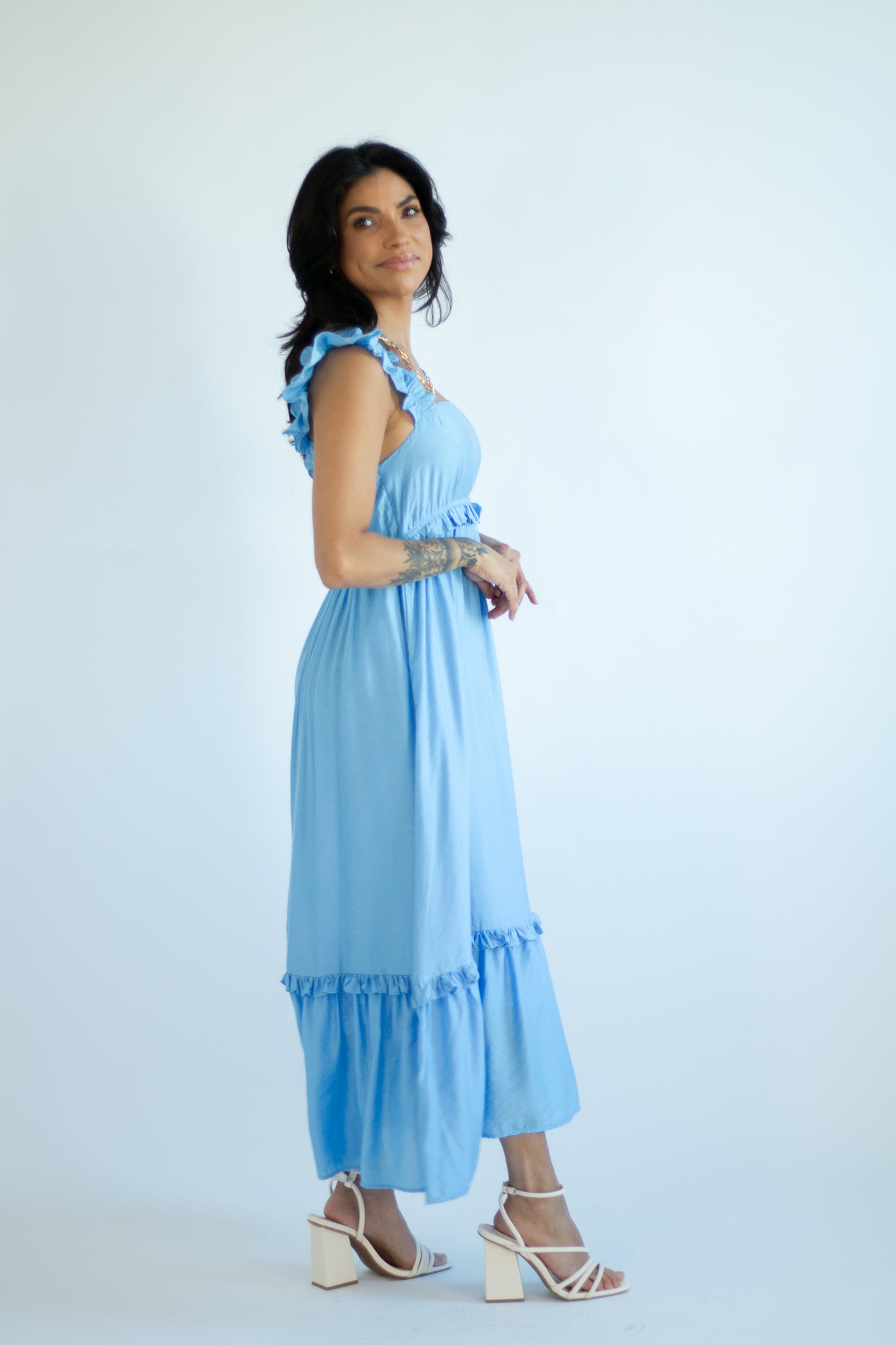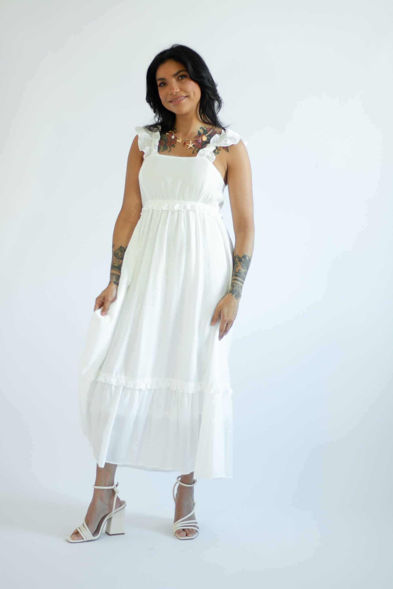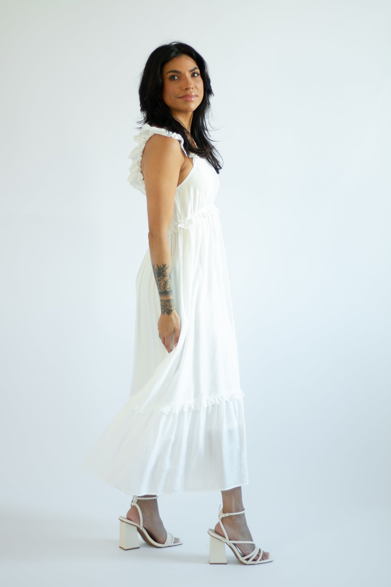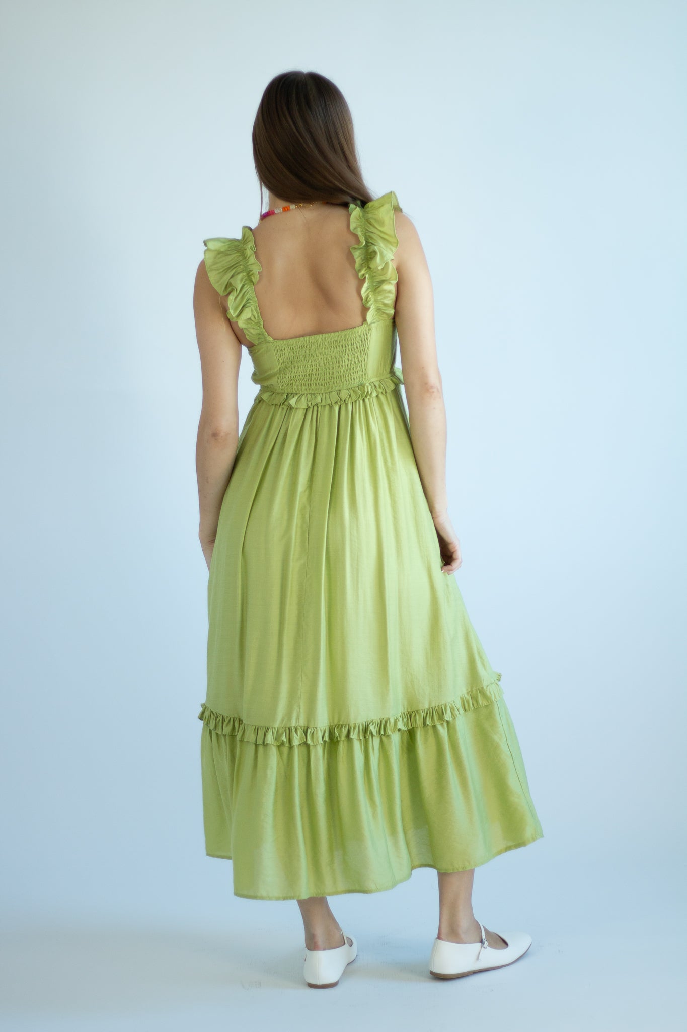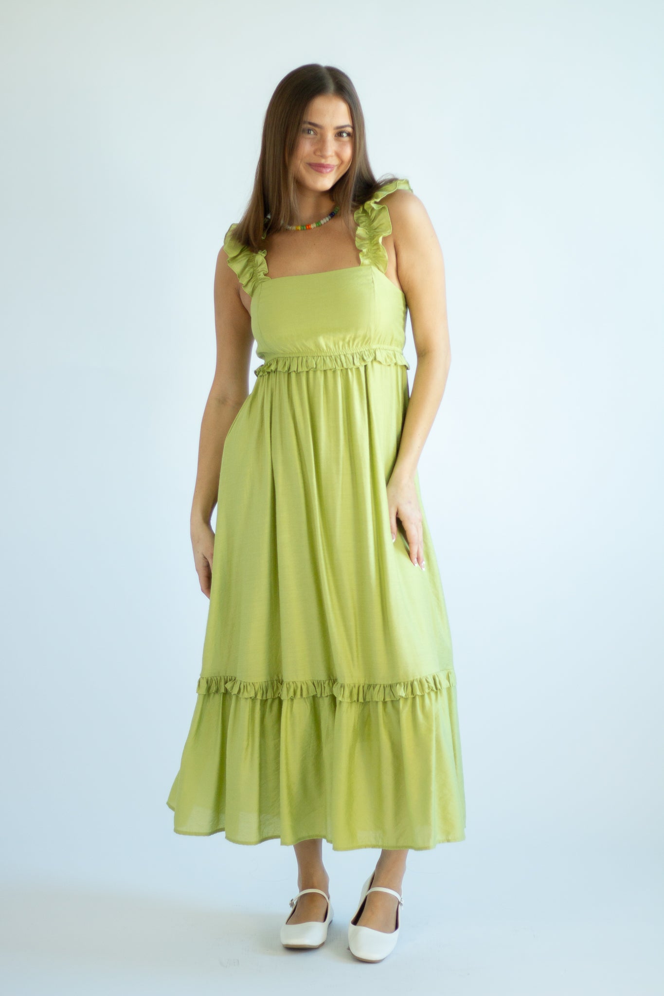 - RUFFLE HEM SOLID LINED MIDI DRESS