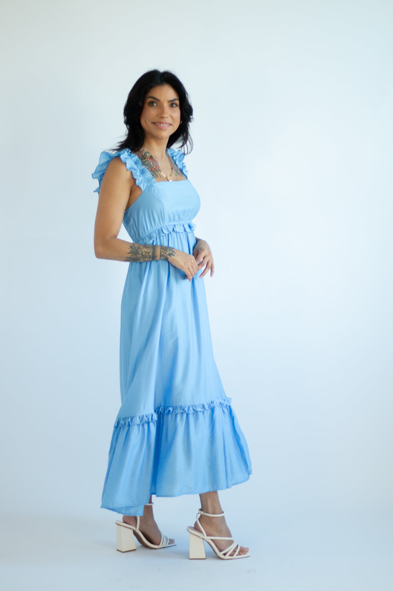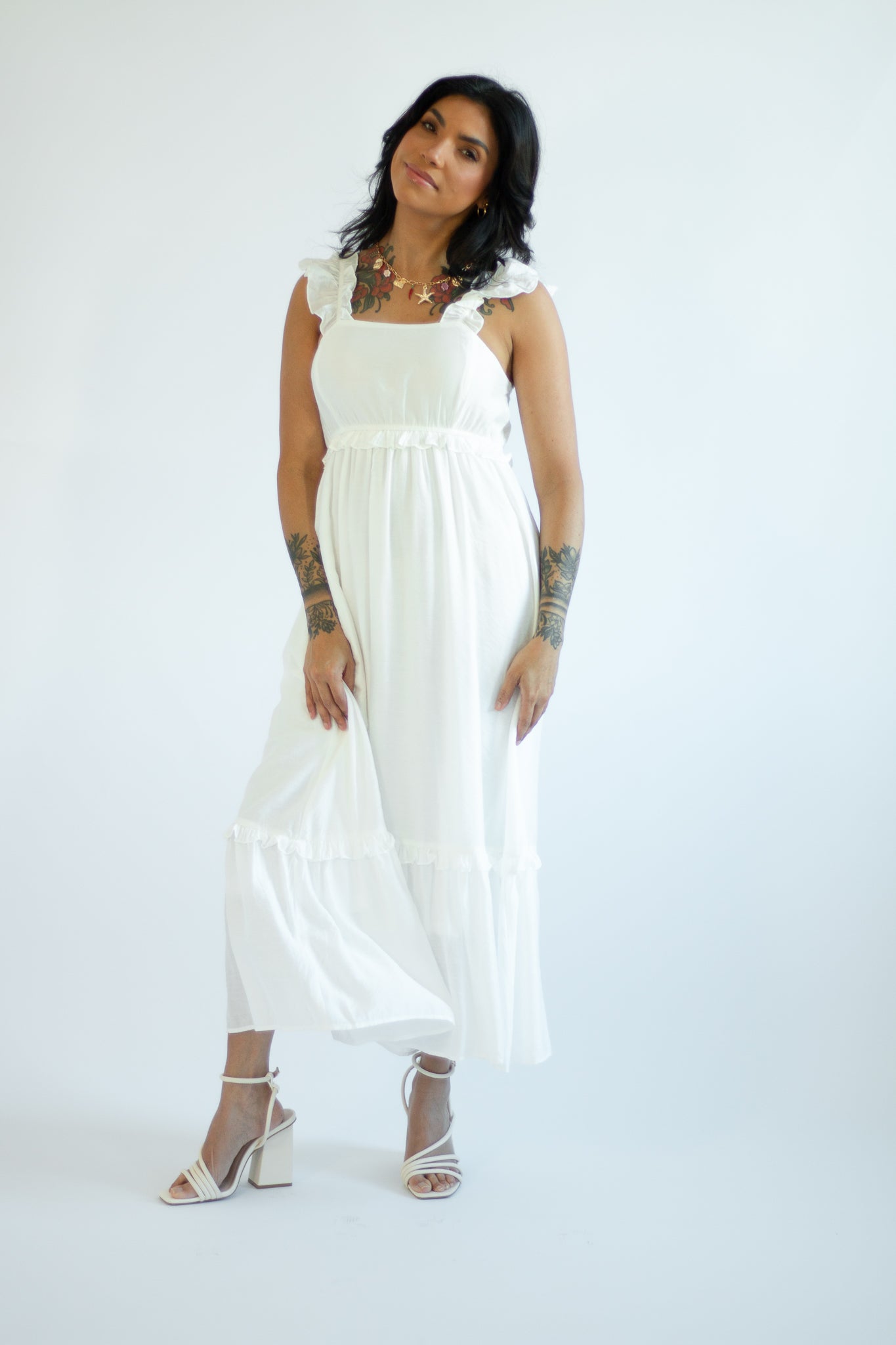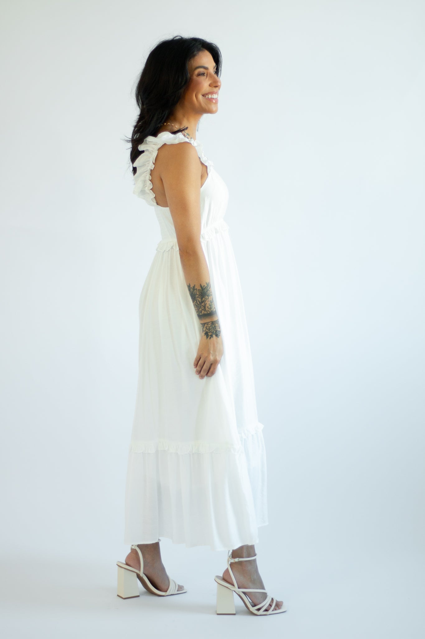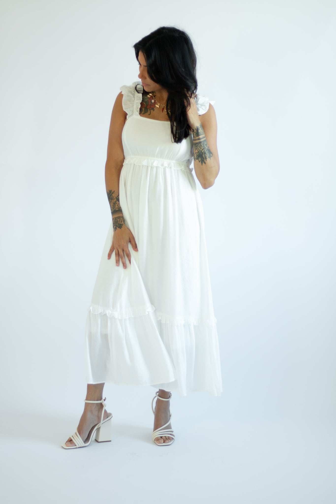 - RUFFLE HEM SOLID LINED MIDI DRESS