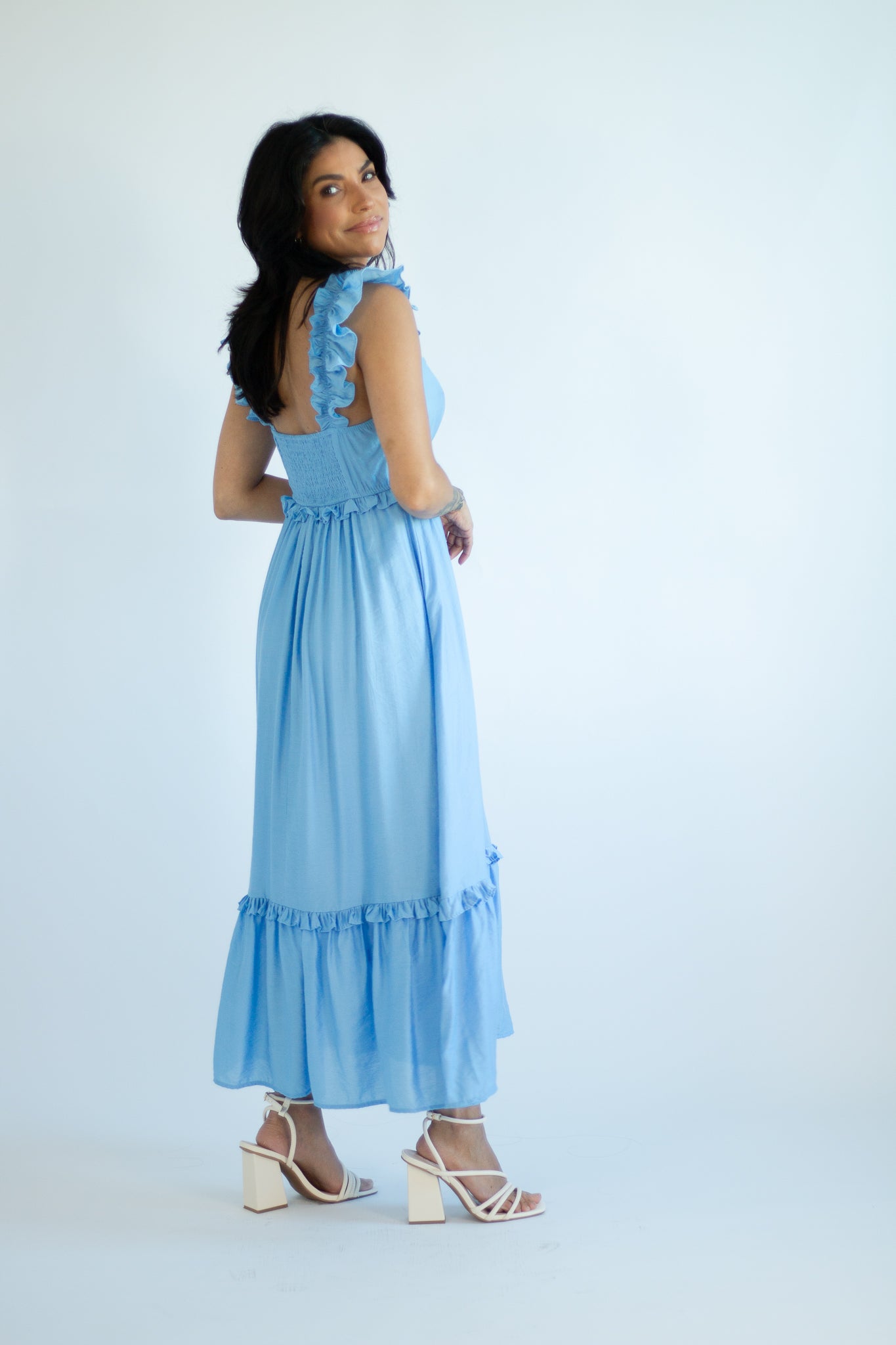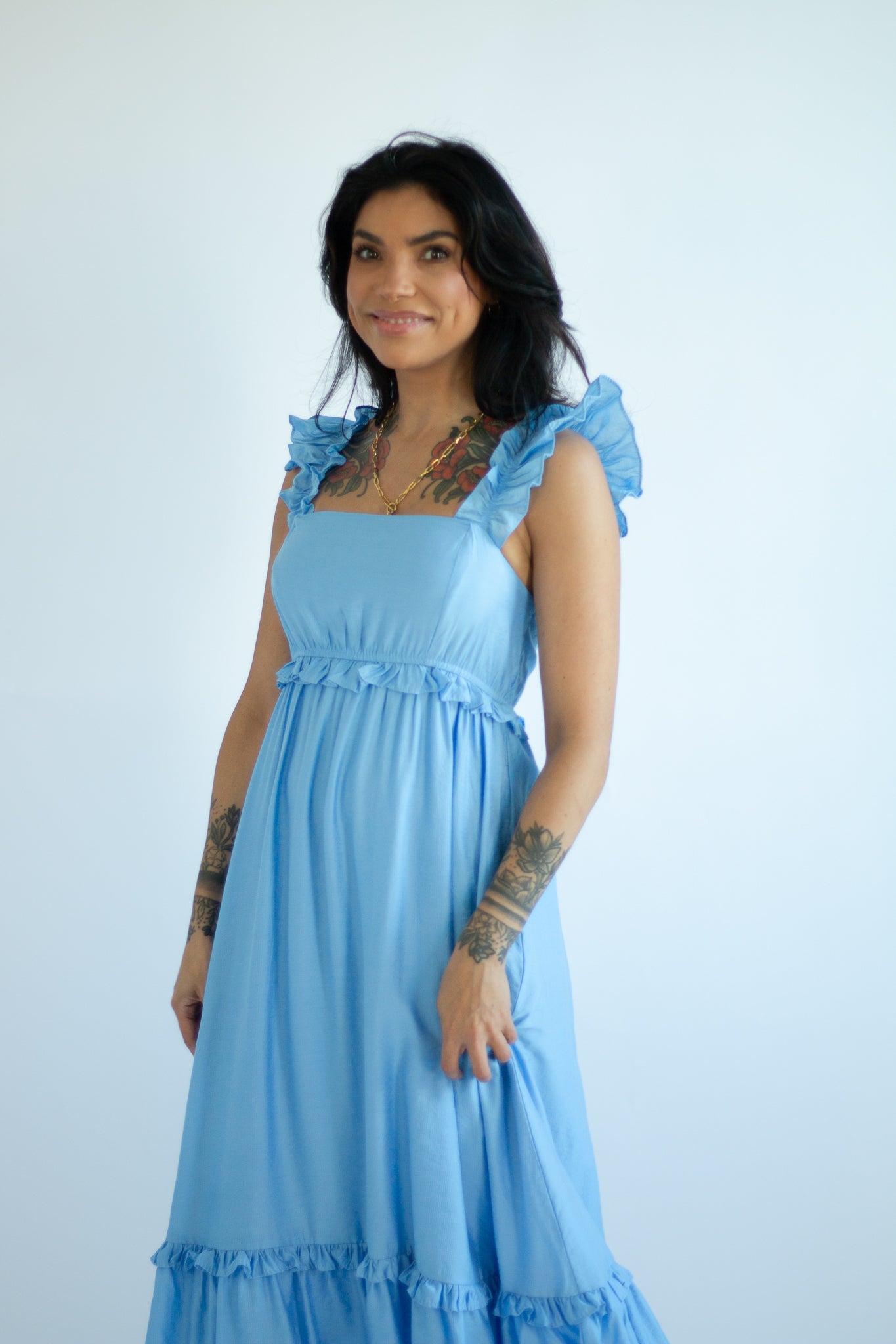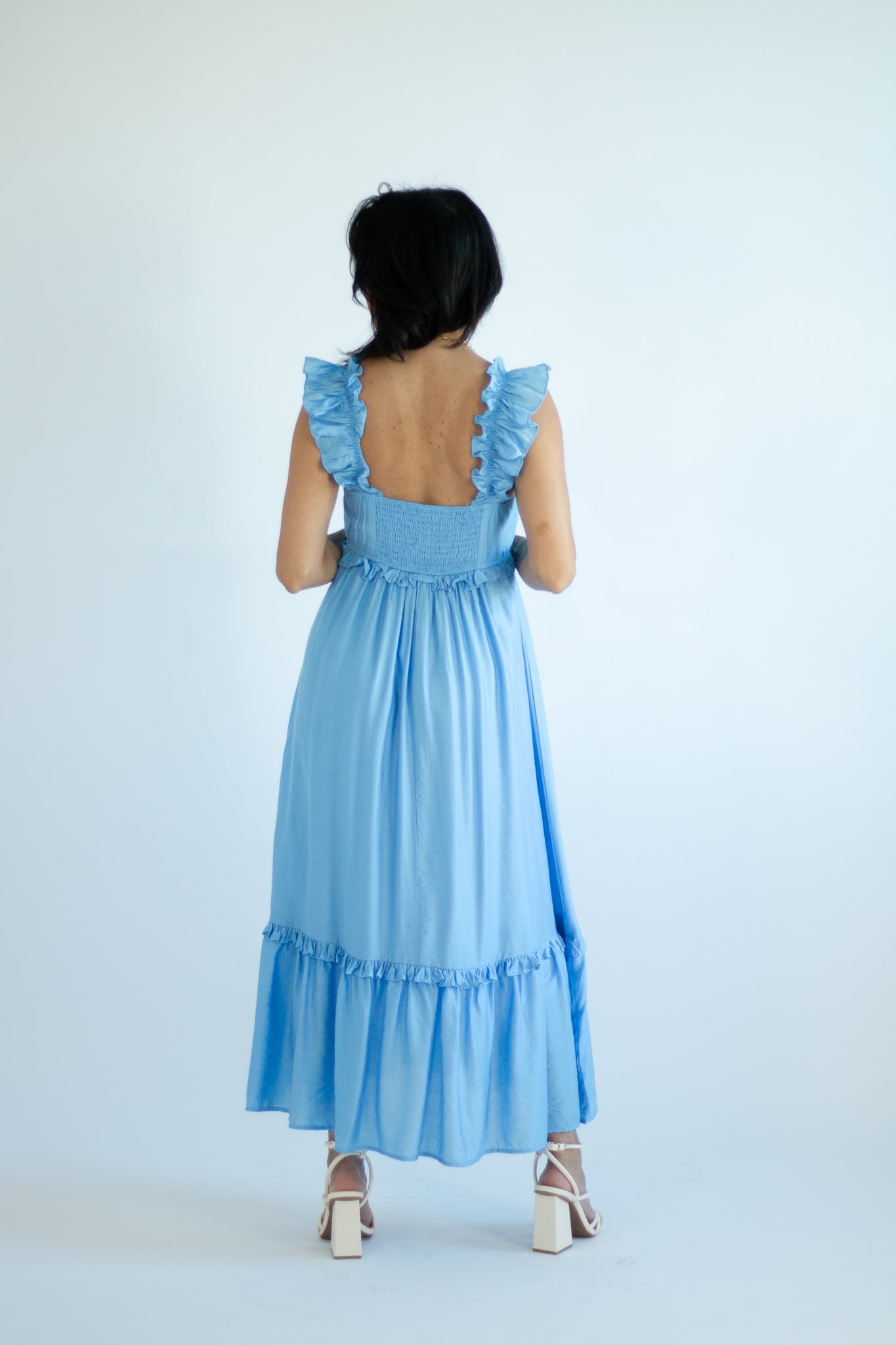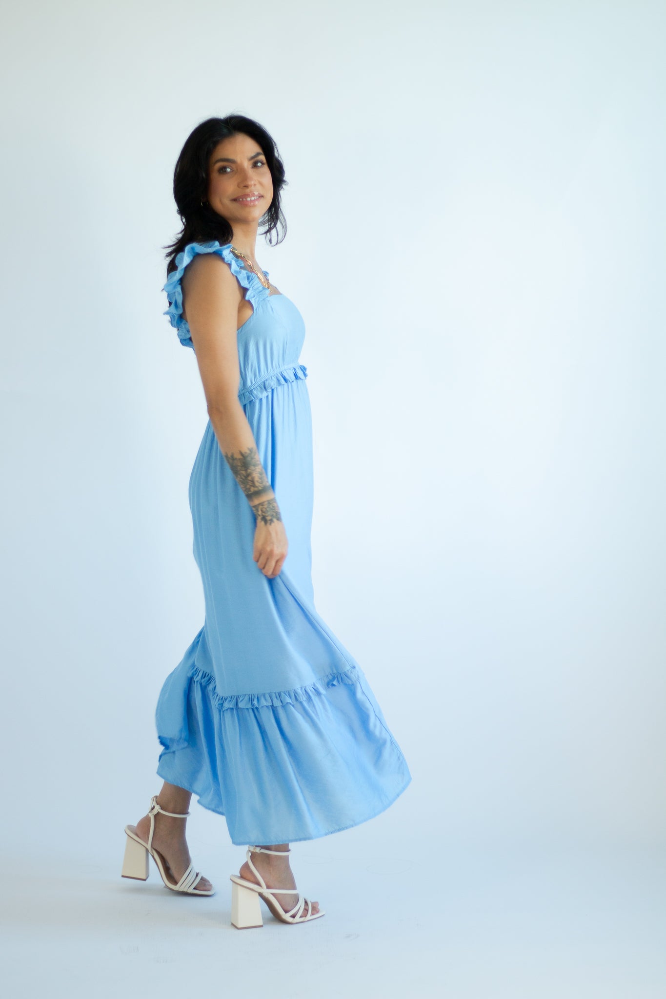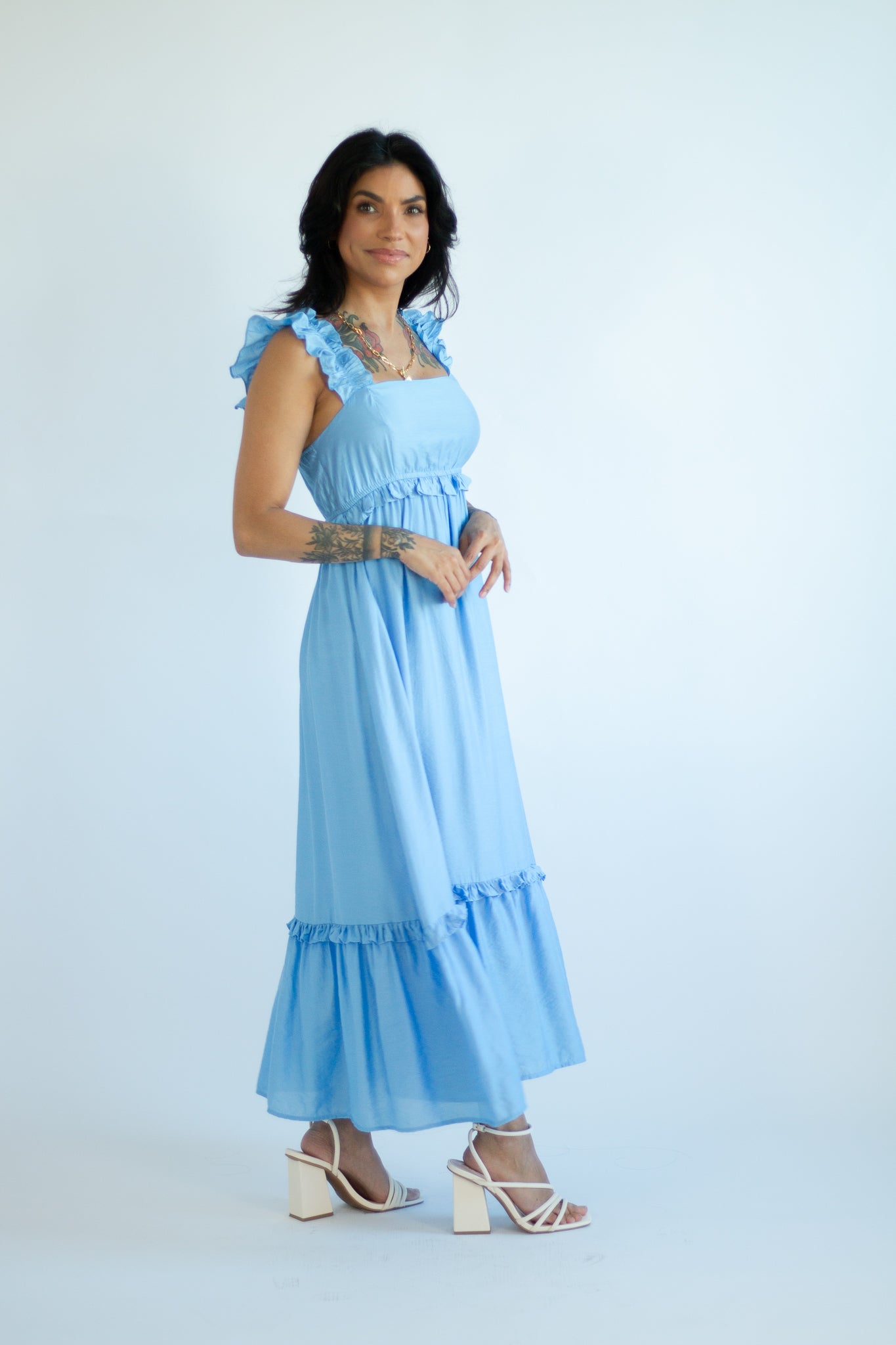 - RUFFLE HEM SOLID LINED MIDI DRESS