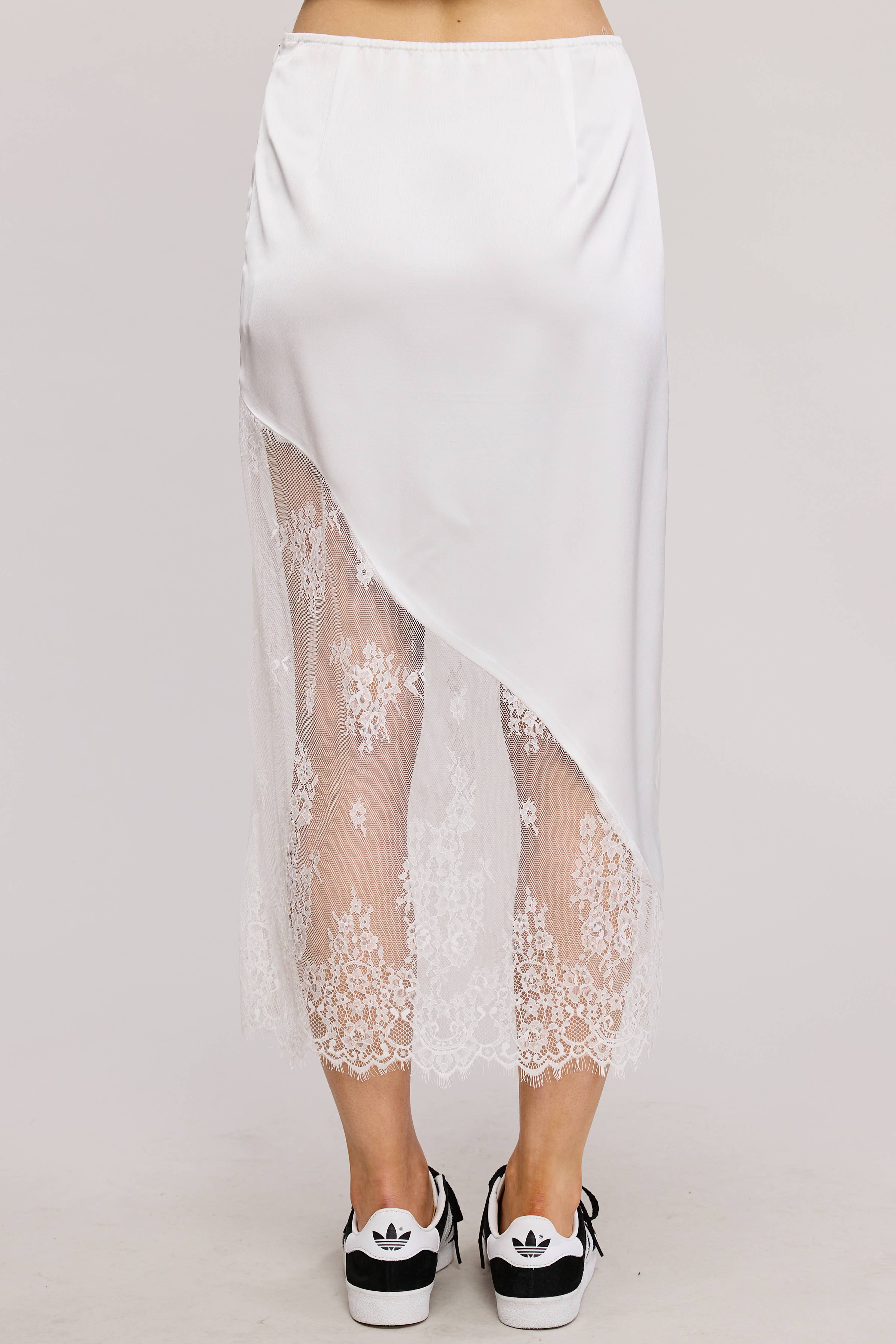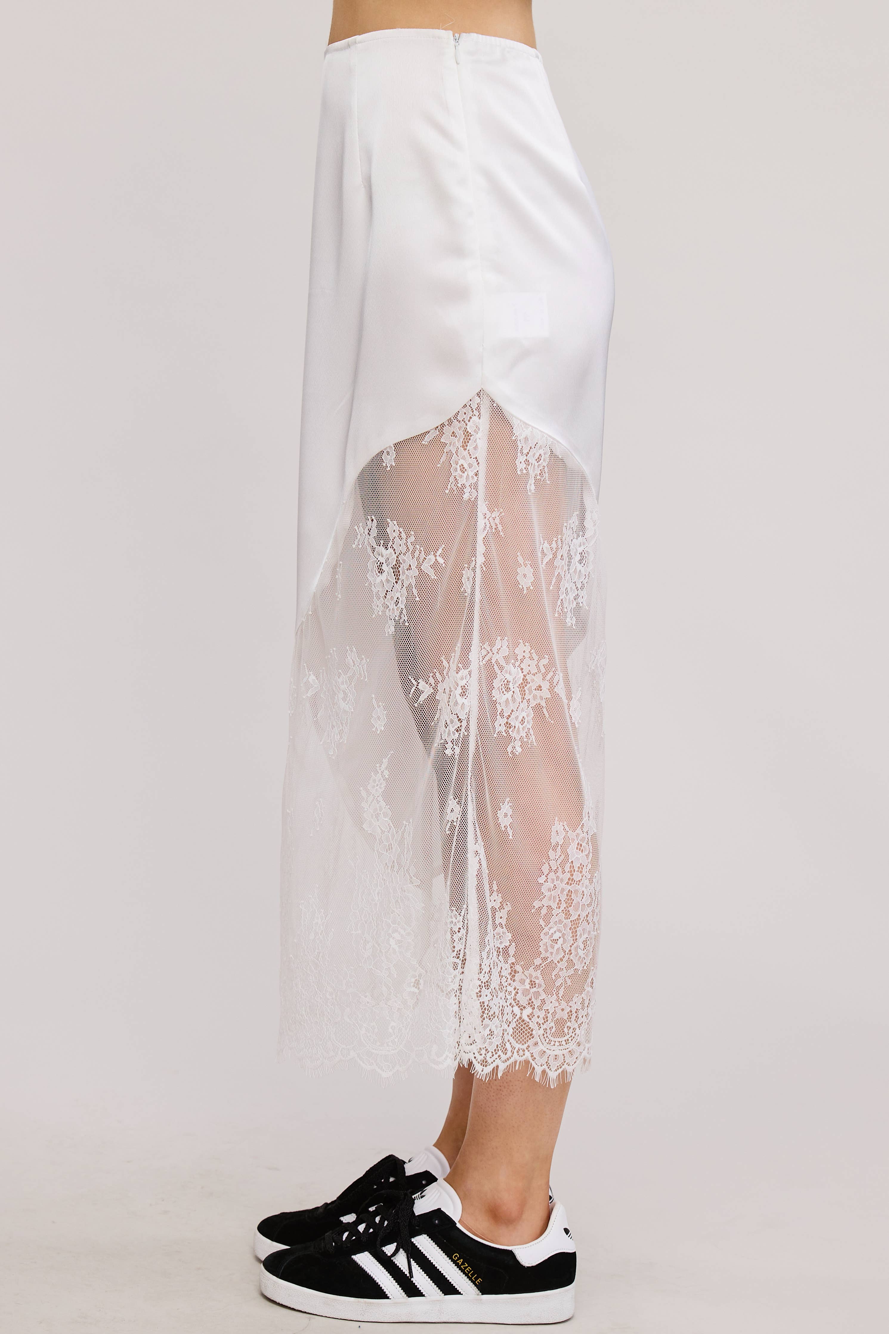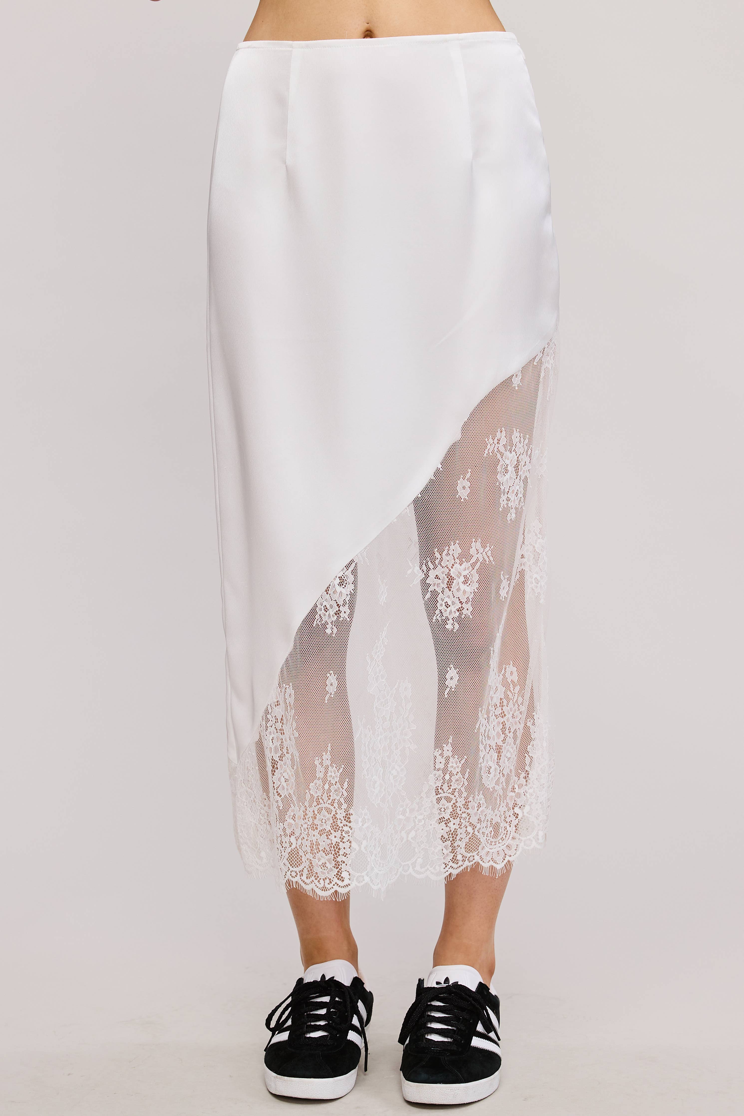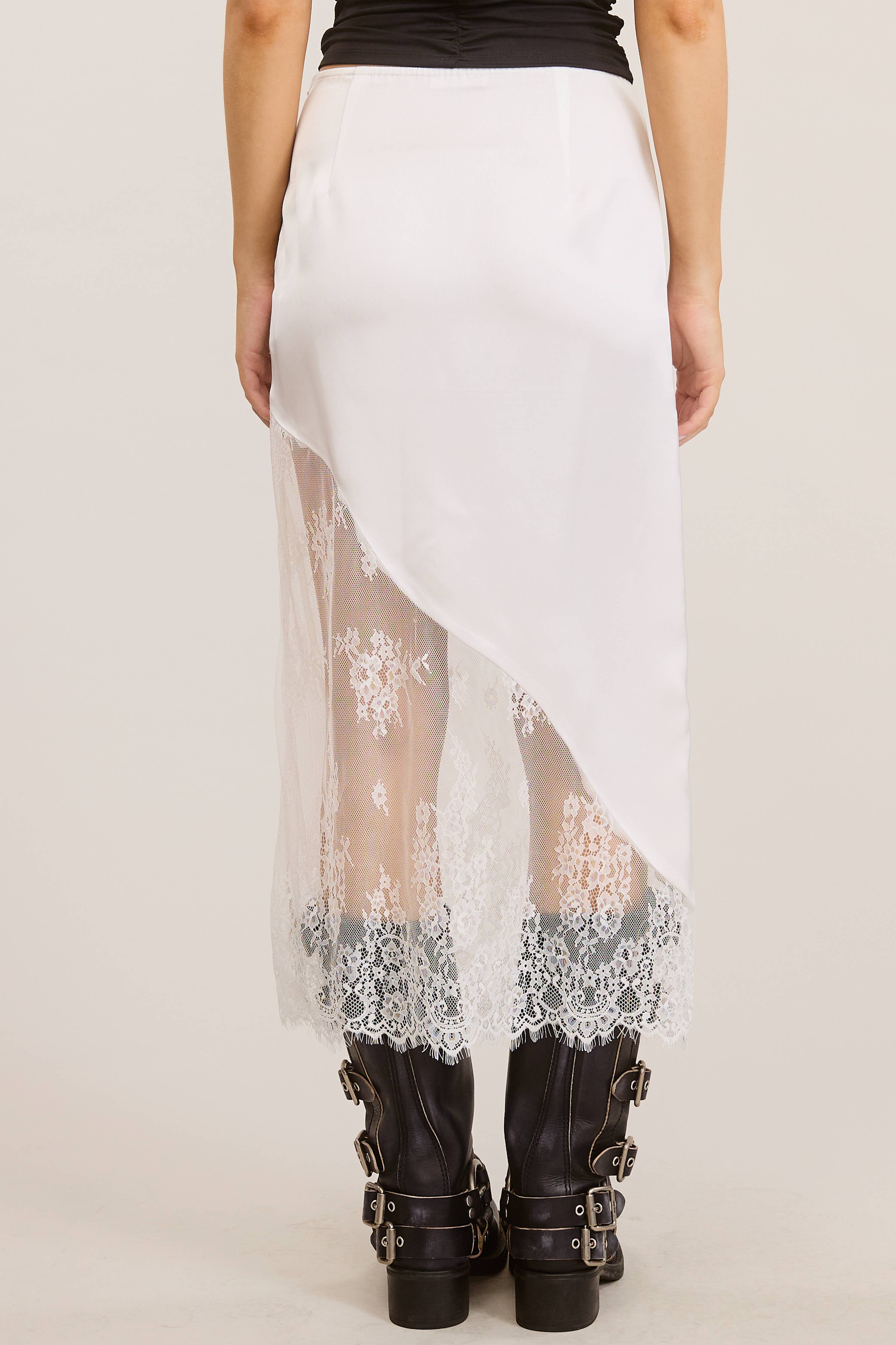 Romantic with a modern edge, The Sorrento Lace Midi Skirt captures effortless elegance in every step. Designed with a silky satin-effect base and a dreamy sheer floral lace overlay, this asymmetrical piece flows beautifully for an elevated, feminine silhouette. The side hook-and-eye closure ensures a seamless fit, while the midi length adds a touch of sophistication perfect for any occasion — from resort getaways to summer soirées. Pair it with a simple tank for daytime wanderlust or a sleek cami and heels for sunset dinners by the coast.