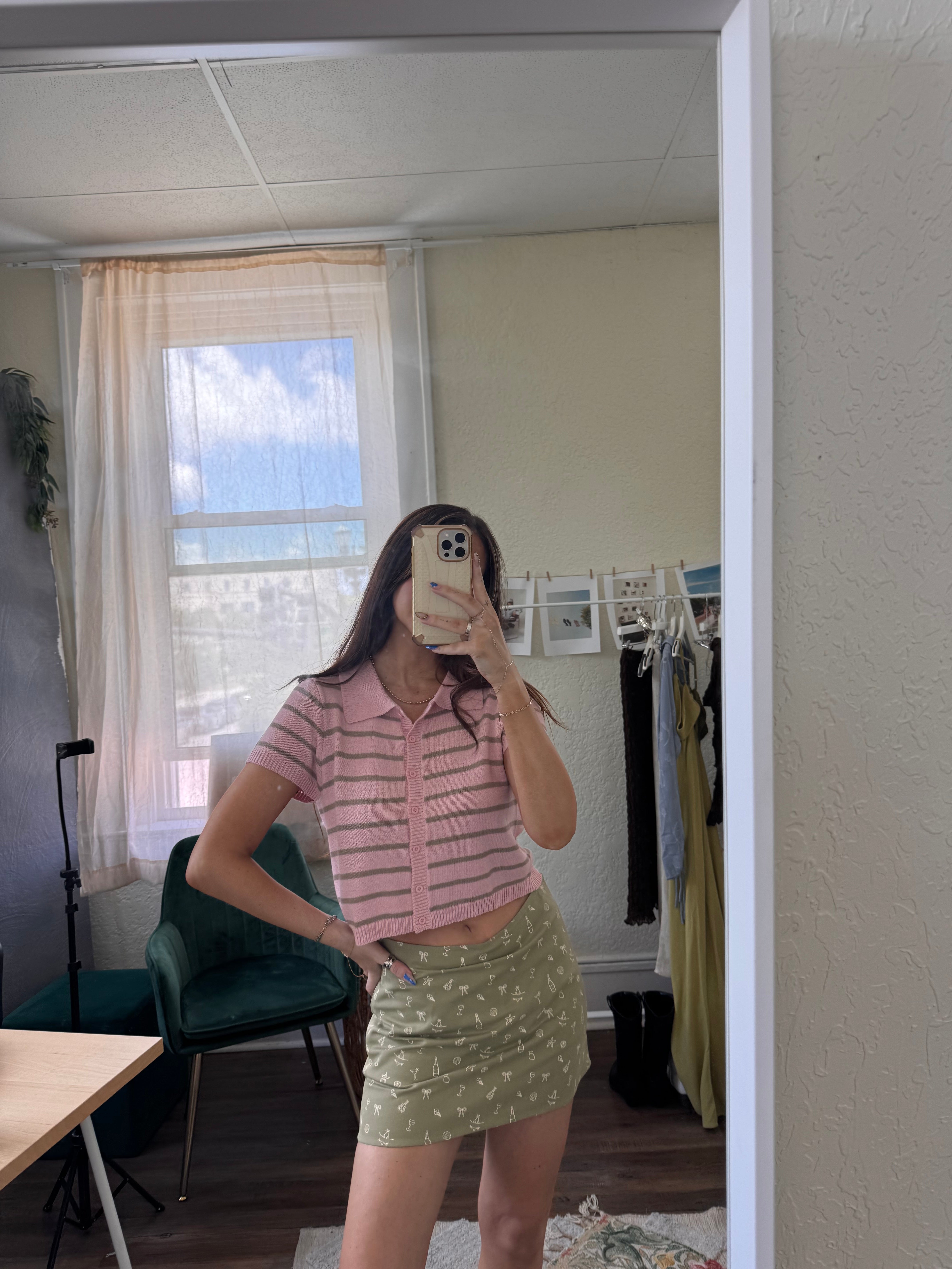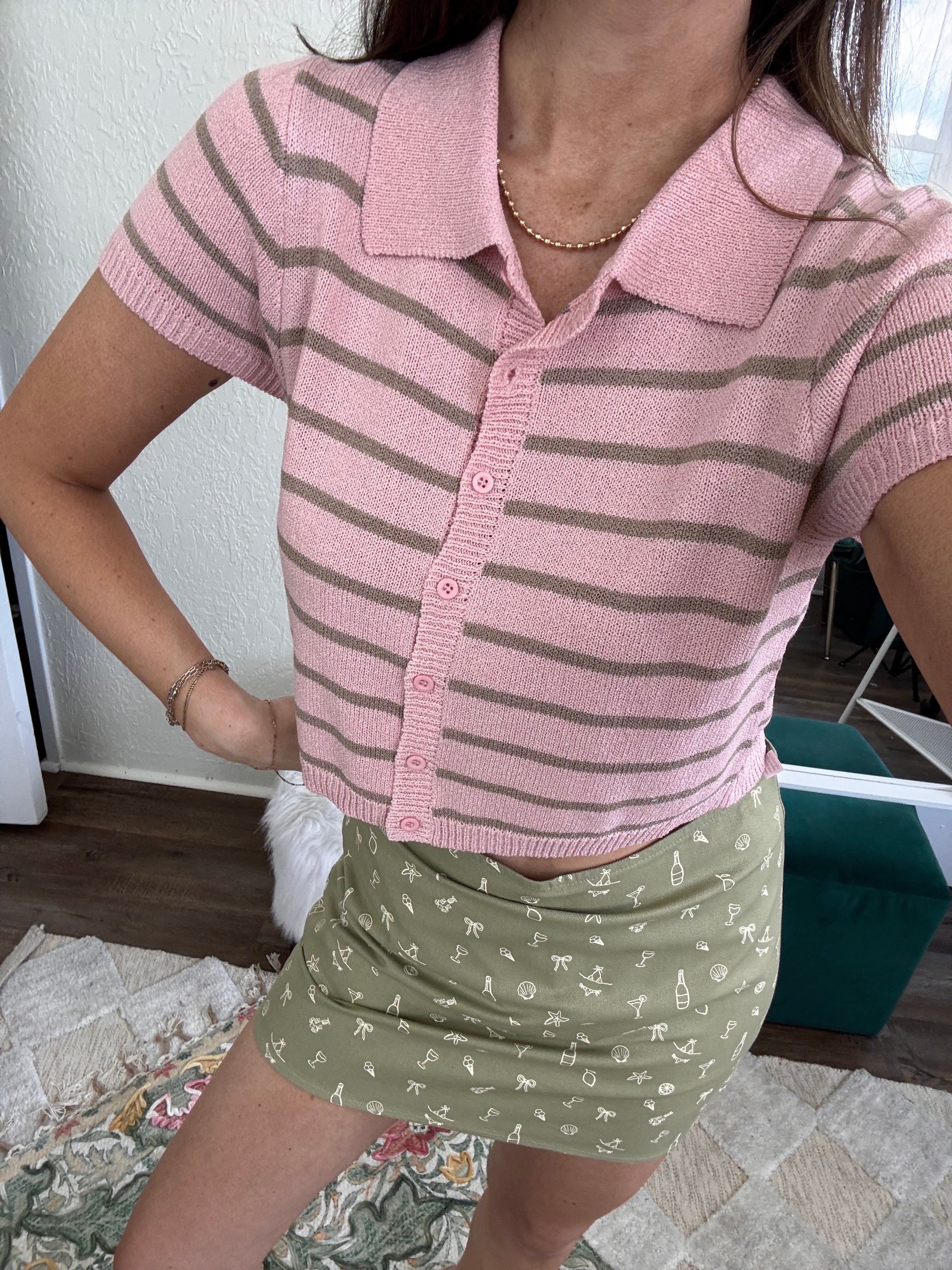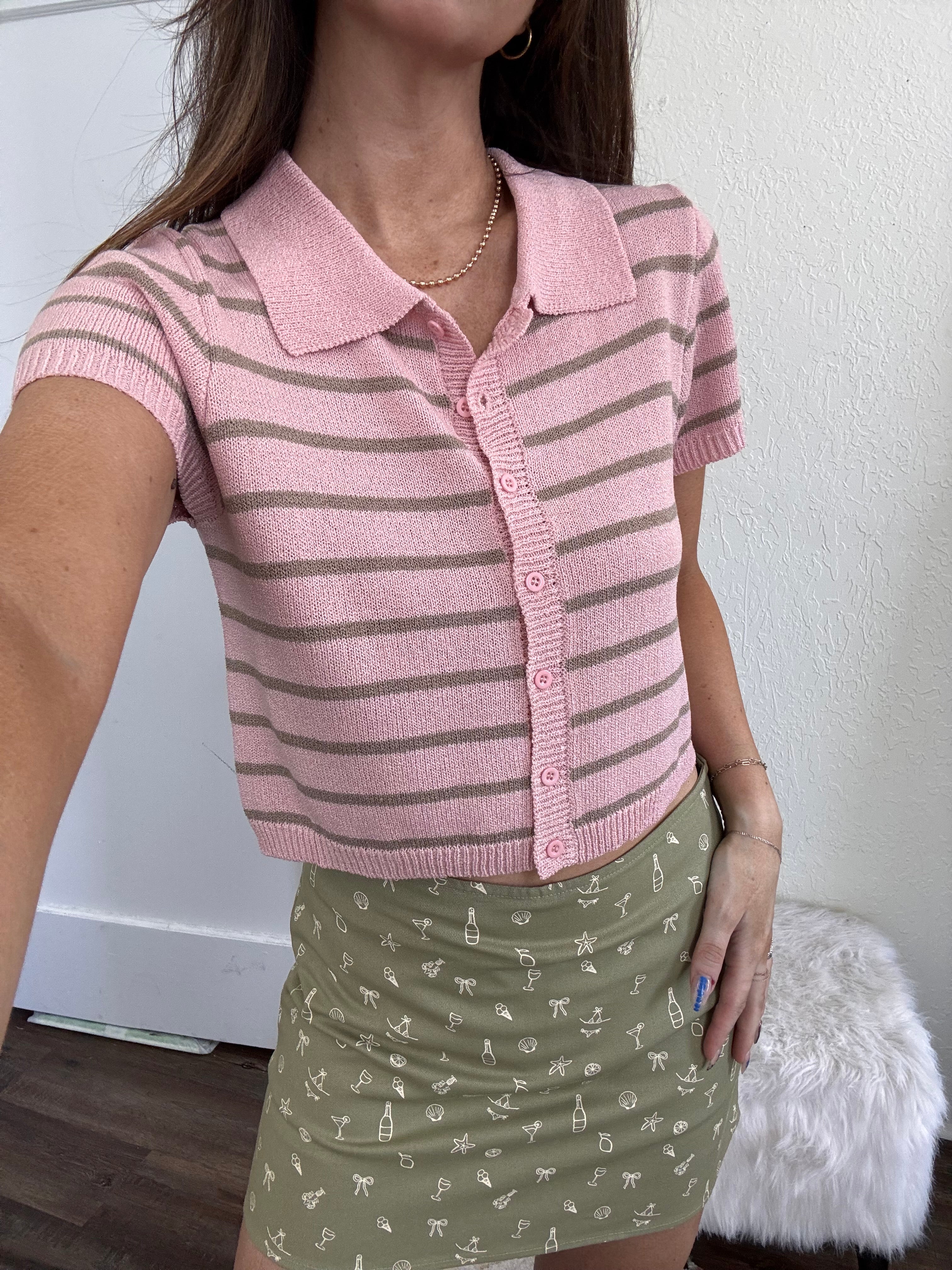 The Vera Summer Skort is your new playful-meets-polished summer staple. Made from sturdy denim in a rich olive tone, it’s covered in whimsical white martini glasses and coastal-inspired prints for a fun, vacation-ready vibe. The mini length keeps it flirty, while the built-in shorts give you total freedom to move. Finished with a hidden side zipper for a seamless fit, this skort is perfect for pairing with a breezy tank, fitted crop, or your go-to resort button-down.