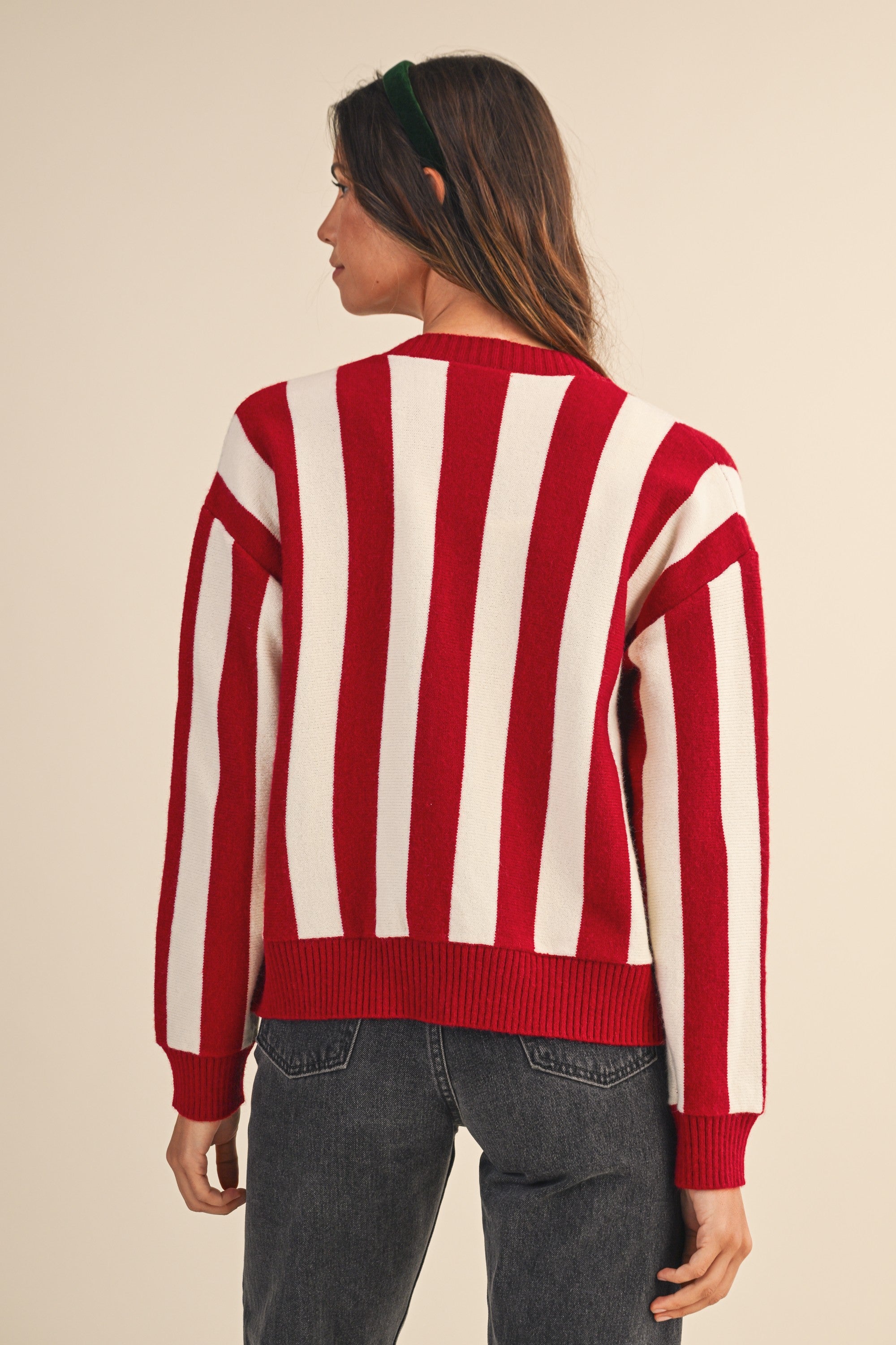 Bring holiday cheer to every outfit with the Candy Cane Cruiser Cardigan – a playful, cozy statement piece that’s made for making spirits bright! Featuring bold red and ivory stripes and adorable front pockets with vintage red trucks carrying Christmas trees, this cardigan brings nostalgic holiday charm with a trendy twist. The soft knit fabric and relaxed fit make it perfect for layering over tees, turtlenecks, or dresses for everything from tree lightings to cocoa nights. Style it with jeans and booties for a casual festive look, or dress it up with faux leather and heels for a holiday party-ready vibe. Whether you're hosting or celebrating, this cardigan is sure to be the talk of the season and a must-have for boutique holiday collections.
