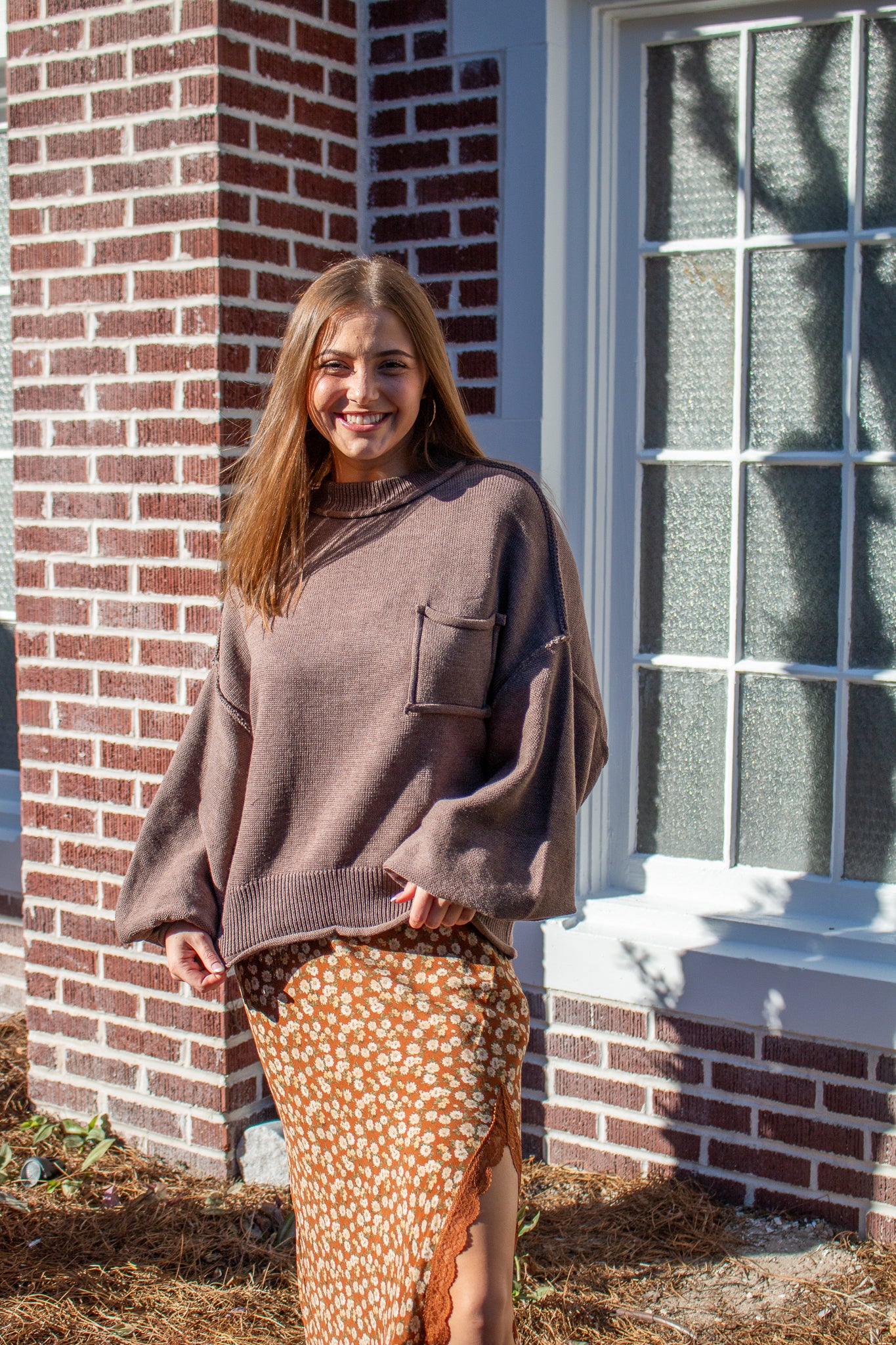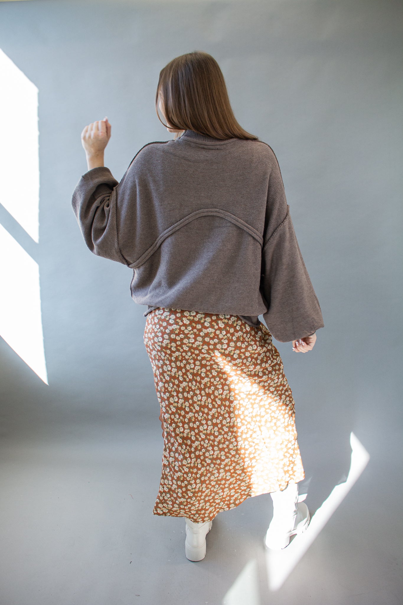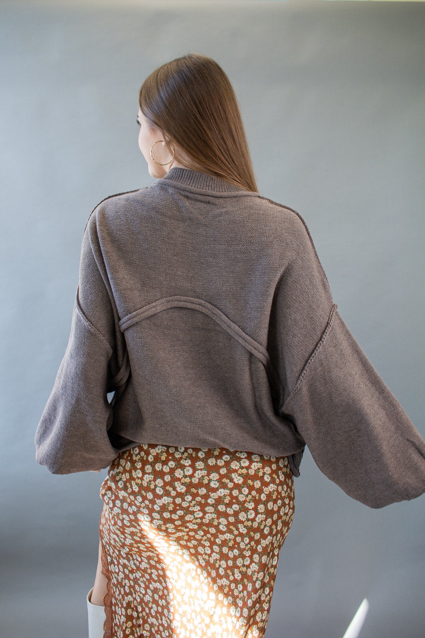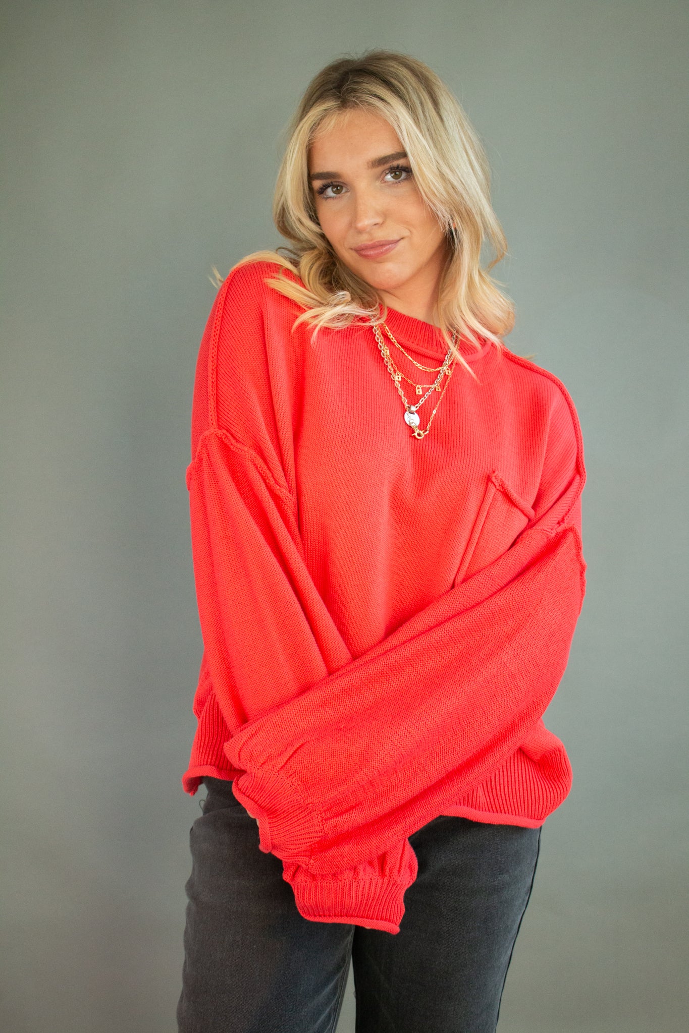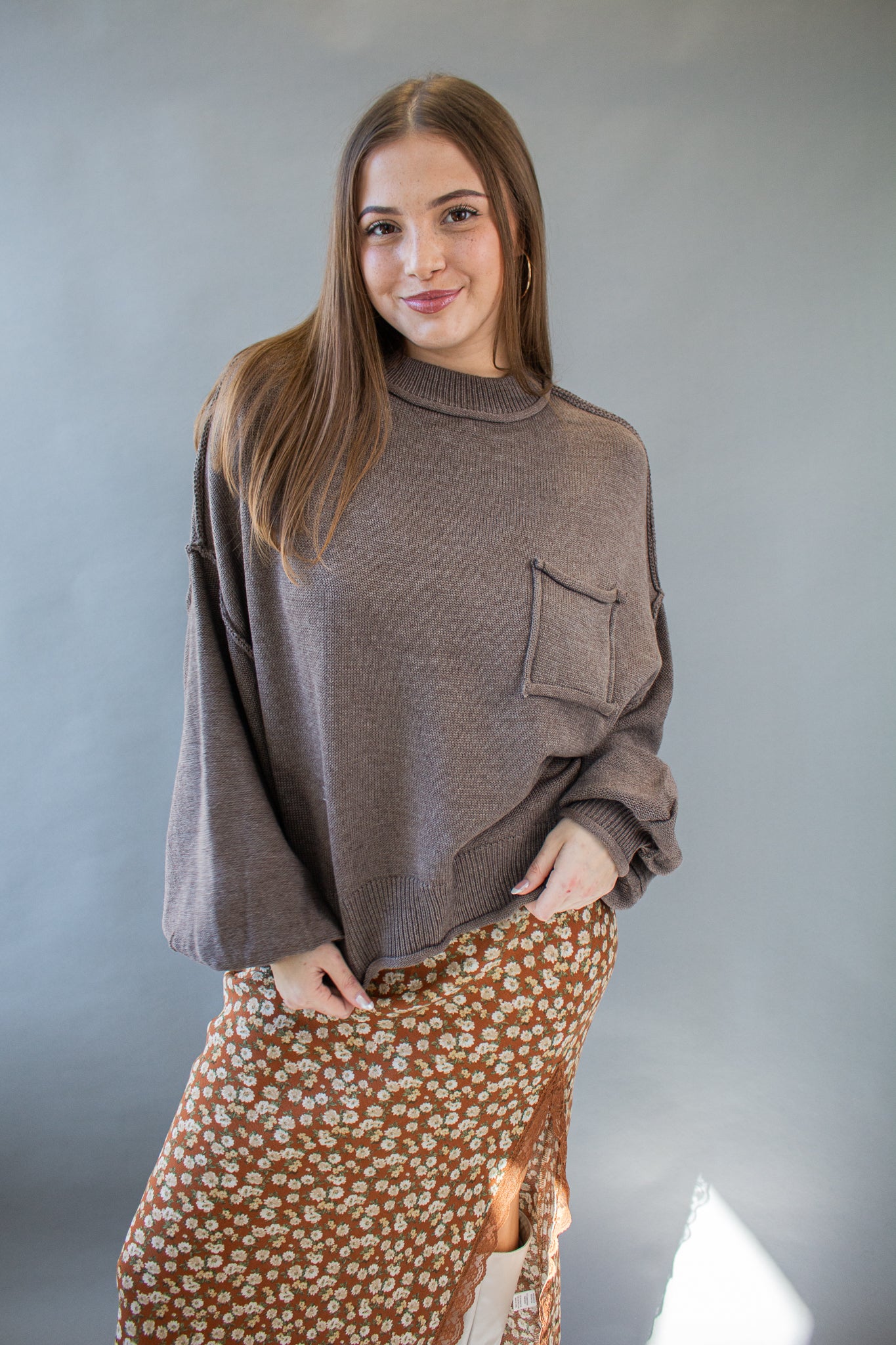 The sweater of the season, our Riva pullover features a mini mock neck, oversized drop shoulders, puffed sleeves, mid-waist hem, piped pocket details and contrast seams. Wear with denim, satin, linen and more!