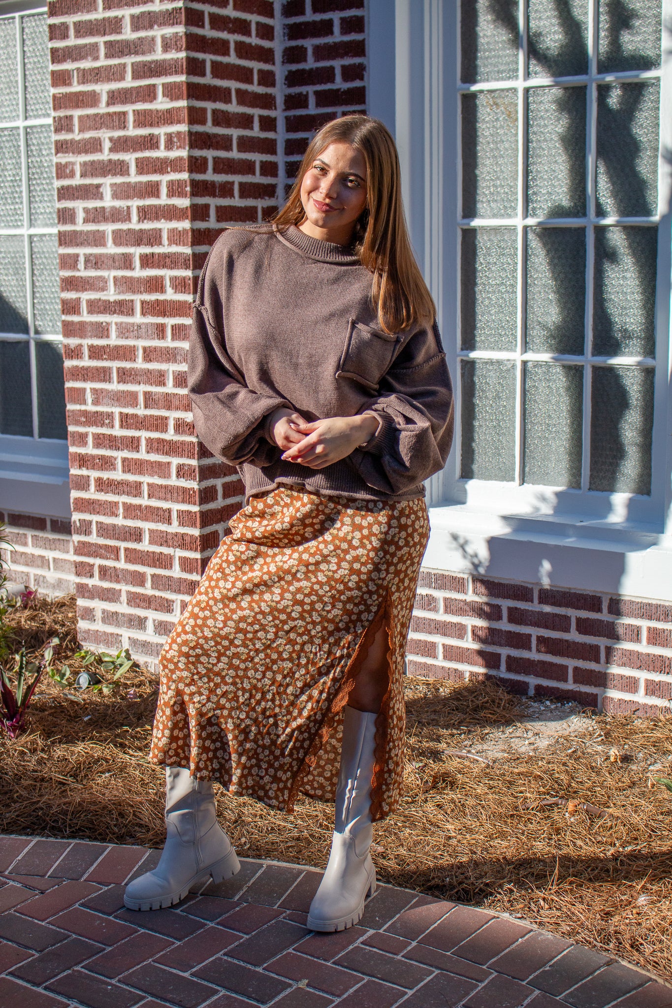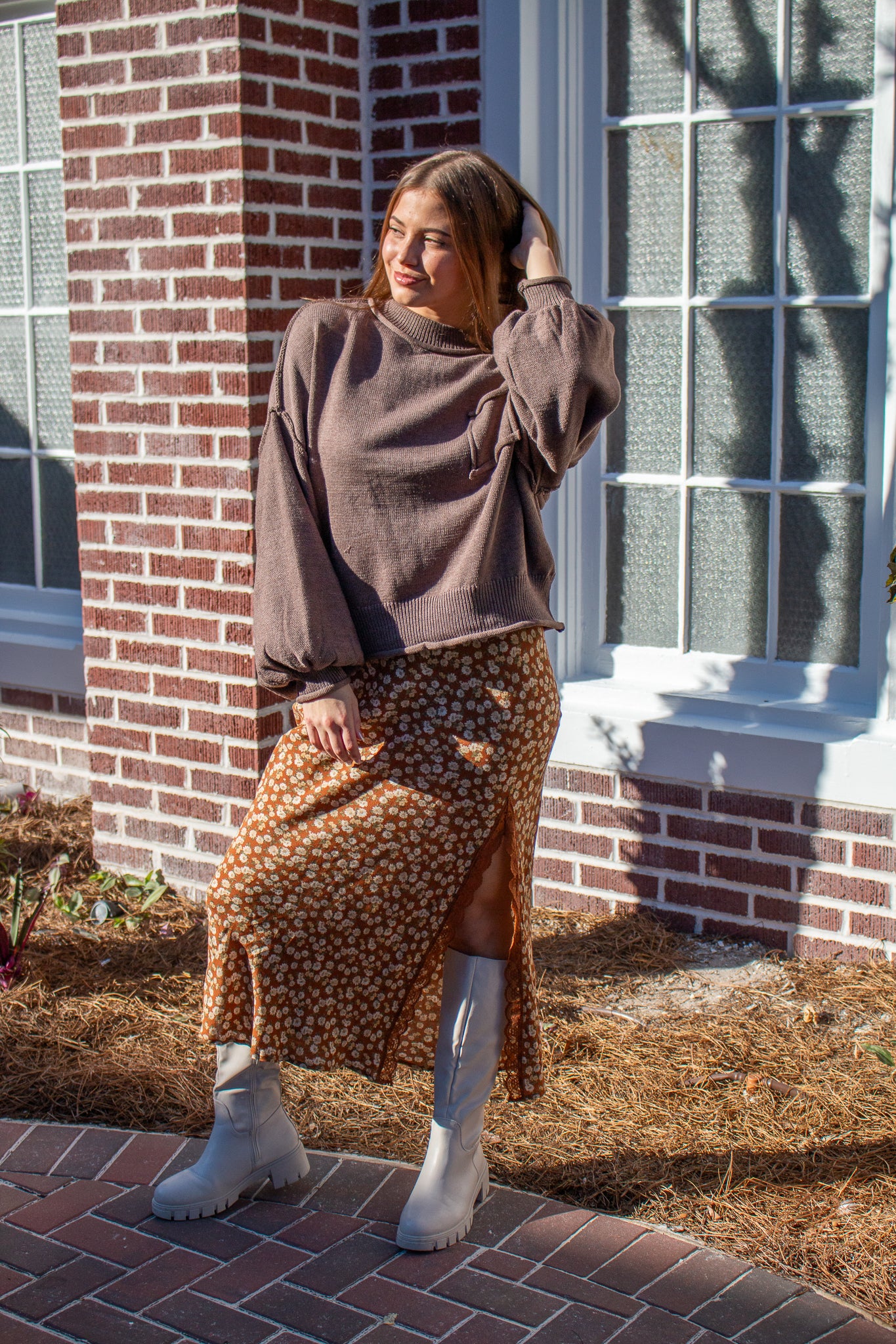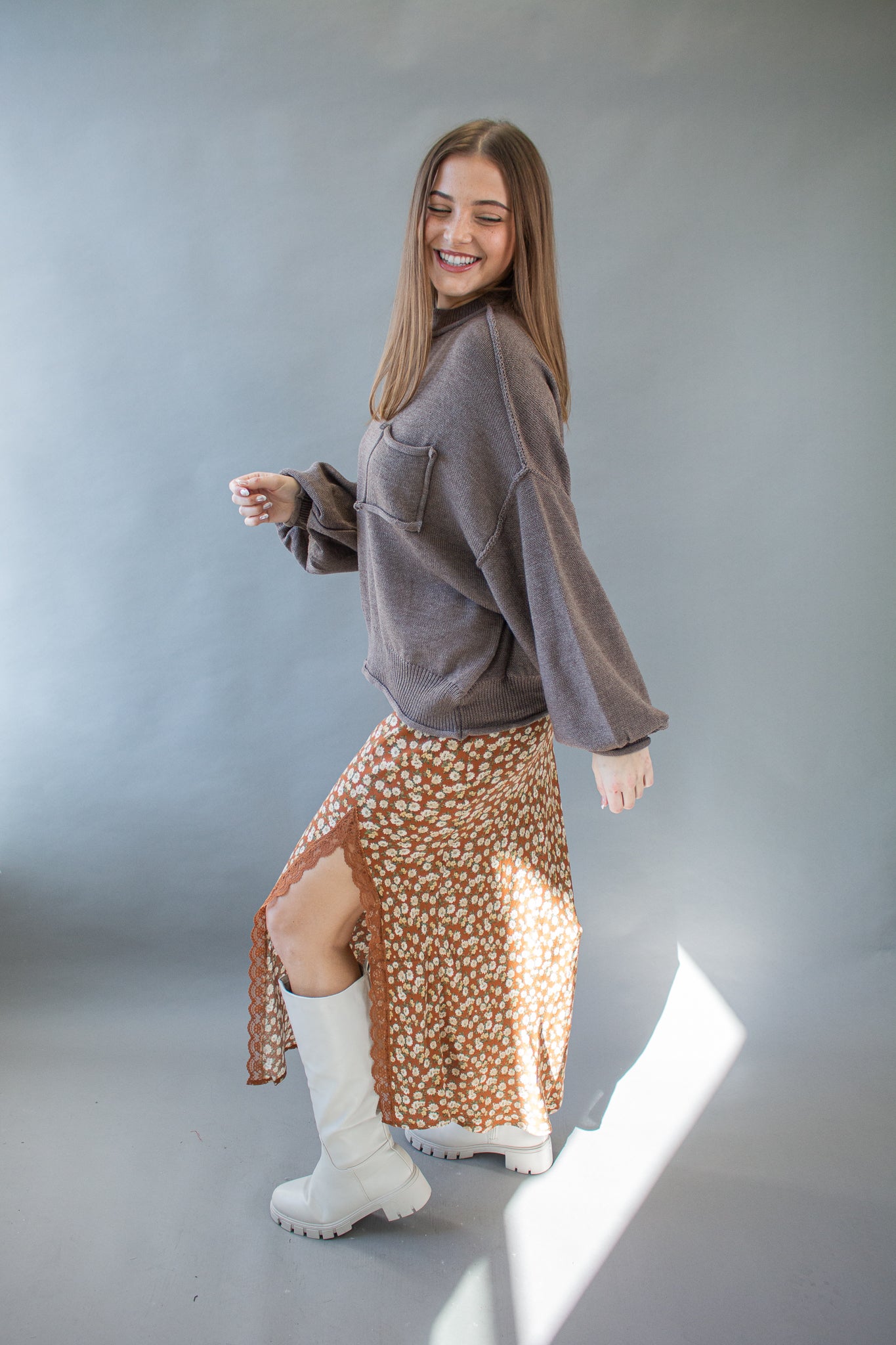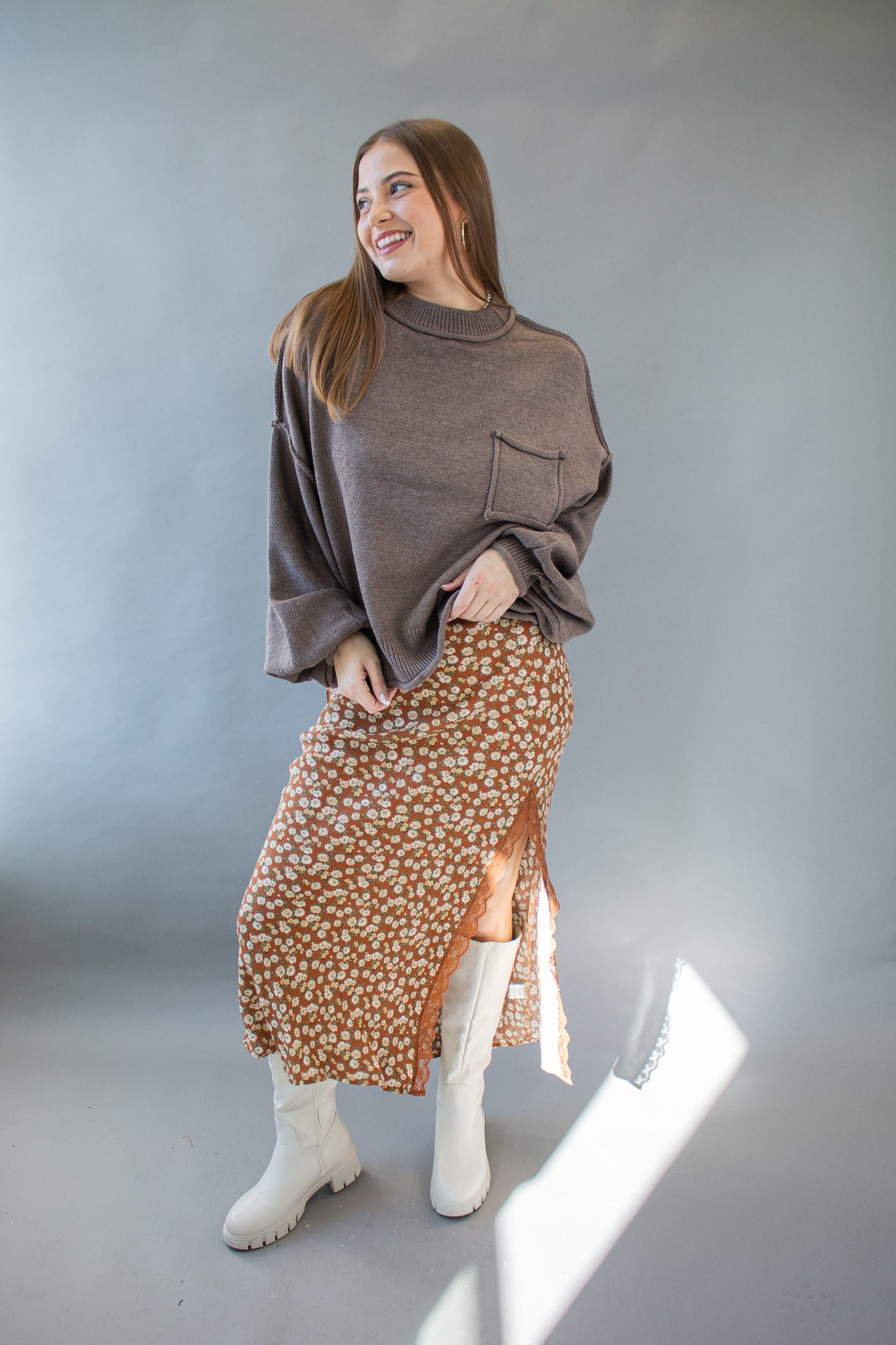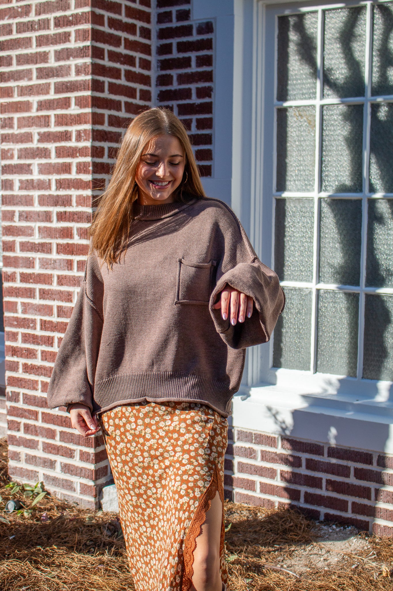 The sweater of the season, our Riva pullover features a mini mock neck, oversized drop shoulders, puffed sleeves, mid-waist hem, piped pocket details and contrast seams. Wear with denim, satin, linen and more!