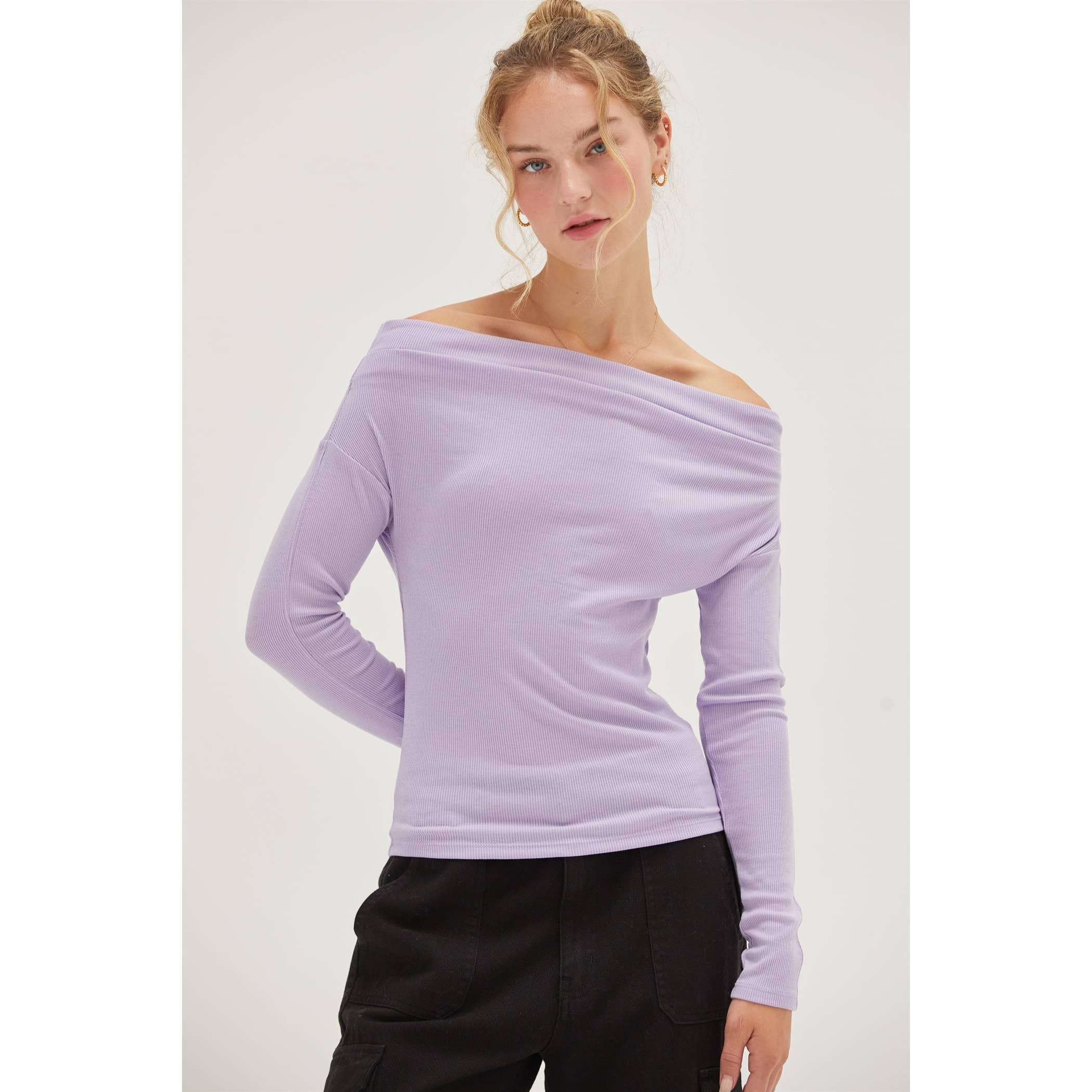 This Off-The-Shoulder Ribbed Knit Top Is A Stylish And Versatile Addition To Any Wardrobe. Crafted From A Soft, Stretchy Fabric, It Features A Flattering Off-The-Shoulder Design That Highlights The Neckline And Shoulders. The Ribbed Texture Adds A Touch Of Elegance, While The Long Sleeves Provide Warmth And Comfort. This Top Is Perfect For Both Casual And Dressier Occasions, Pairing Beautifully With Jeans, Skirts, Or Trousers. It's An Ideal Piece For Layering Or Wearing Alone, Making It A Must-Have For Your Fashion Collection.