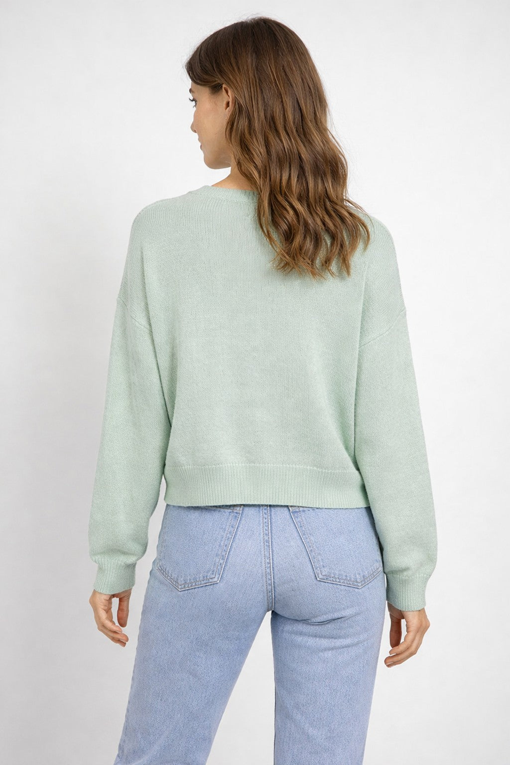 The pastel green base paired with soft blue embroidery makes it perfect for early spring layering, beach-town days, or casual weekend looks. Finished with classic ribbed trim and a comfy crew neckline, it’s the kind of piece that instantly elevates denim while still feeling laid-back.