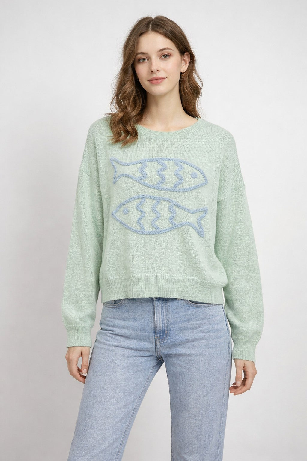 Playful meets cozy in the Two Fish Knit Sweater—a soft, lightweight knit with the sweetest embroidered fish motif front and center. Designed in a relaxed, easy fit, this sweater brings a subtle coastal charm that feels fresh, fun, and effortlessly cool.