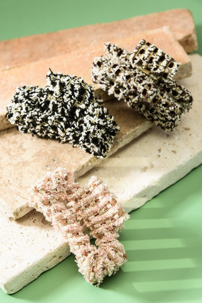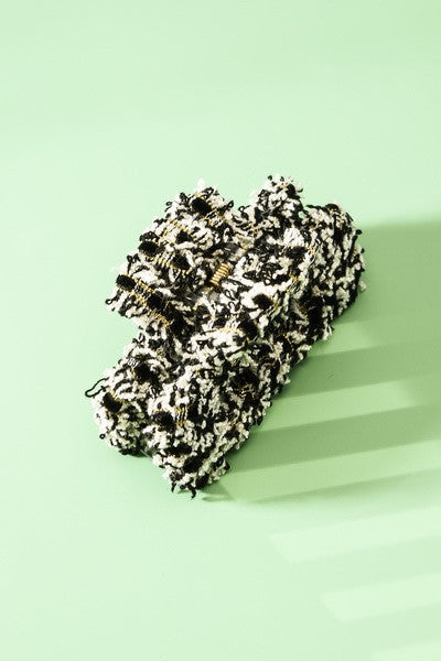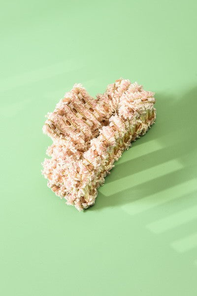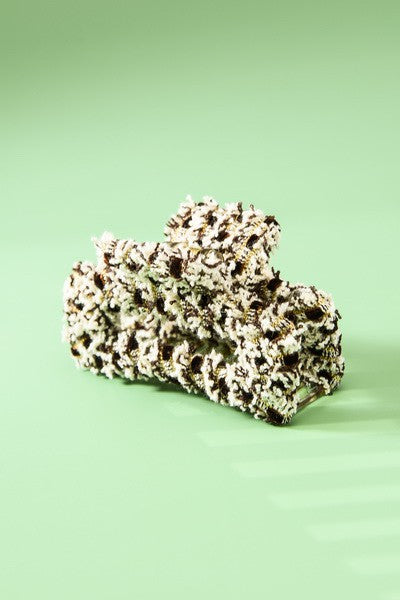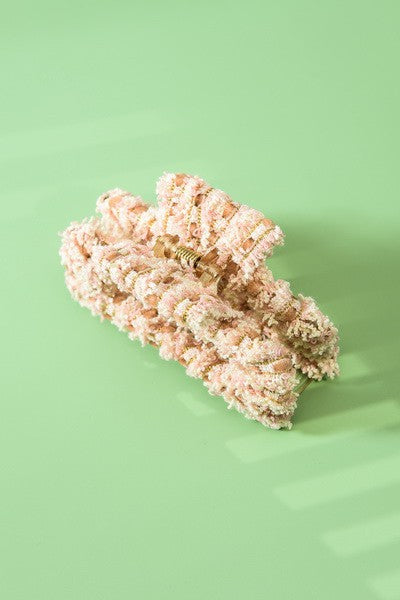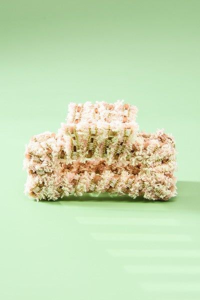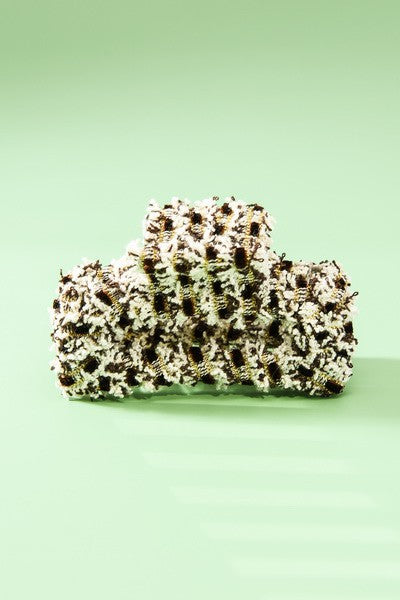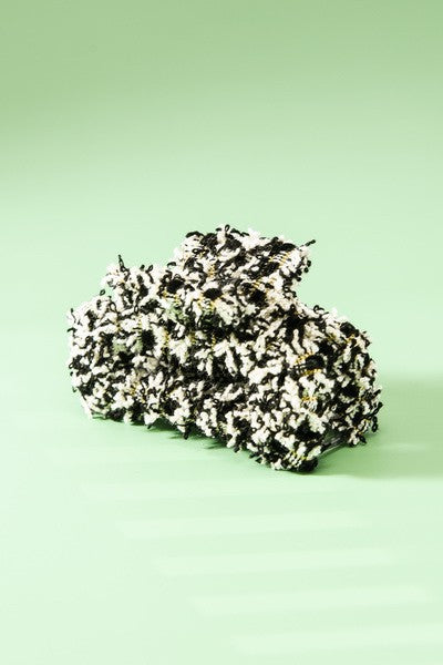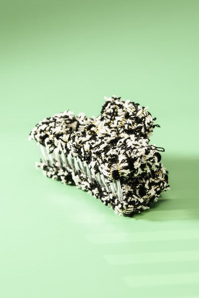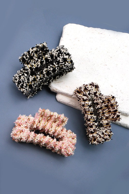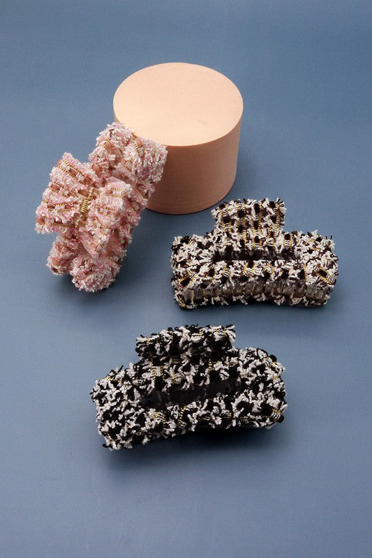 Chanel boucle Fabric-Wrapped Claw Clip for thick, thin, curly or straight hair. Providing a secure, slip-free hold with its rounded teeth, it will hold your hair in place without causing damage. DIMENSION Width: 3.5" length: 1.75"