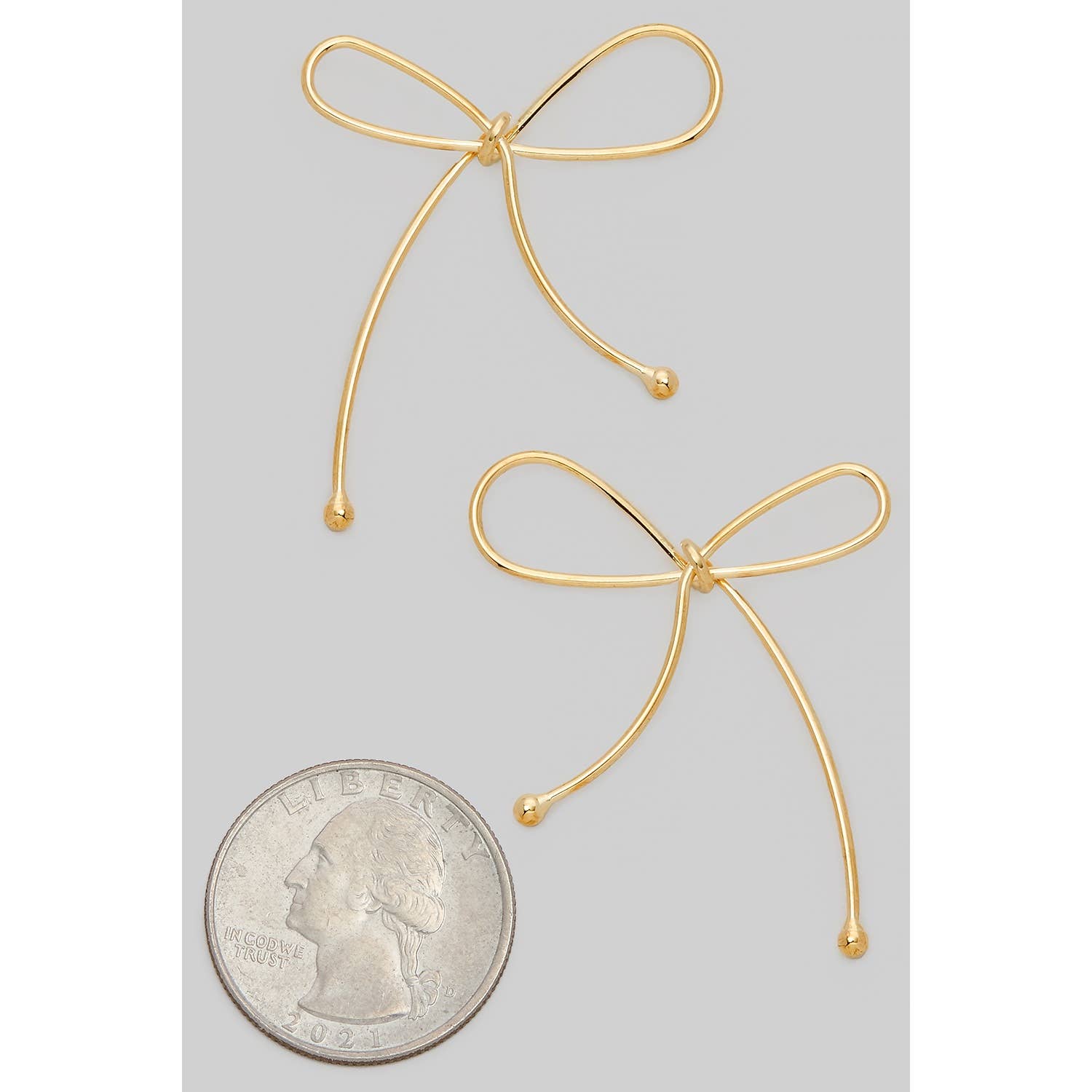 Make a statement with our stunning **Bow Drop Earrings**. Featuring a chic bow design and a length of 1 7/8", these earrings add a playful yet sophisticated touch to any outfit. Perfect for elevating your everyday look or enhancing a special occasion ensemble.