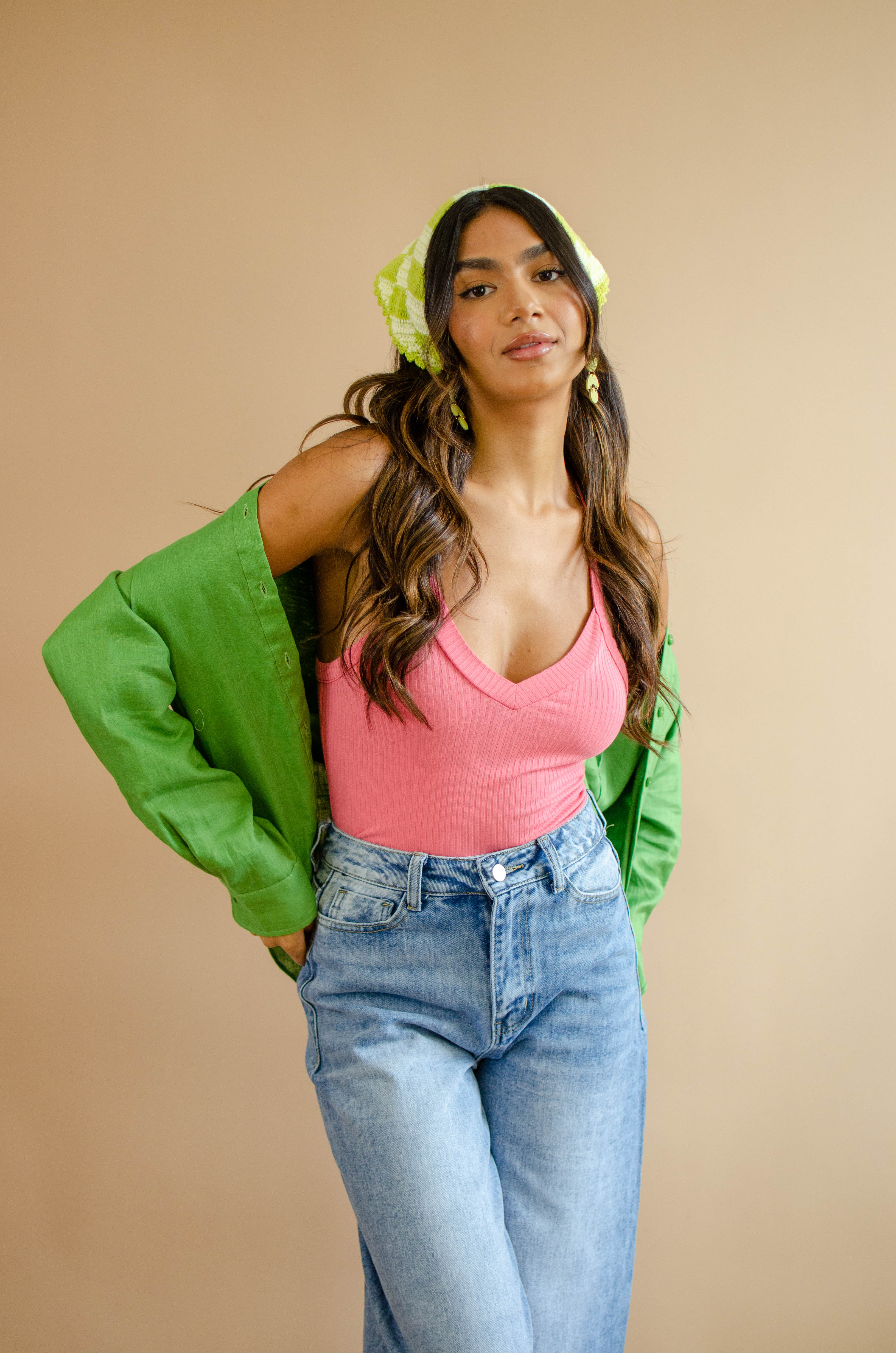 Our Candice Tank is a summer-fall staple. Perfect for making that transition from hot to cool weather. Features a v-neckline, deep V strap back, ribbed texture, lightweight fit, full length hem and bold color. Pair with shackets, blazers, denim and more!