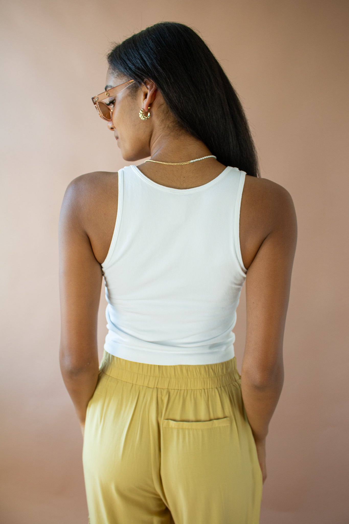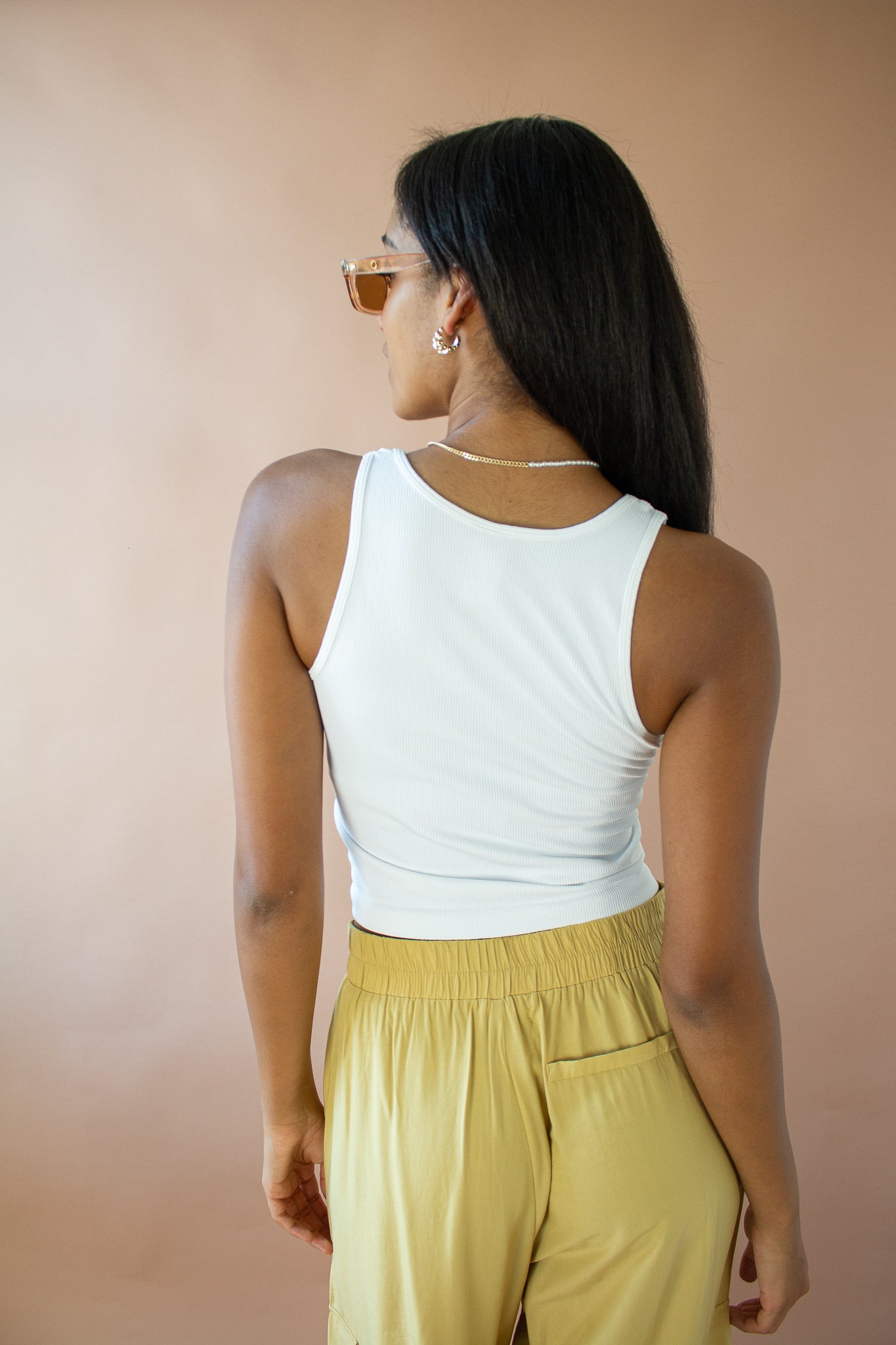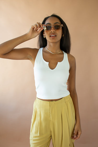 Cecily Ribbed Notch Crop Top White