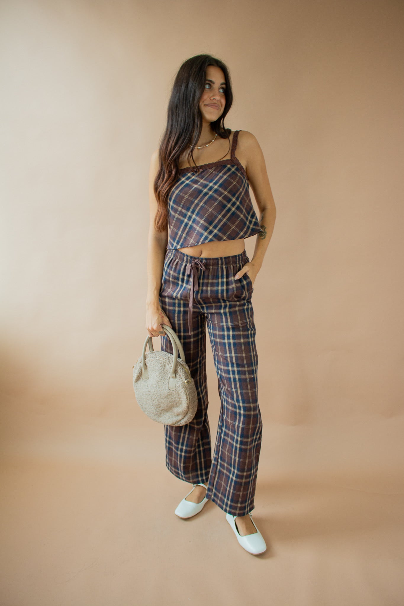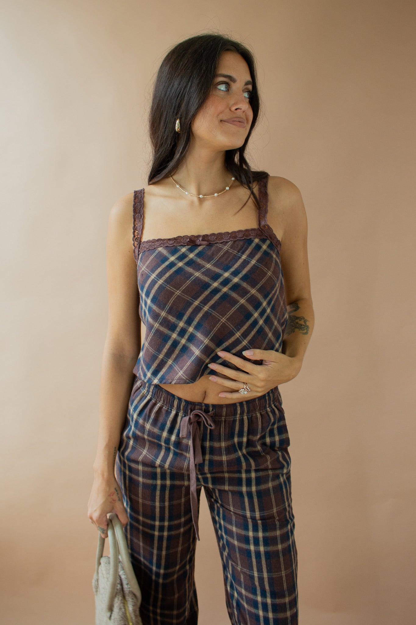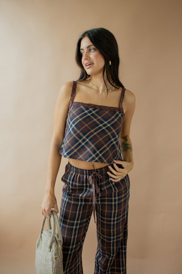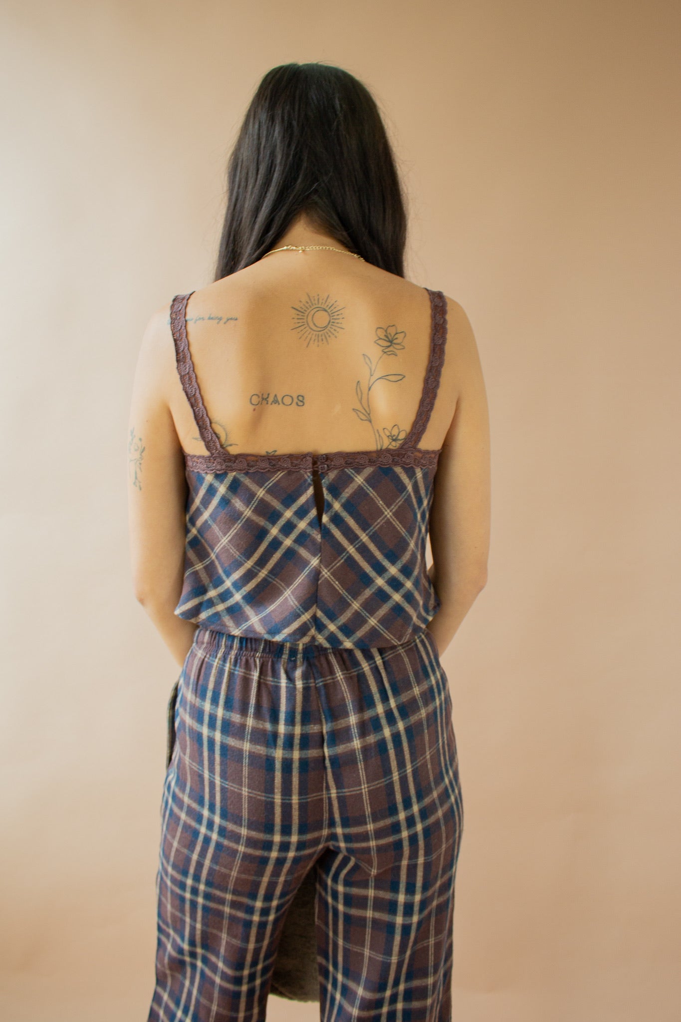 Our Cheryl Tank features a straight neckline, thin straps, lightweight woven fabric, cropped hem and delicate lace trim. Pair with the matching pants (sold separate) or denim shorts and a shacket! We love how neutral and versatile this tank is.