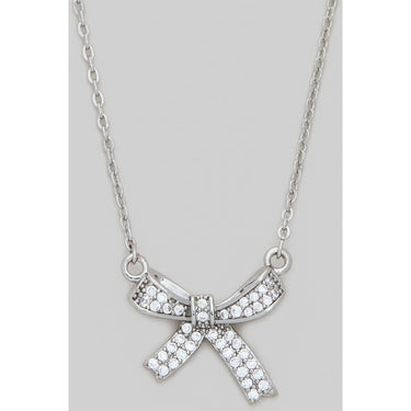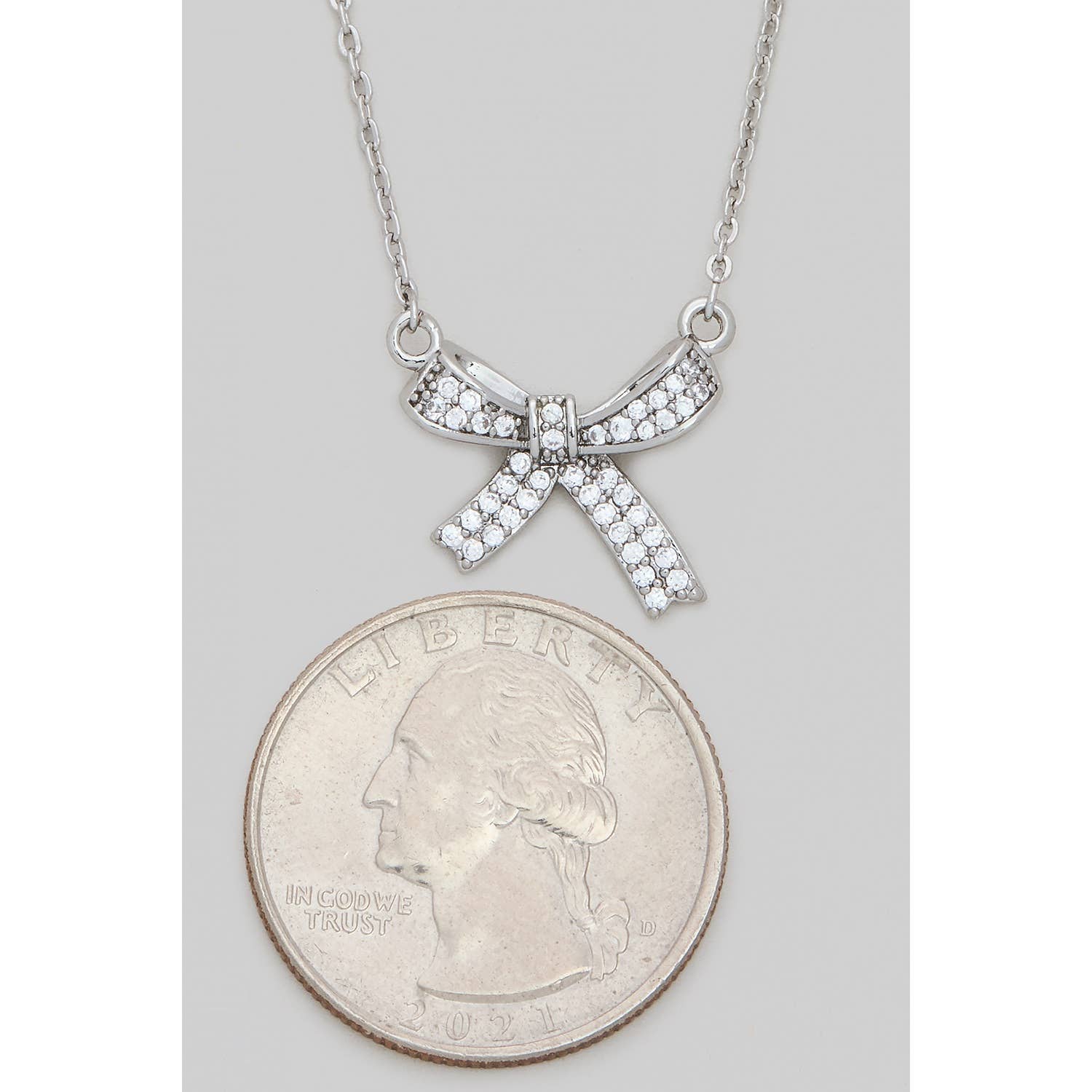 CZ BOW PENDANT NECKLACE. LENGTH 16+3"