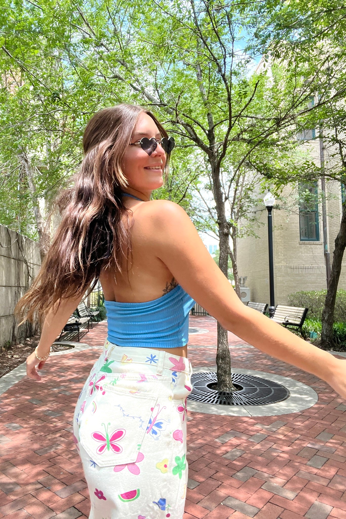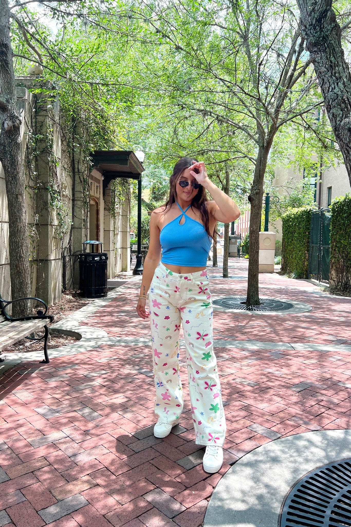 An easy go-to piece, perfect for hot summer days. Our Erin top features a halter style neckline with adjustable tie straps, mini loop cutout detail, open back, ribbed texture and cropped hem. Layer with linen pants, flowy skirts, denim shorts and more.