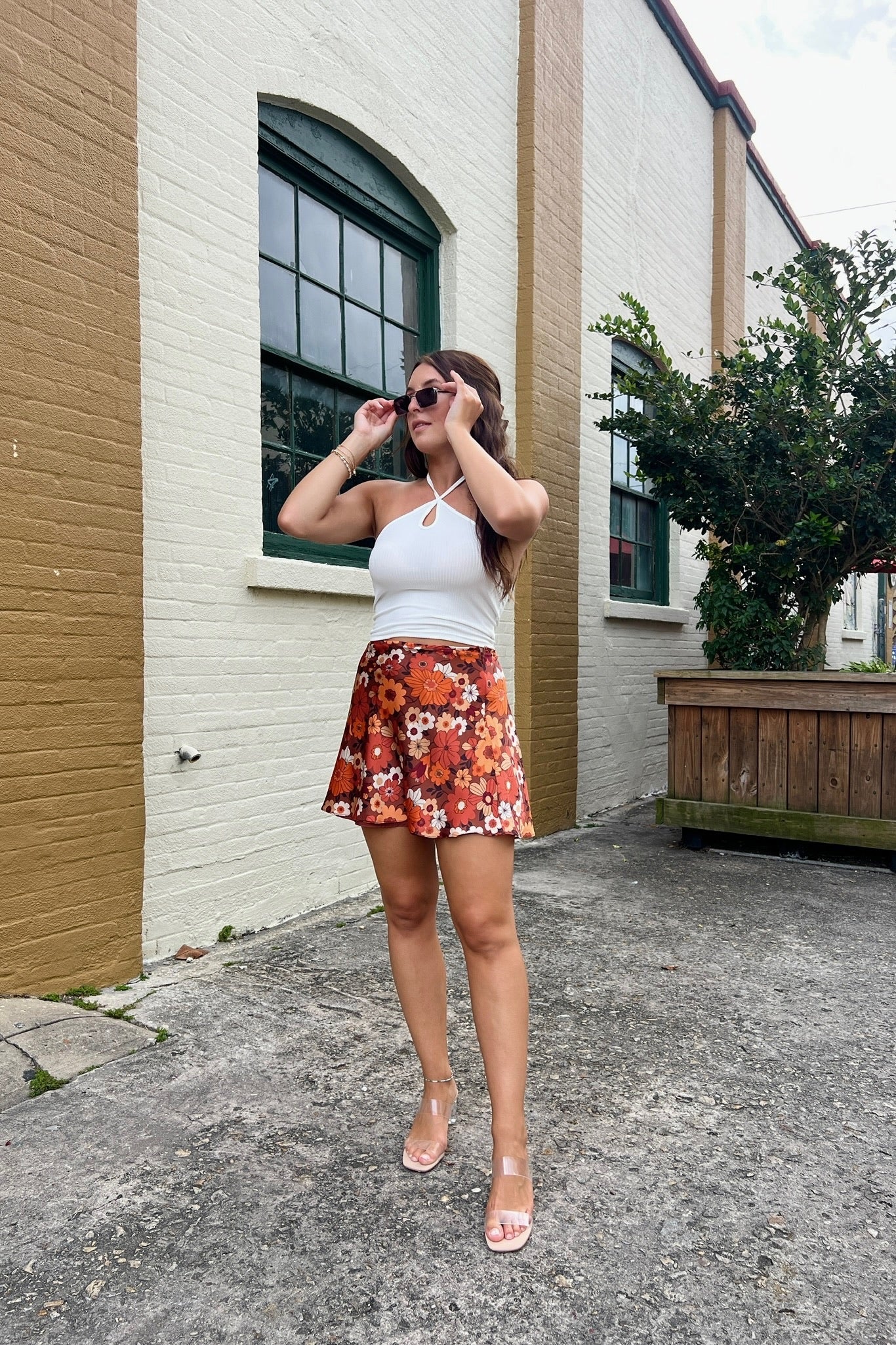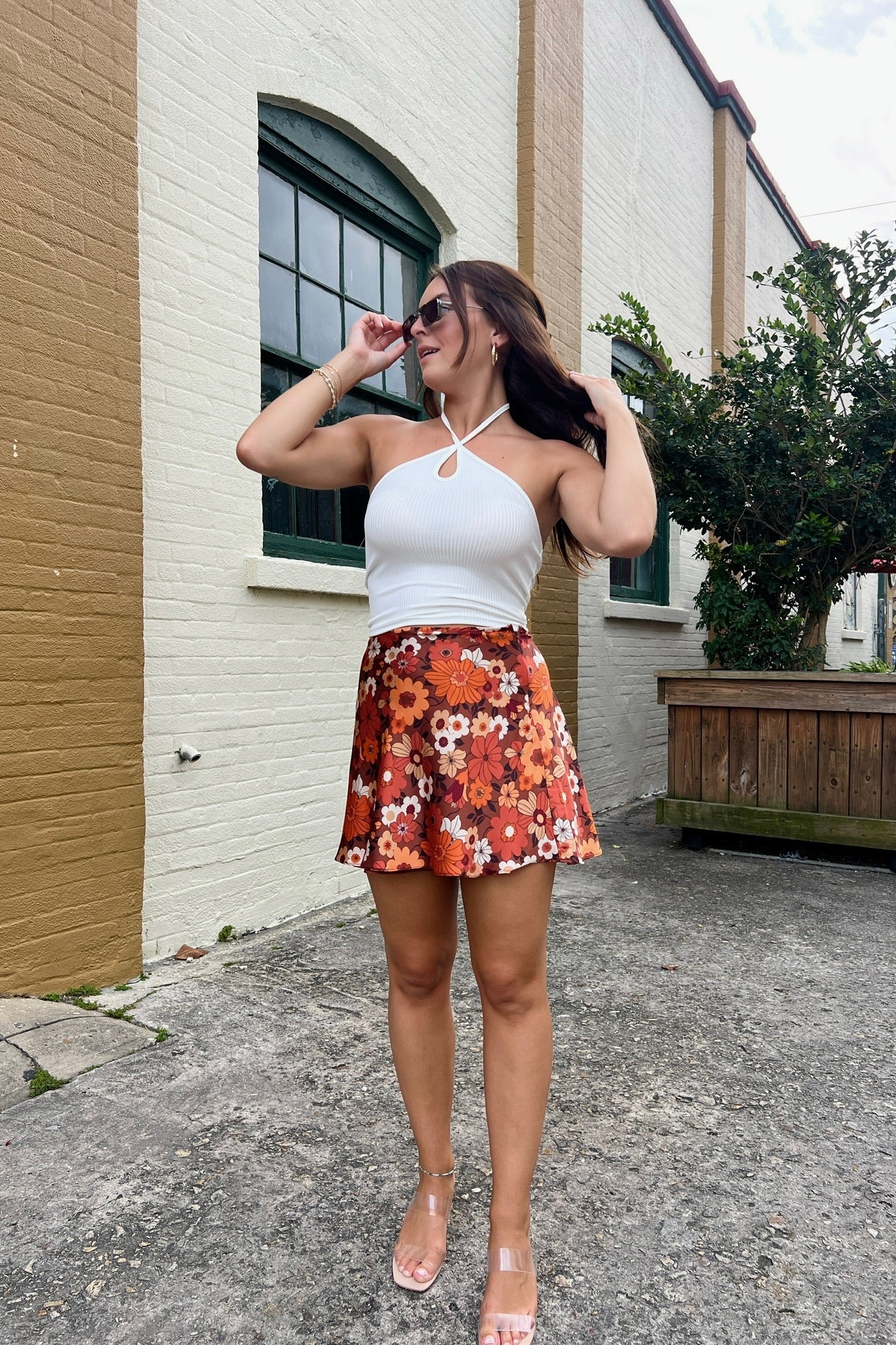 An easy go-to piece, perfect for hot summer days. Our Erin top features a halter style neckline with adjustable tie straps, mini loop cutout detail, open back, ribbed texture and cropped hem. Layer with linen pants, flowy skirts, denim shorts and more.