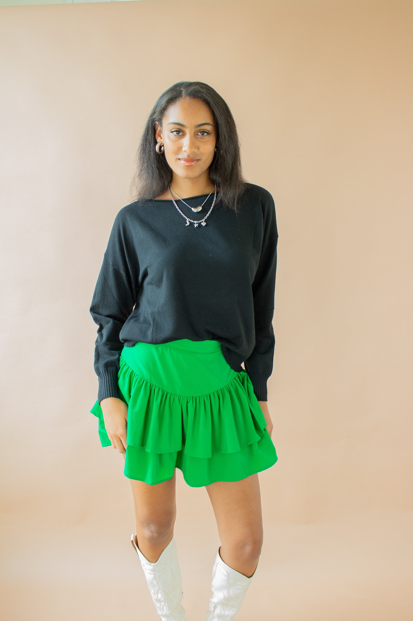 Love a good mini skirt? Be ready to fall in LOVE with our Game Day skort. Features a fun flirty double ruffle ruffle and built in shorts for extra coverage and mobility. We love the high rise drop waist, zipper closure and ruffle details. Pair with all your favorite tops, shackets and tees!