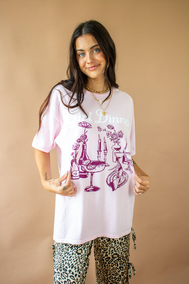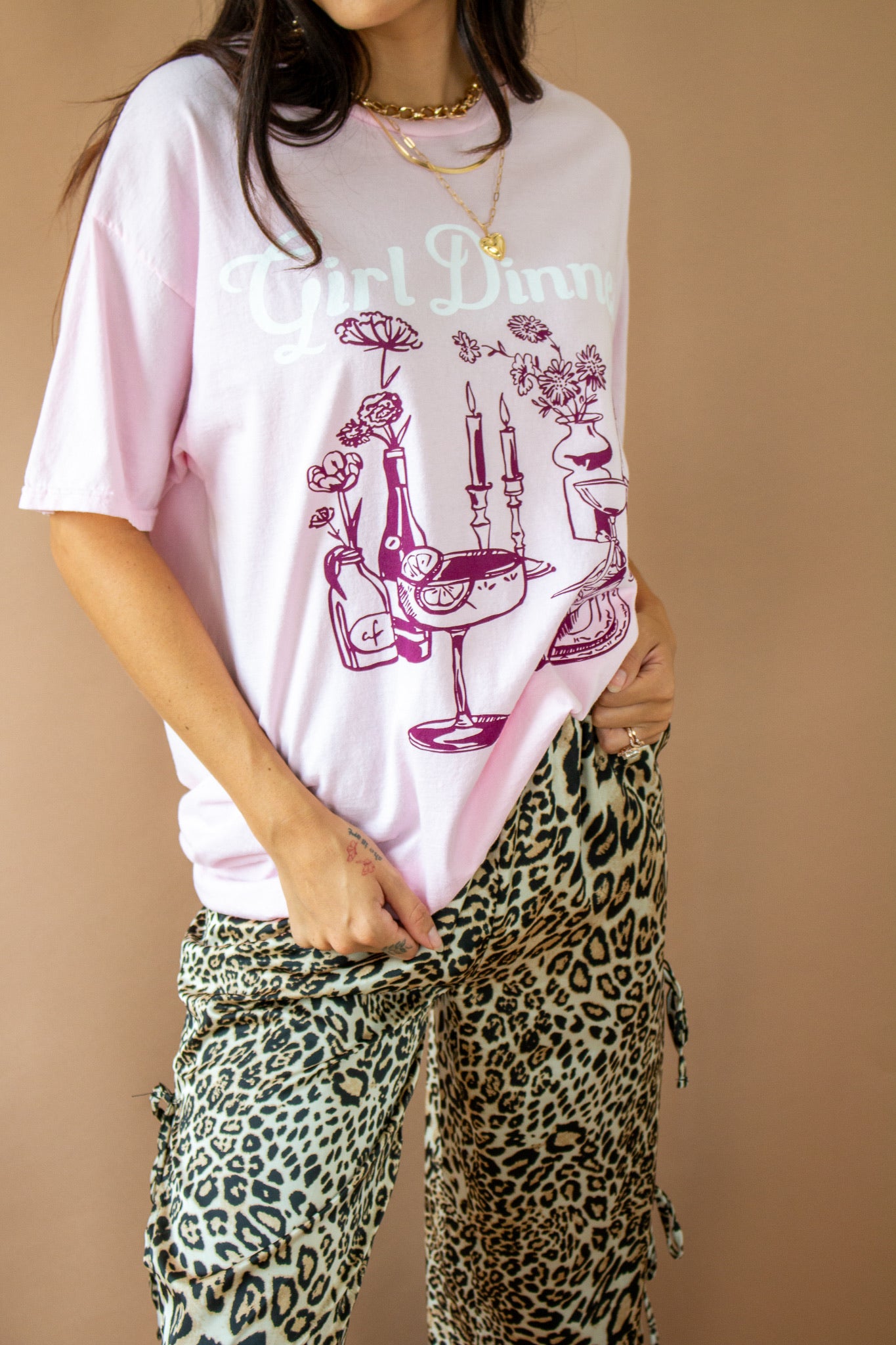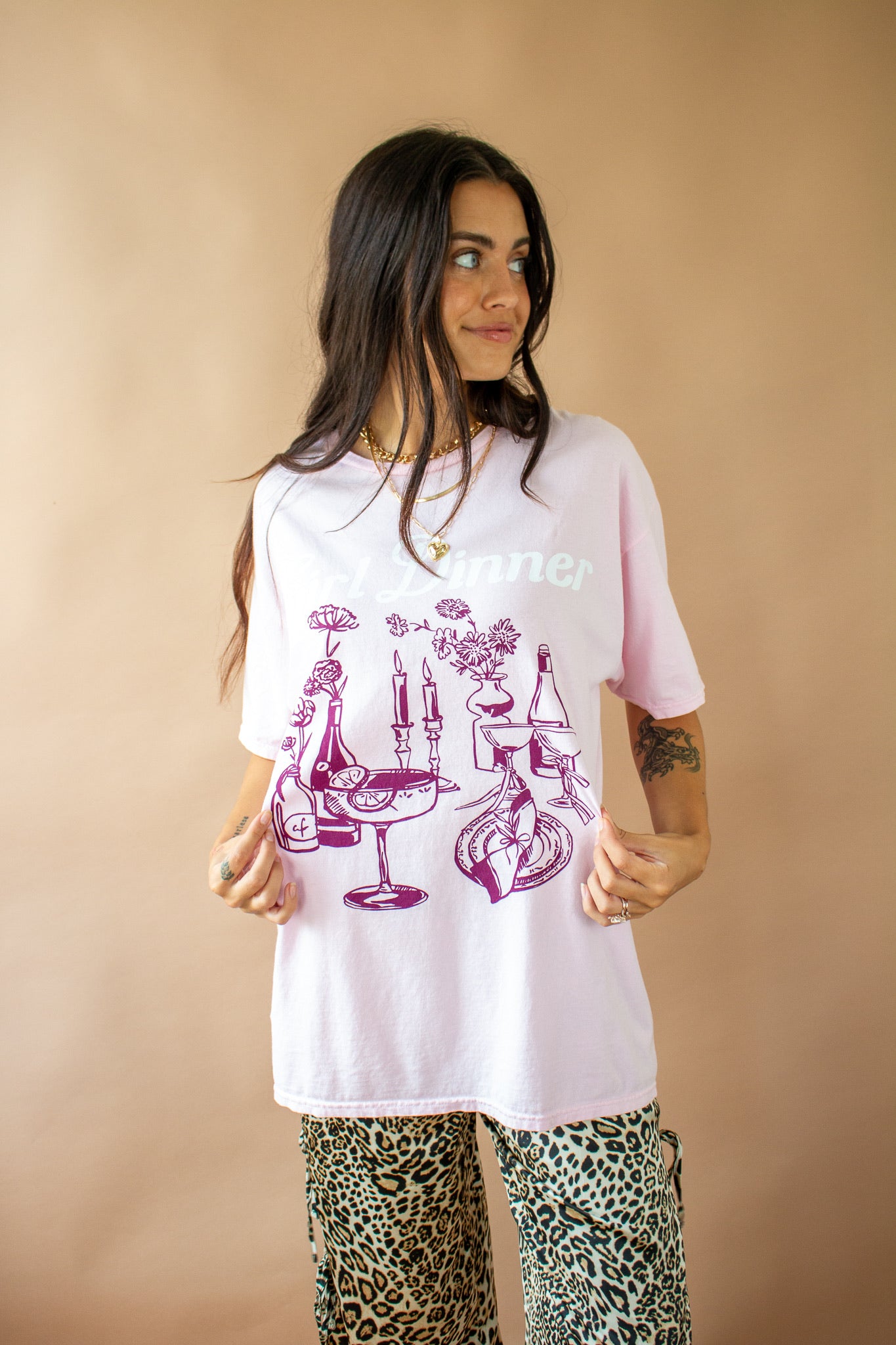 Girl Dinner, ohhh girl dinner....This tee features a snack staple graphic on a lightweight oversized fit tee, perfect for couch lounging, girls night in or layered with your favorite swim.