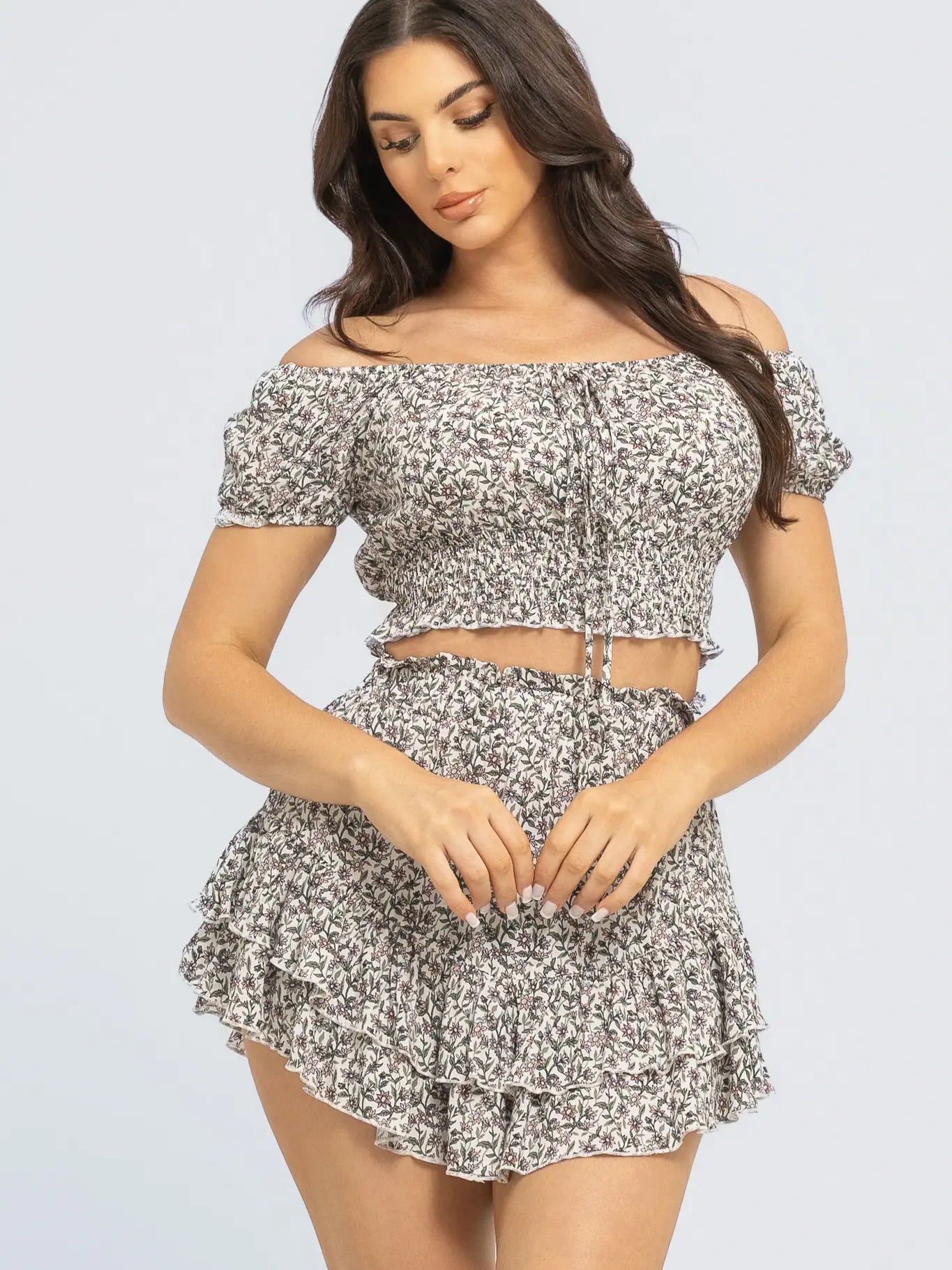 The Lila Floral Ruffle Mini Skirt is the perfect blend of playful and feminine. With an easy elastic waistband and tiers of soft ruffles, this mini is made for sunny days and summer nights. Wear it solo with a tank or style it with the matching shirred top for the full look.