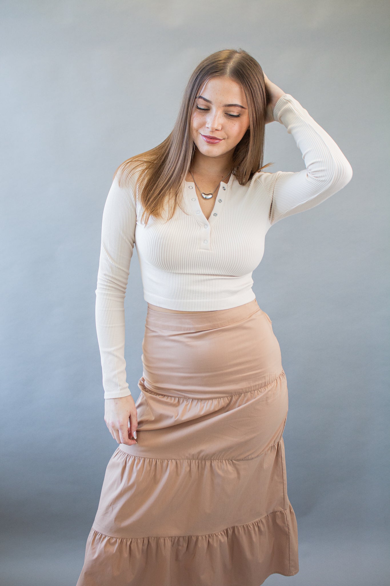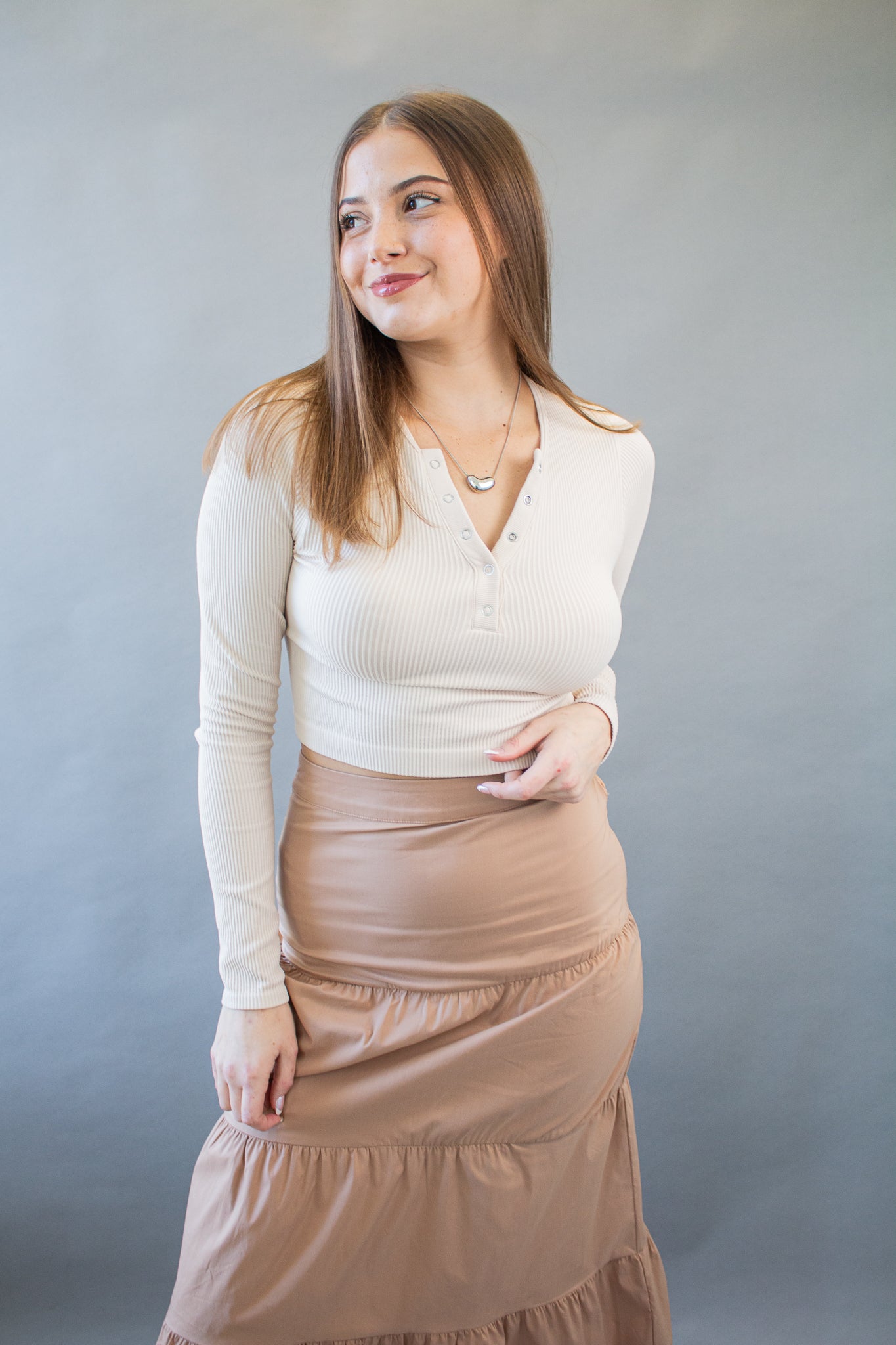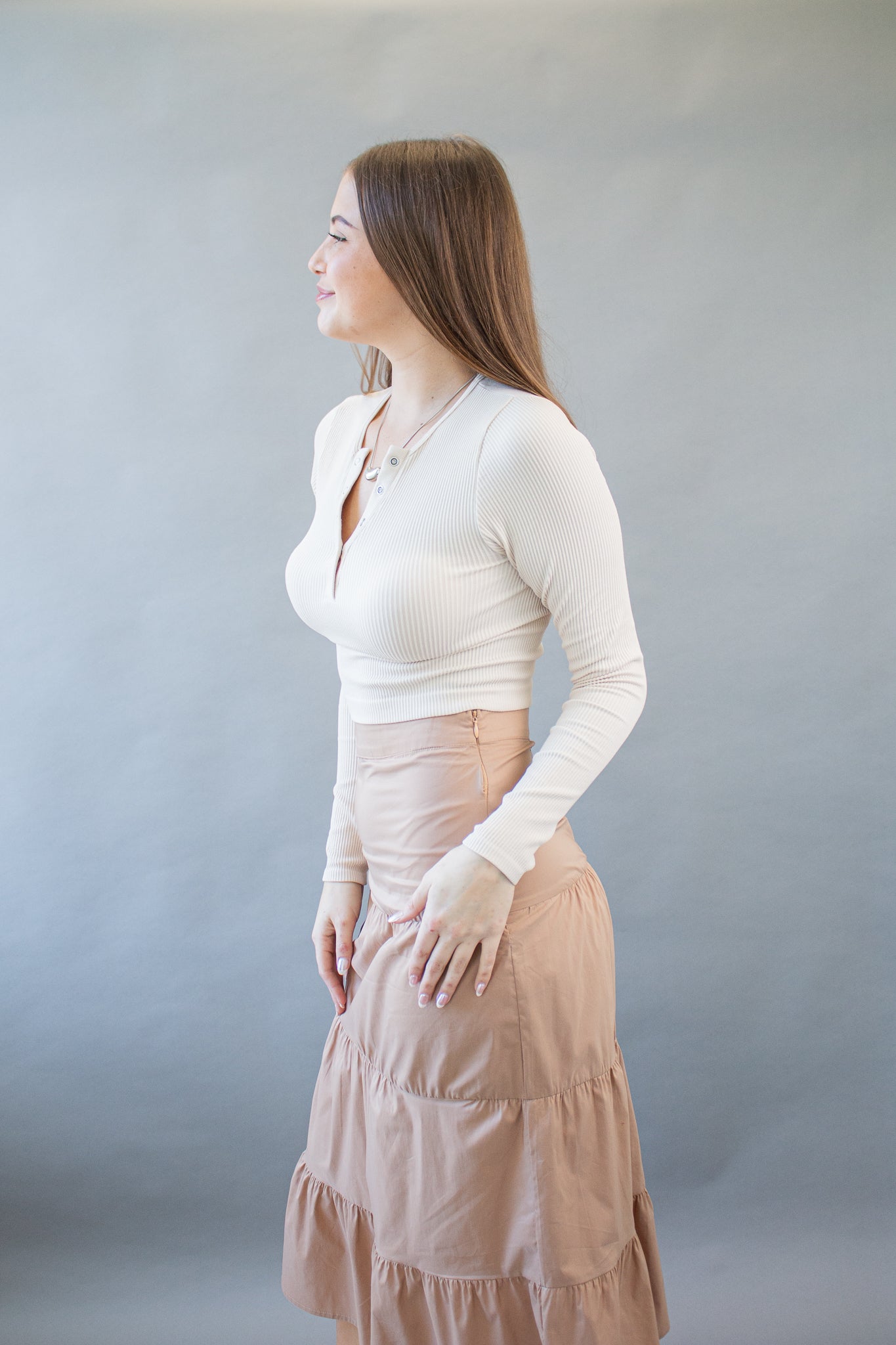Easy comfy Casual Fitted Crop Henley Knit Top