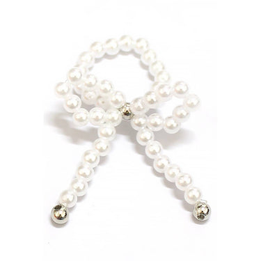 PEARL BEADED BOW RING. SIZE 6. A delicate pearl beaded bow ring, combining elegance and charm. The soft, shimmering pearls paired with a stylish bow design make this ring a perfect accessory for adding a feminine, timeless touch.