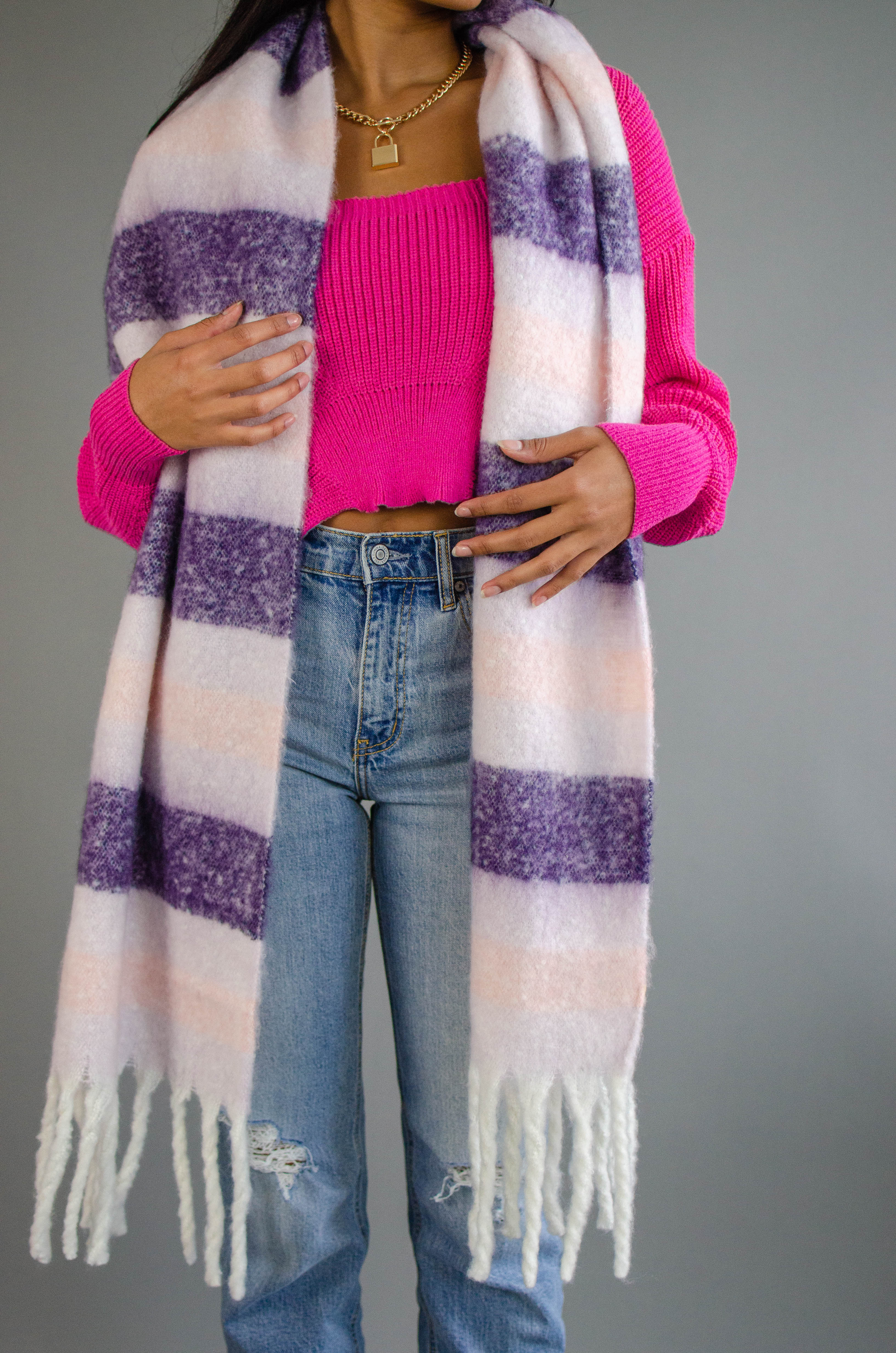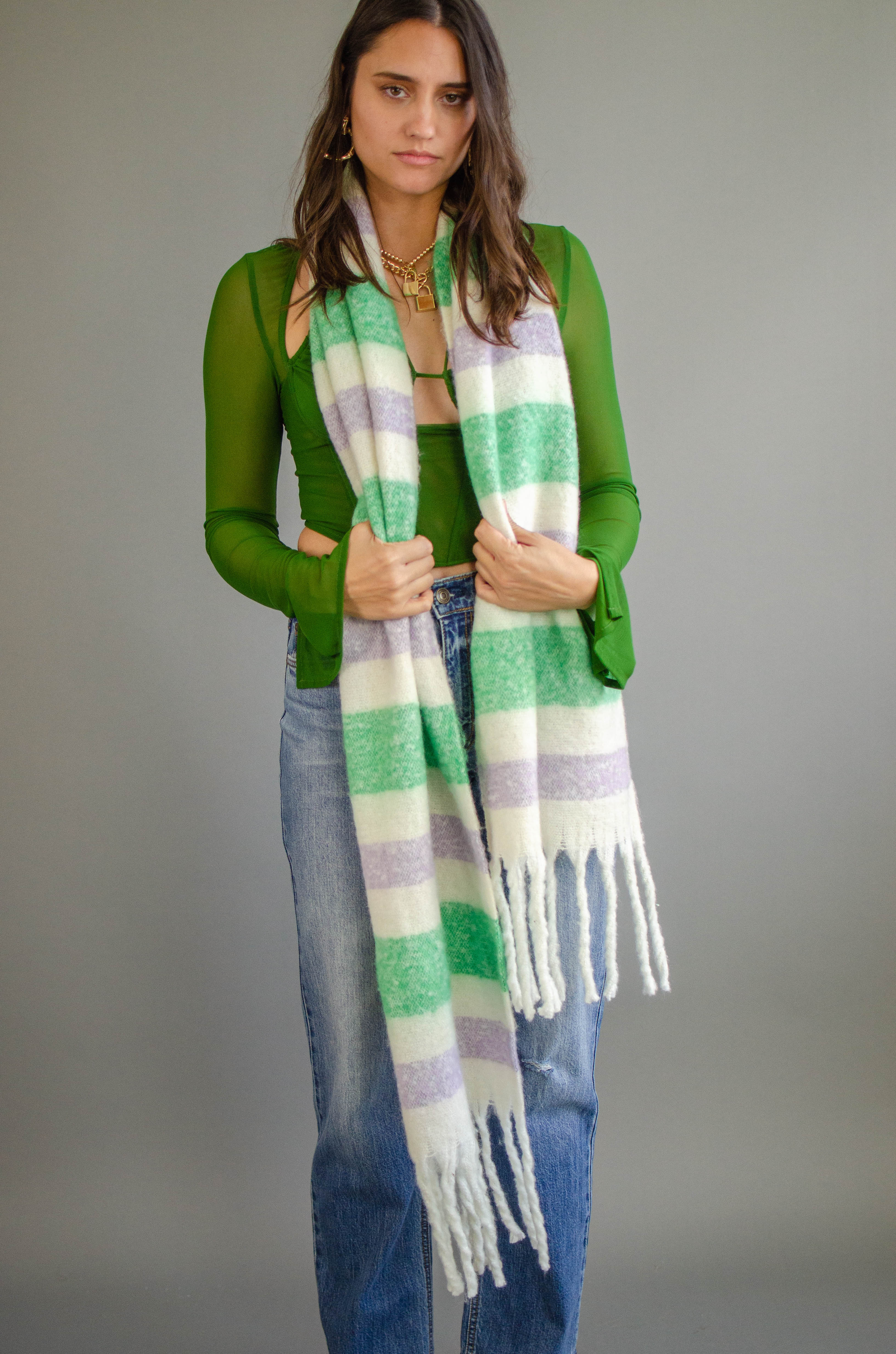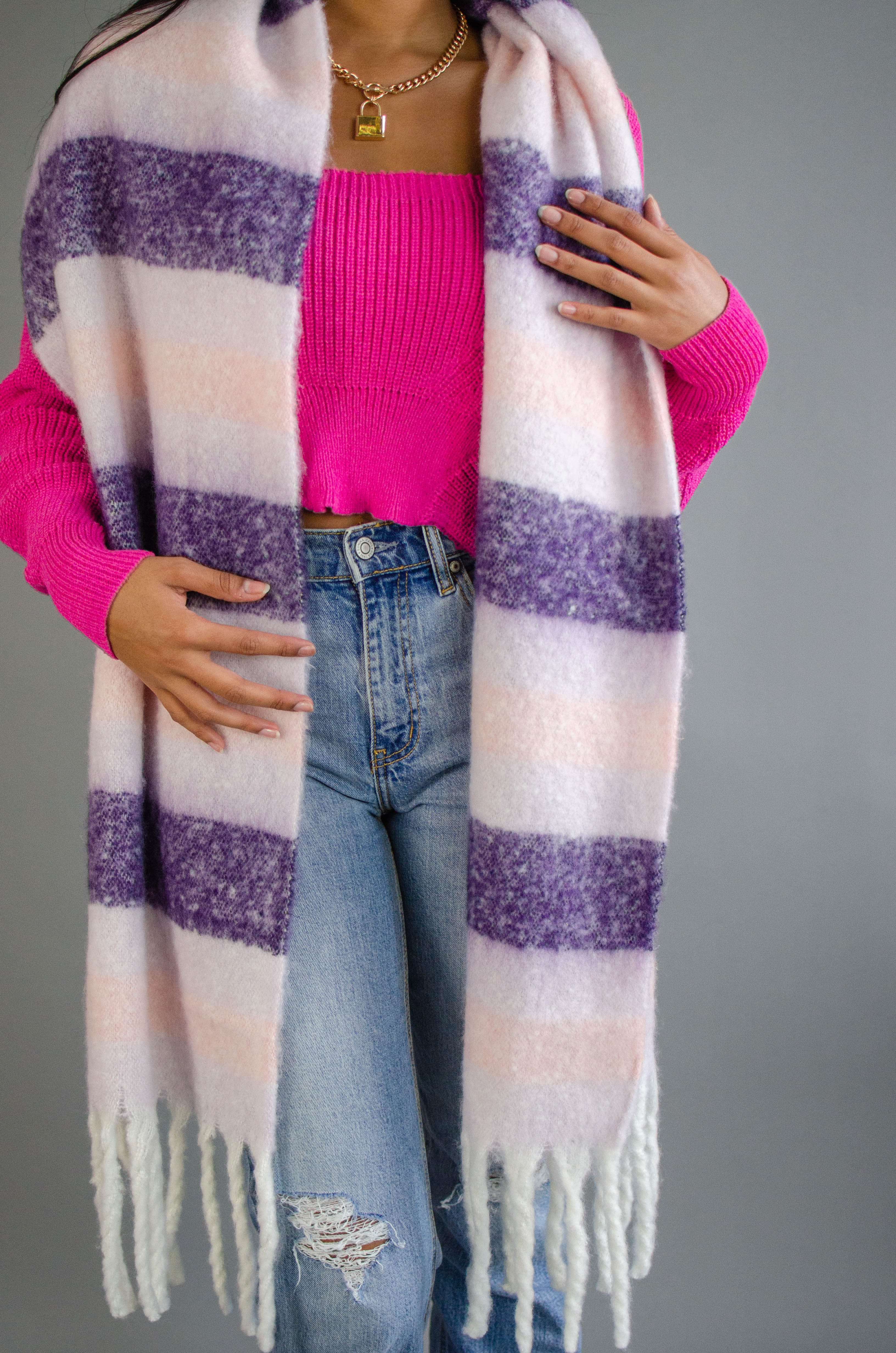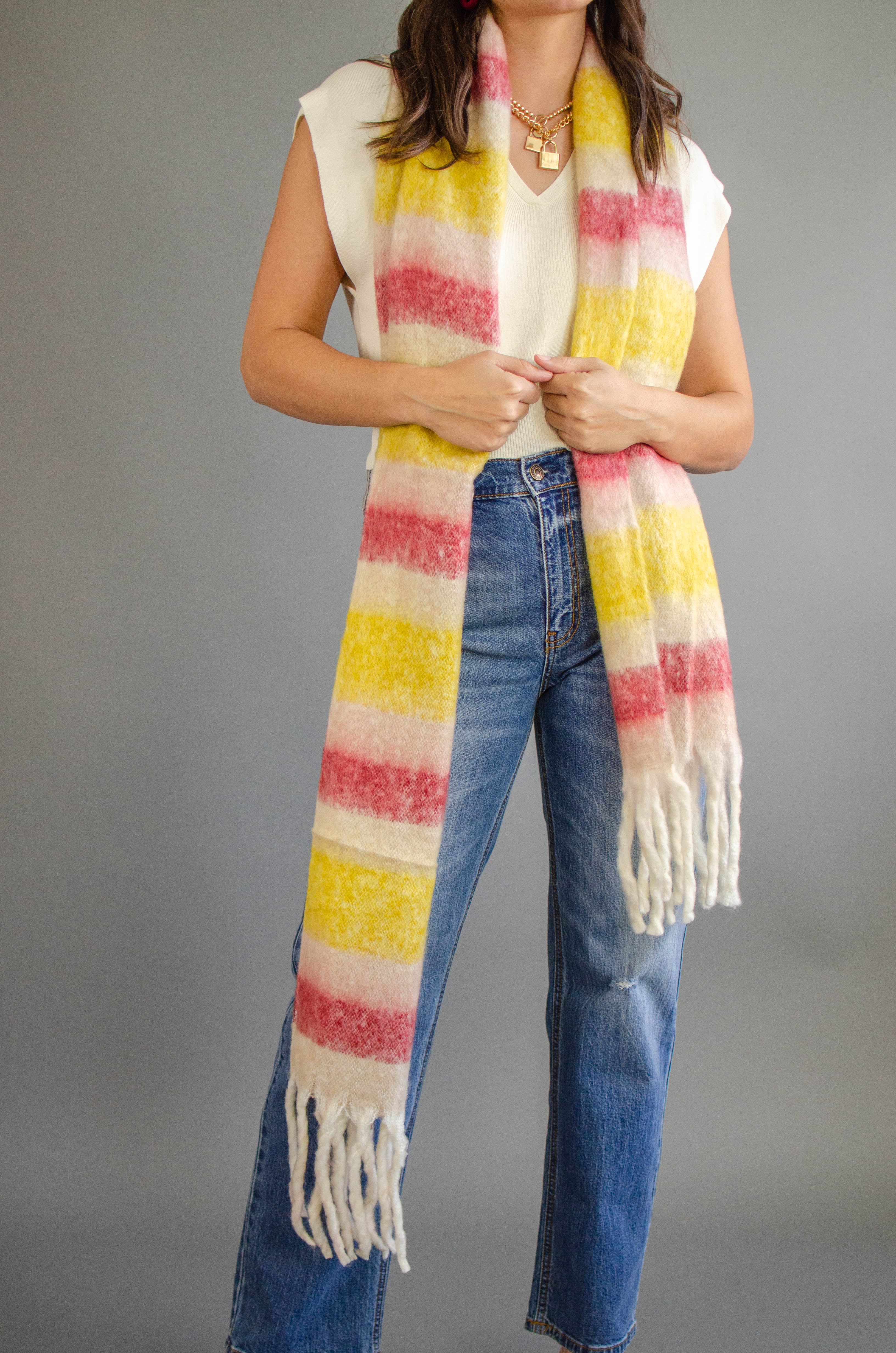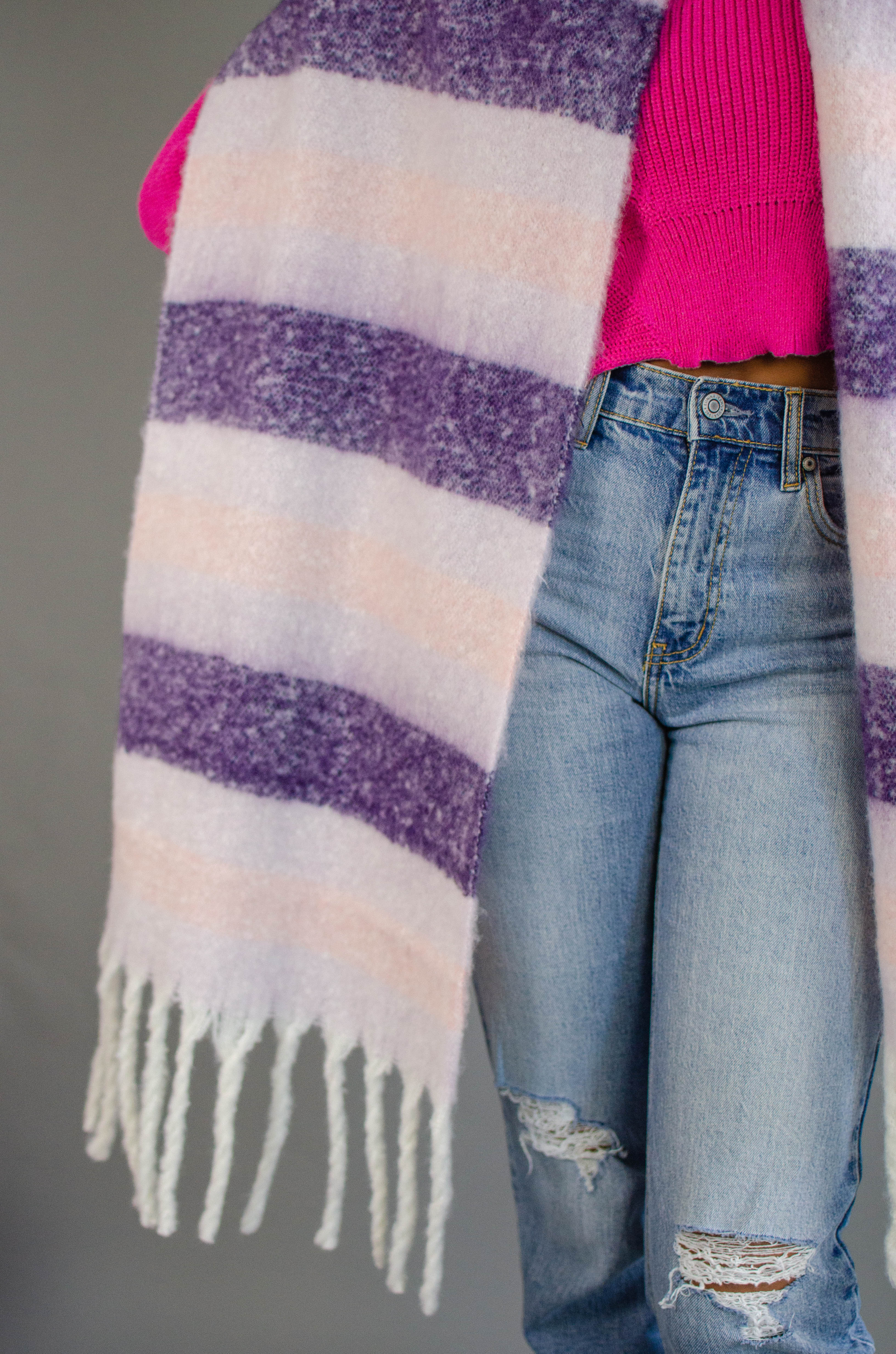 Stripe Fringe Knit Scarf