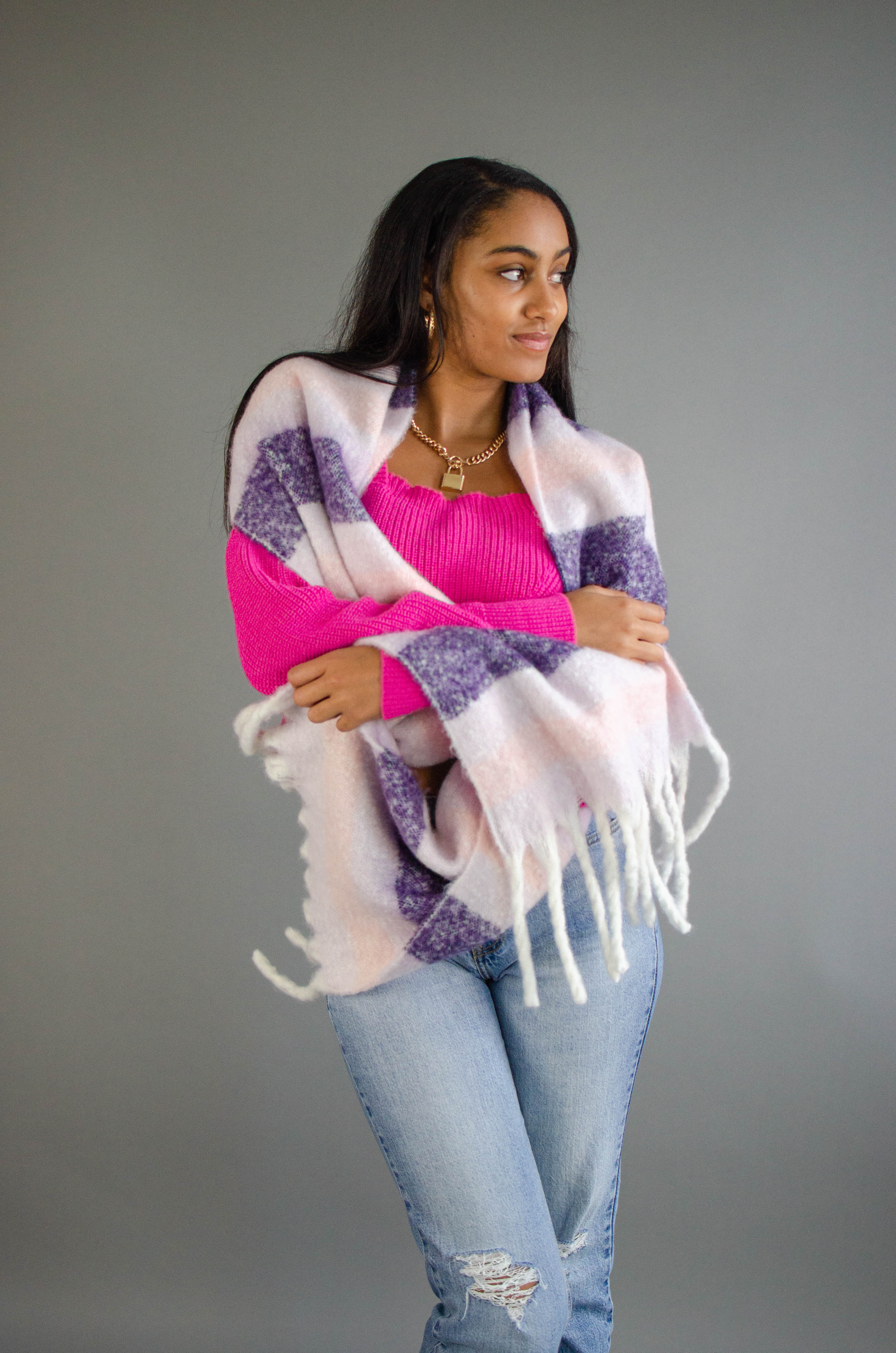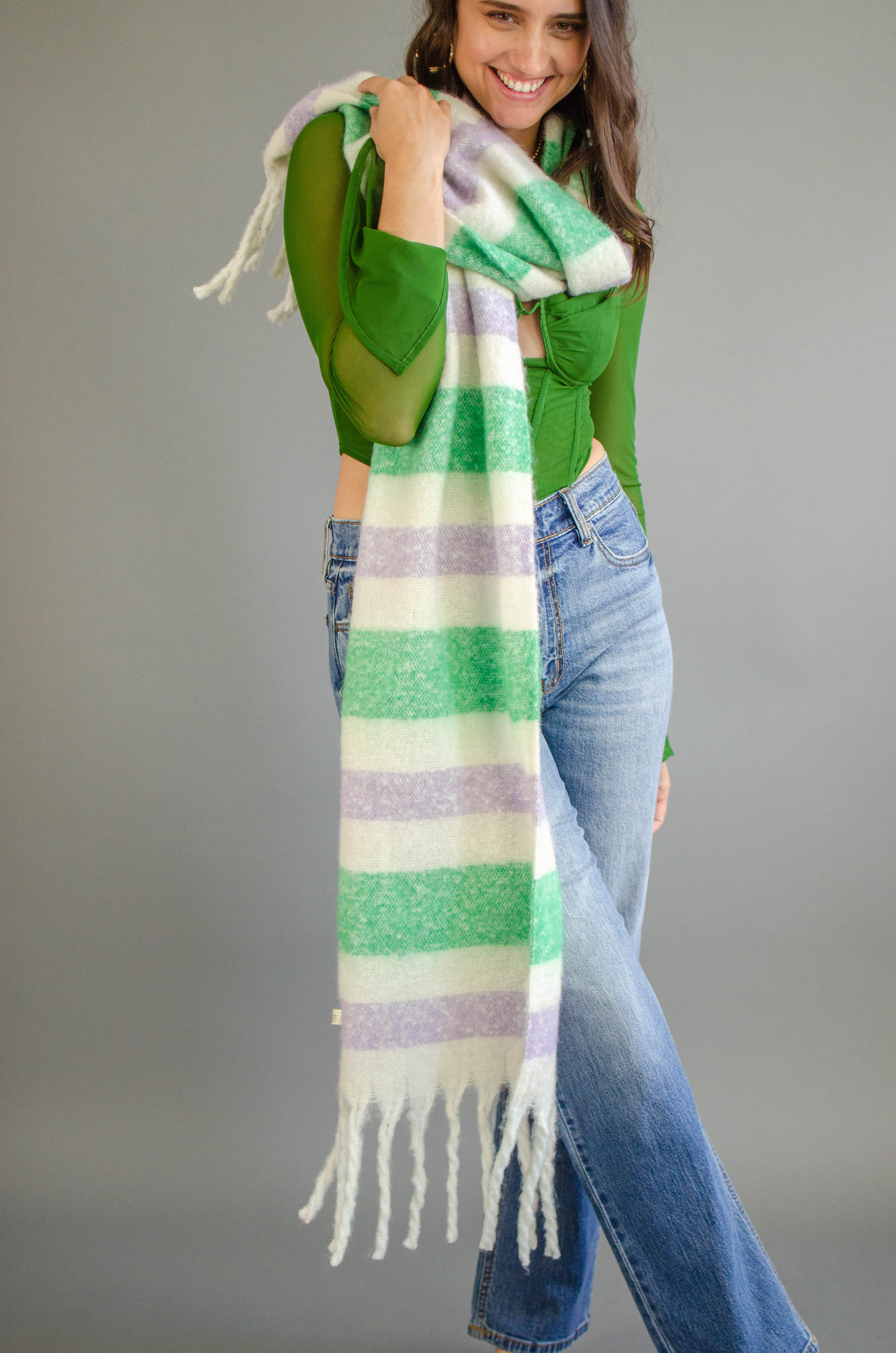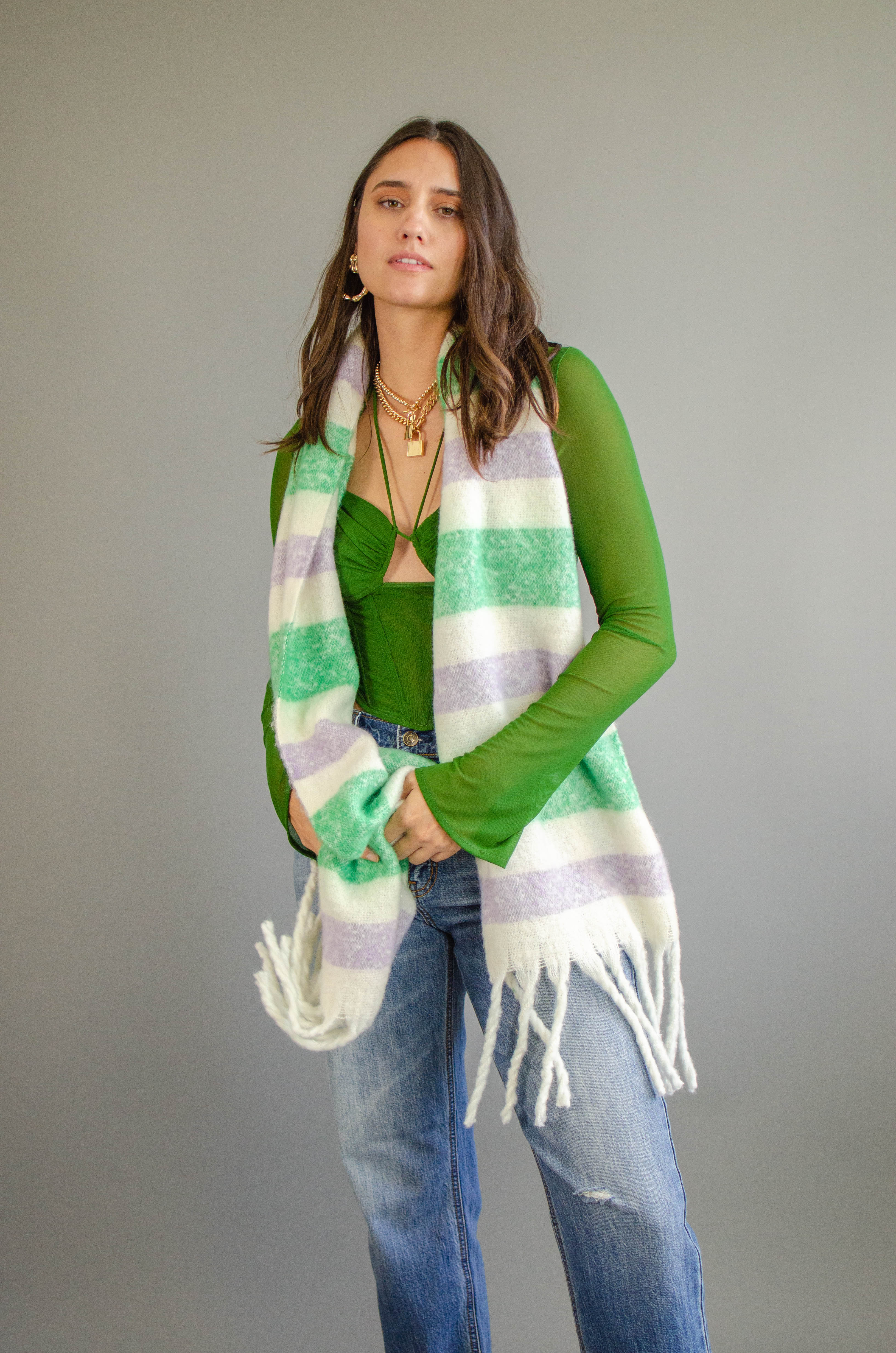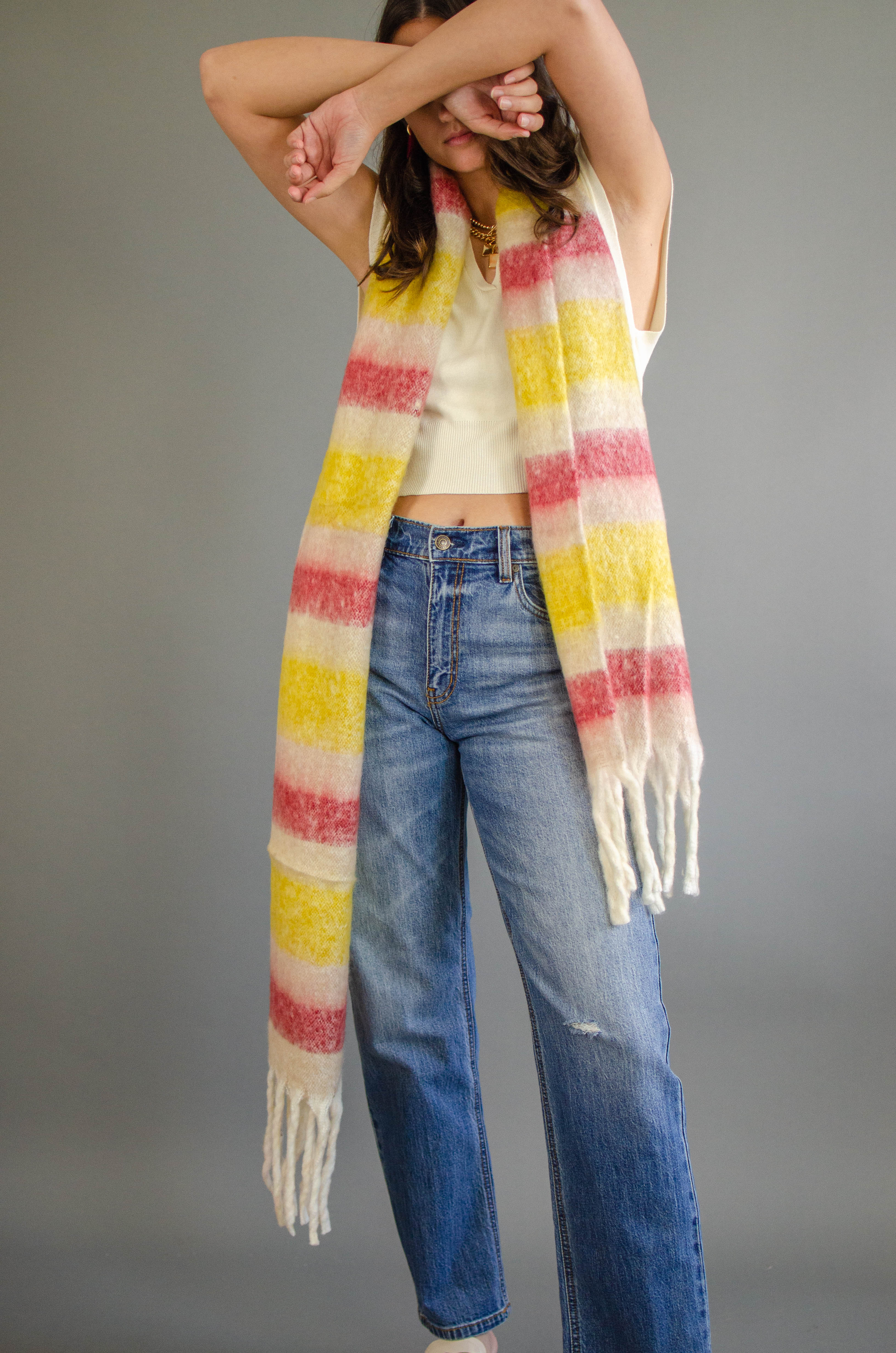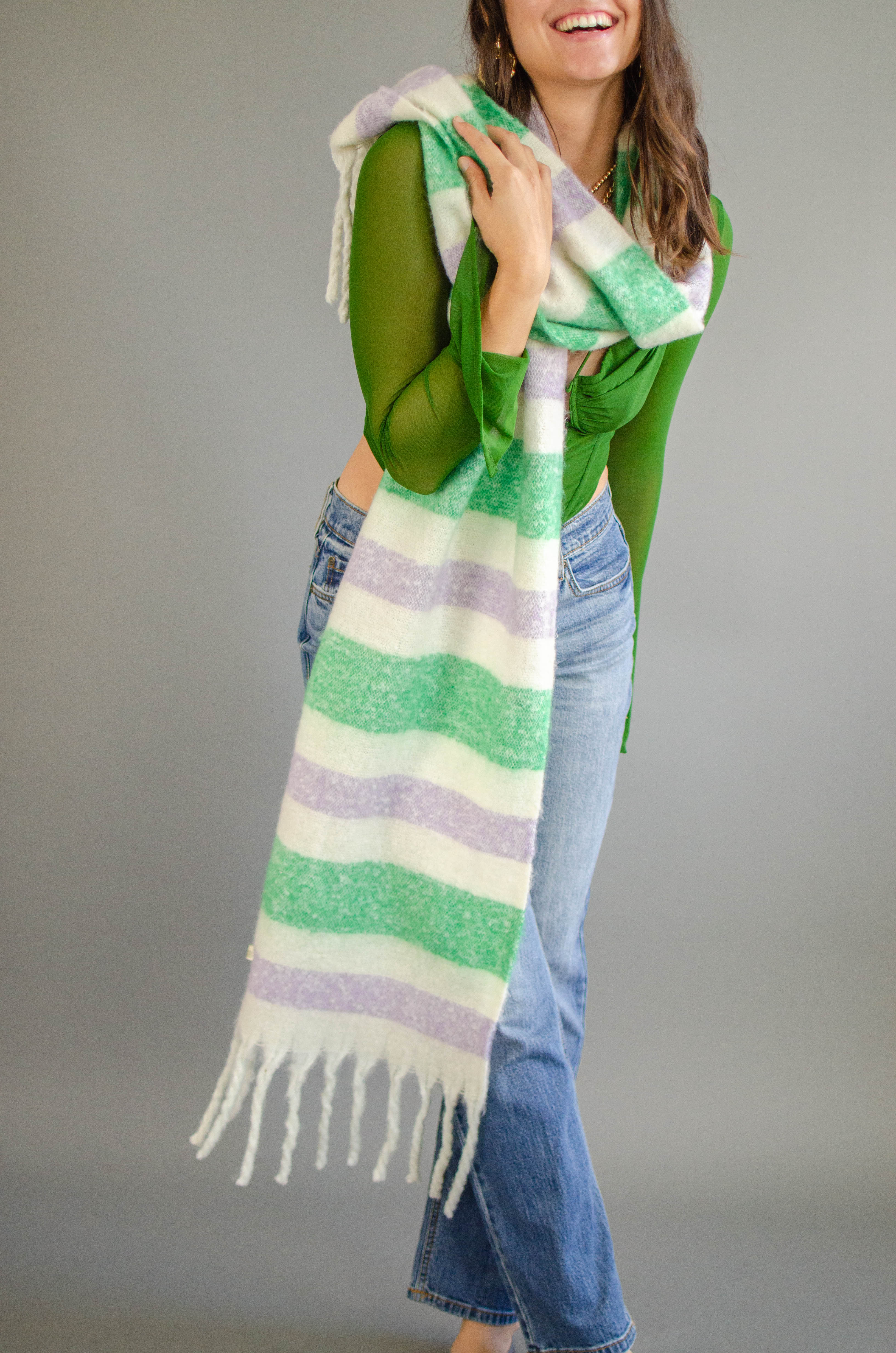 Stripe Fringe Knit Scarf