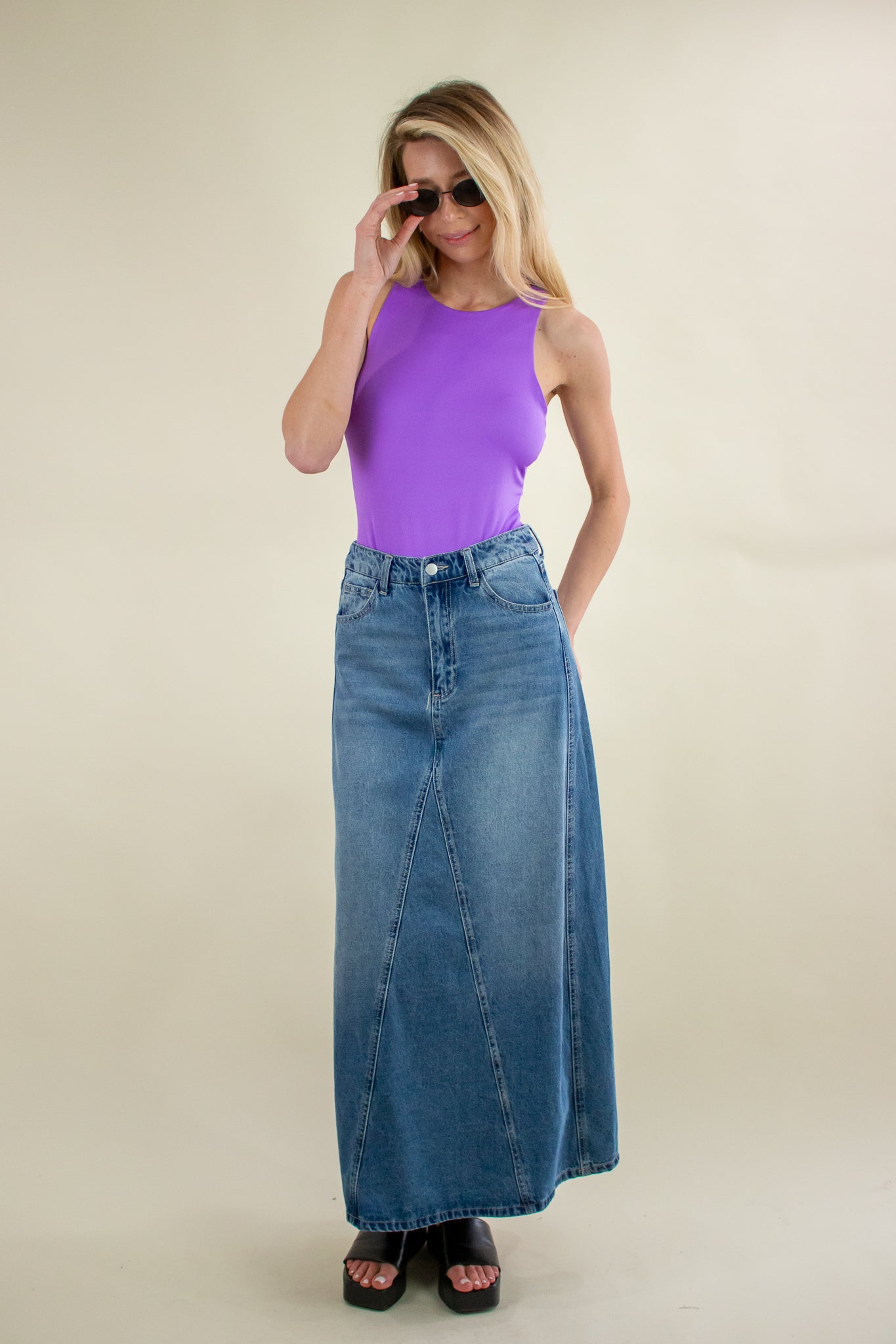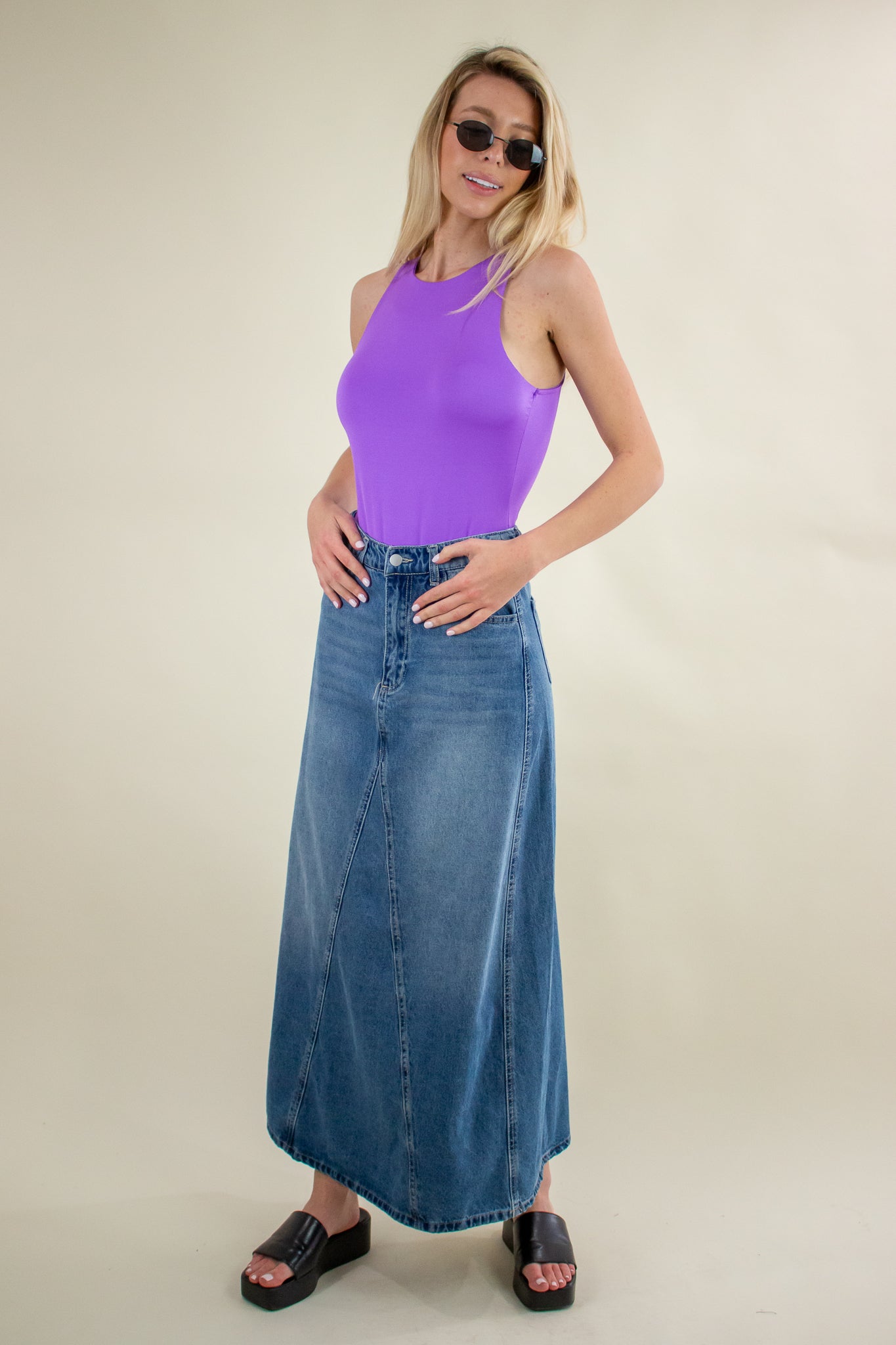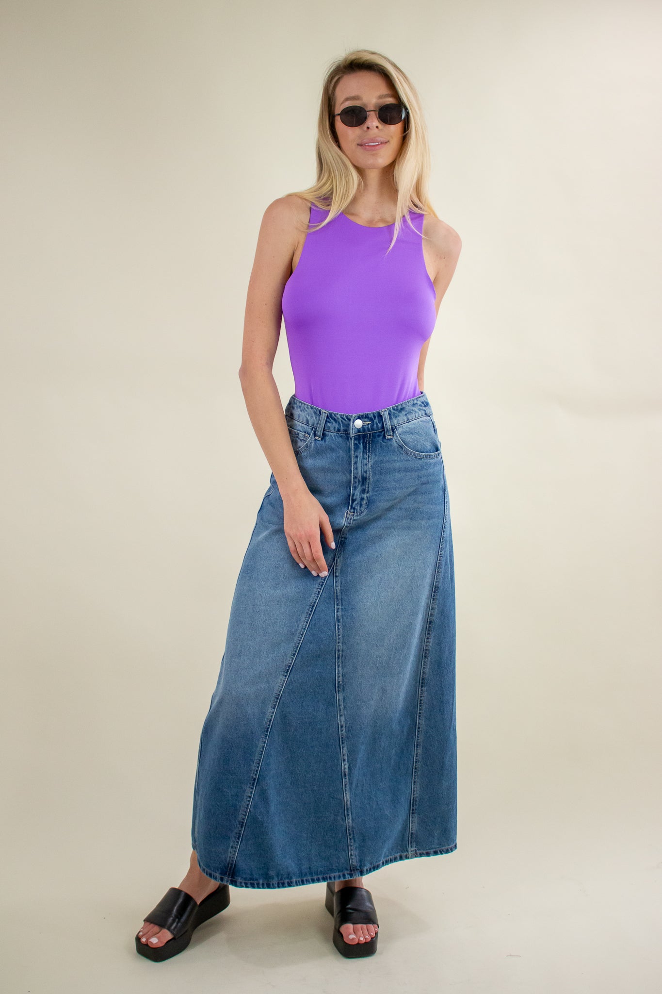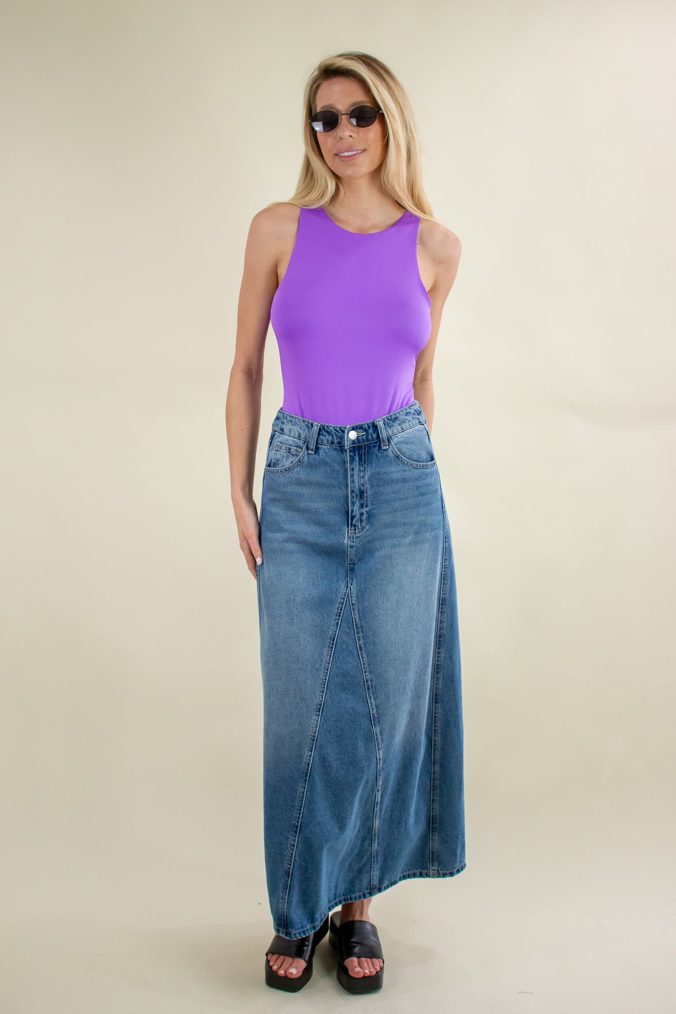Our Theo Bodysuit features a high athletic neckline, double layer seamless edge, elastic button snap gusset closure, super stretchy soft texture and high racerback. Tuck into your favorite jeans and layer on the accessories! This staple will carry you all the way through summer.