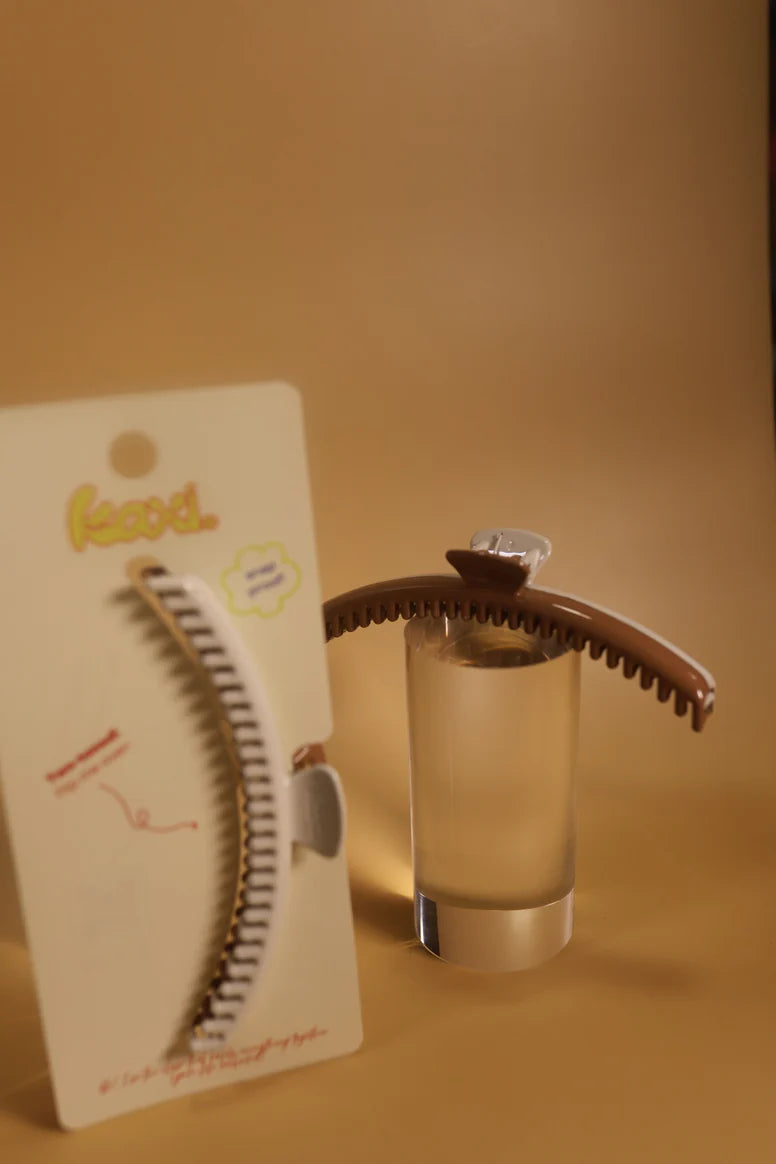 The 'Hold Everything Claw' now in a new shiny two-toned finish. It really can hold everything!! It looks deceiving because of its size but trust me, when you learn how to put it in your hair, it's not going anywhere!!