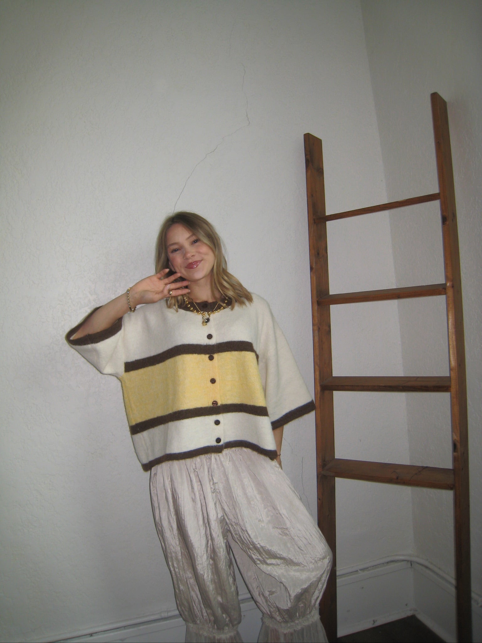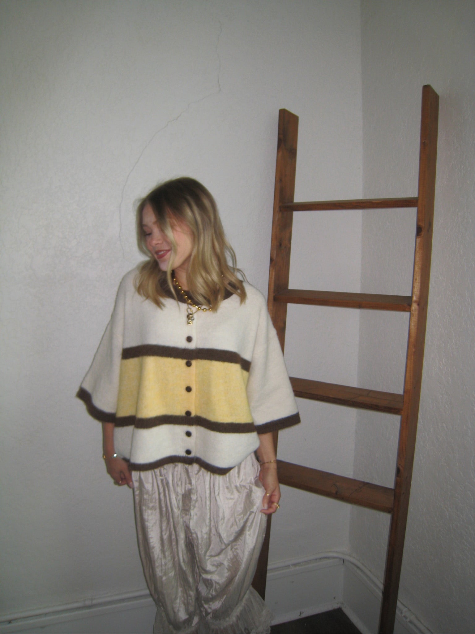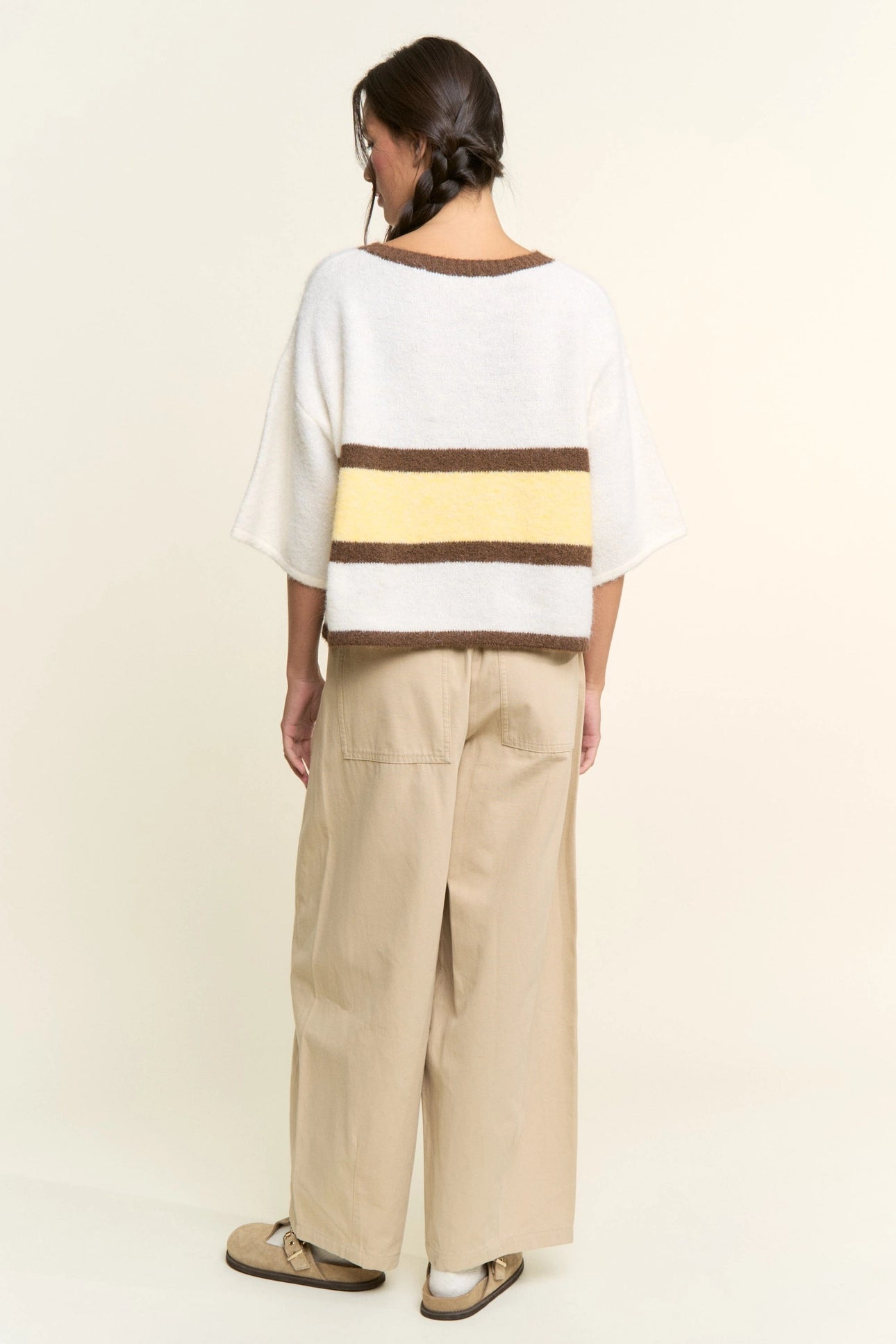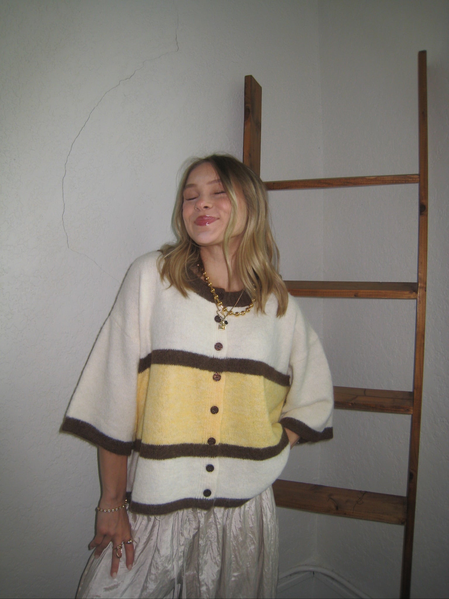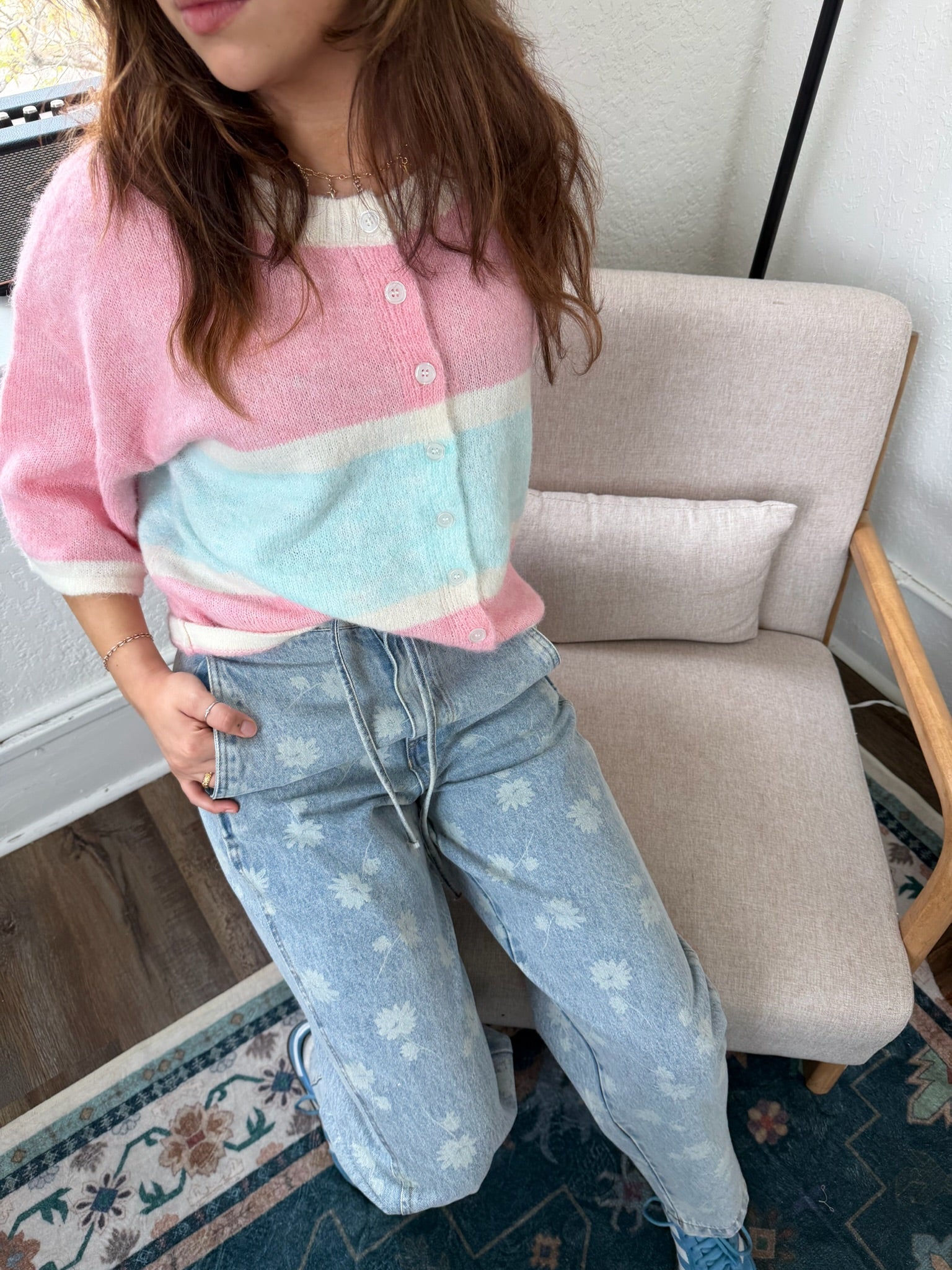 Playful color meets cozy texture in the Briar Colorblock Stripe Cardigan. Designed with a relaxed boxy silhouette, this short-sleeved knit features bold colorblock stripes that add a fun, modern twist to a classic cardigan style. The soft fuzzy knit fabrication gives it a plush feel while the button-front design keeps it easy to layer or wear on its own. Pair it with denim, skirts, or tailored trousers for an effortlessly styled look.