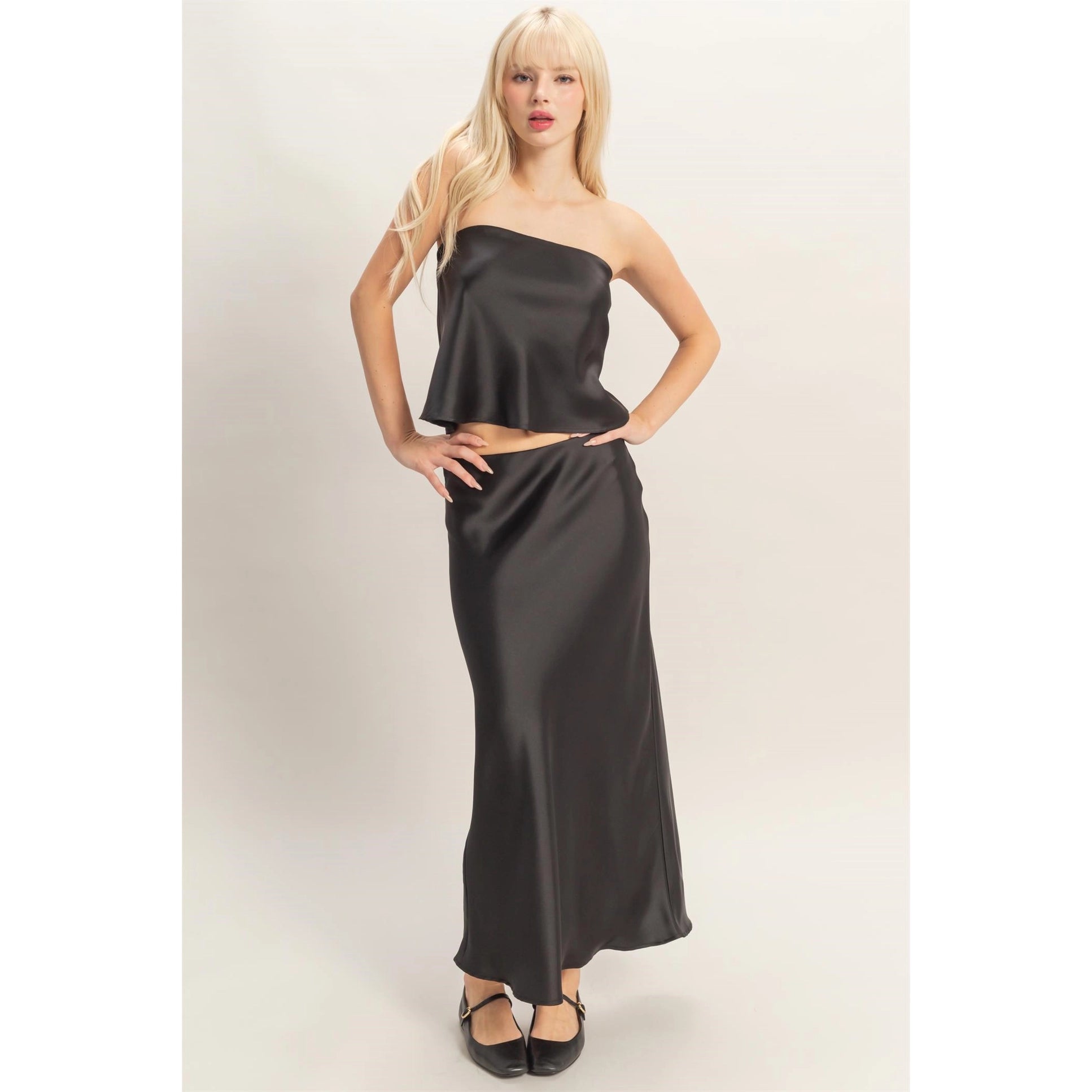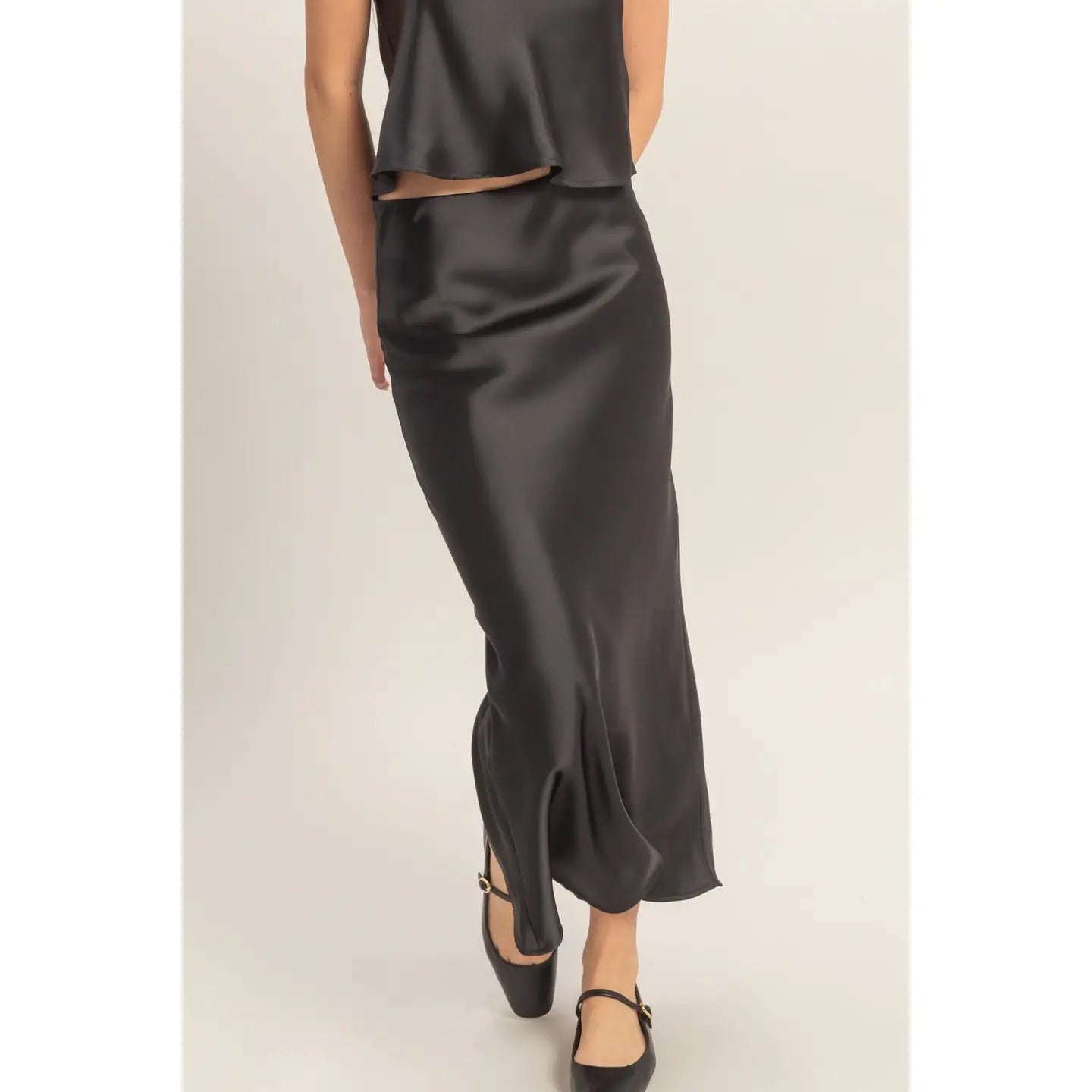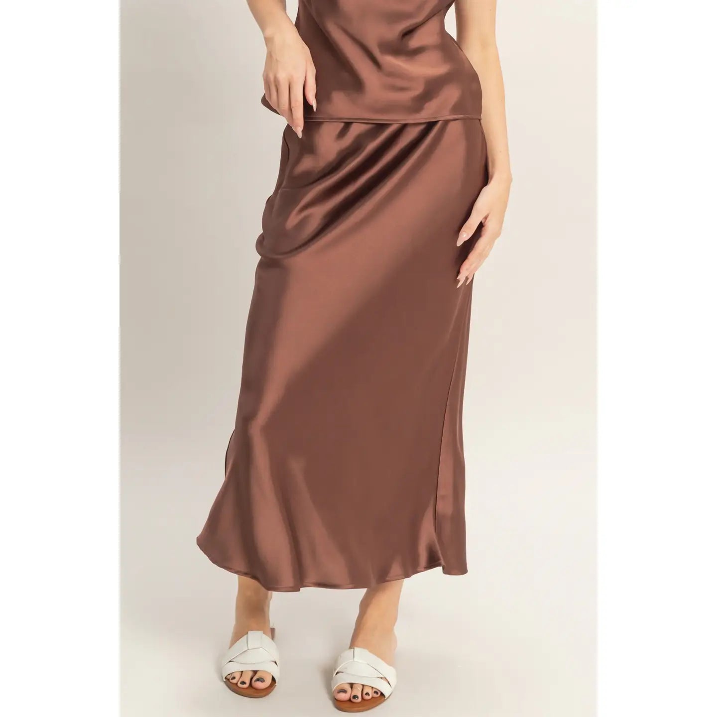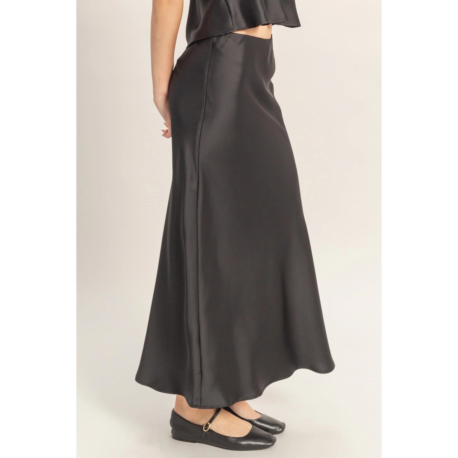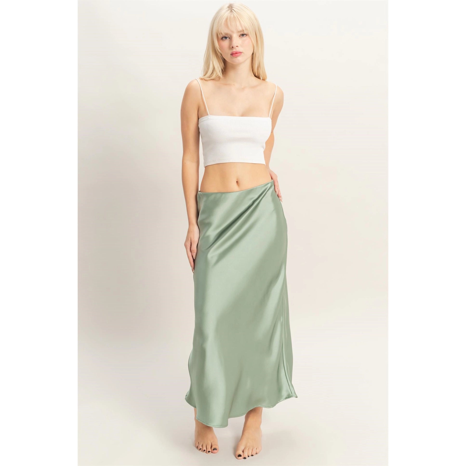 Soft shimmer meets effortless elegance in the Piper Satin Midi Skirt. Designed in a luminous cream satin with a subtle high-shine finish, this midi features a flattering high-rise elastic waistband and a bias-cut silhouette that skims the body beautifully. The silky, fluid drape creates an easy, feminine shape that moves with you — perfect for dressing up or styling casually.