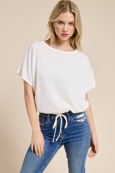 Meet your new go-to elevated essential. The Everyday Luxe Drawstring Dolman Top is designed in our signature ultra-soft scuba fabric for a smooth, stretchy feel with just the right amount of structure. Featuring a relaxed dolman silhouette and an adjustable drawstring hem, this top lets you customize your fit while keeping things effortlessly polished. The fluid drape and buttery handfeel make it perfect for everyday wear — whether you’re styling it casually with denim or dressing it up with tailored trousers. A versatile staple you’ll reach for again and again.