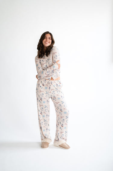 Your go-to for cozy après moments, the Ski Resort PJ Bottoms are the perfect match to the Ski Resort PJ Top. Designed in the same playful ski-inspired print, these full-length pants feature a relaxed fit, elastic waistband, and adjustable drawstring for ultimate comfort. Whether you’re winding down after a long day or lounging through a lazy morning, they’ll keep you snug, stylish, and totally in the holiday spirit.